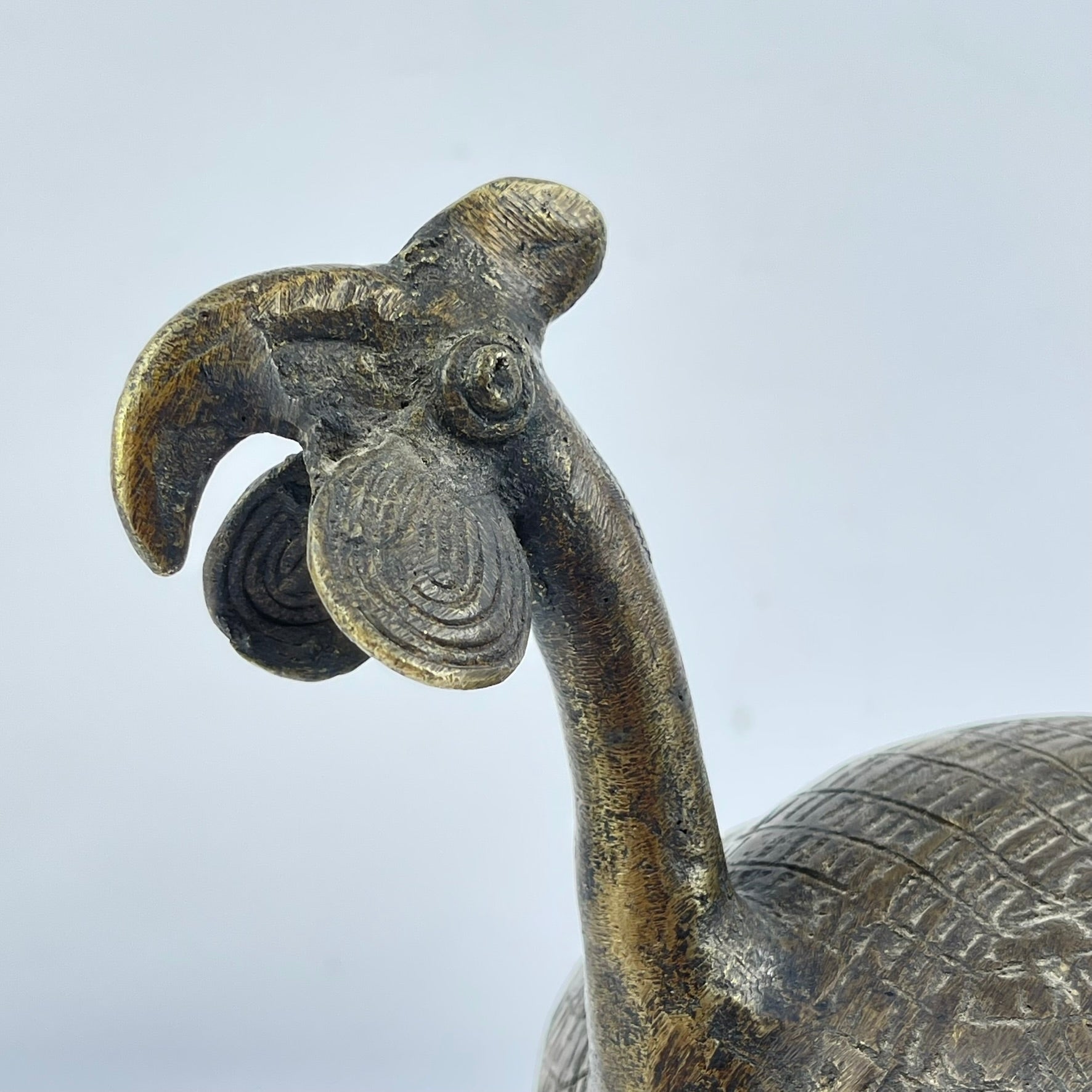This finely cast bronze guinea fowl comes from the Lobi peoples of Burkina Faso, whose metalwork traditions are deeply rooted in ritual and spiritual practice. Created using the lost-wax casting method, each piece is individually formed, making every example unique.