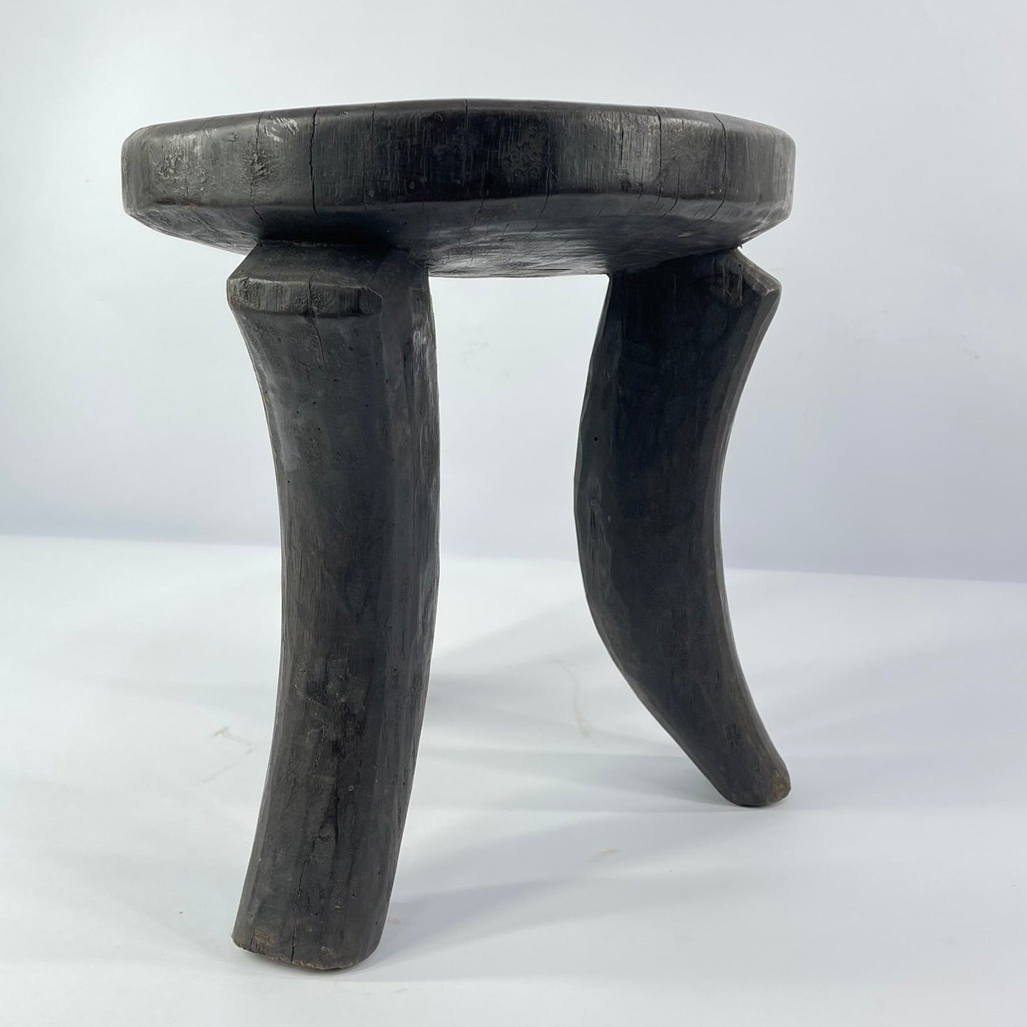 Used exclusively by Lobi men, stools are three-legged, and those for women are four-legged. Lobi stools are carved from a heavy, dense wood, and their simple, abstract forms carry great visual power and worn patina showing much use and age. The three-legged design of the stool allowed Lobi men to carry it on their shoulders when not being sat upon. Such stools were also used to beat upon the ground when an elder approached as a sign of respect for the older person. This stool is in excellent condition and would be a good addition to any collection of African Art.