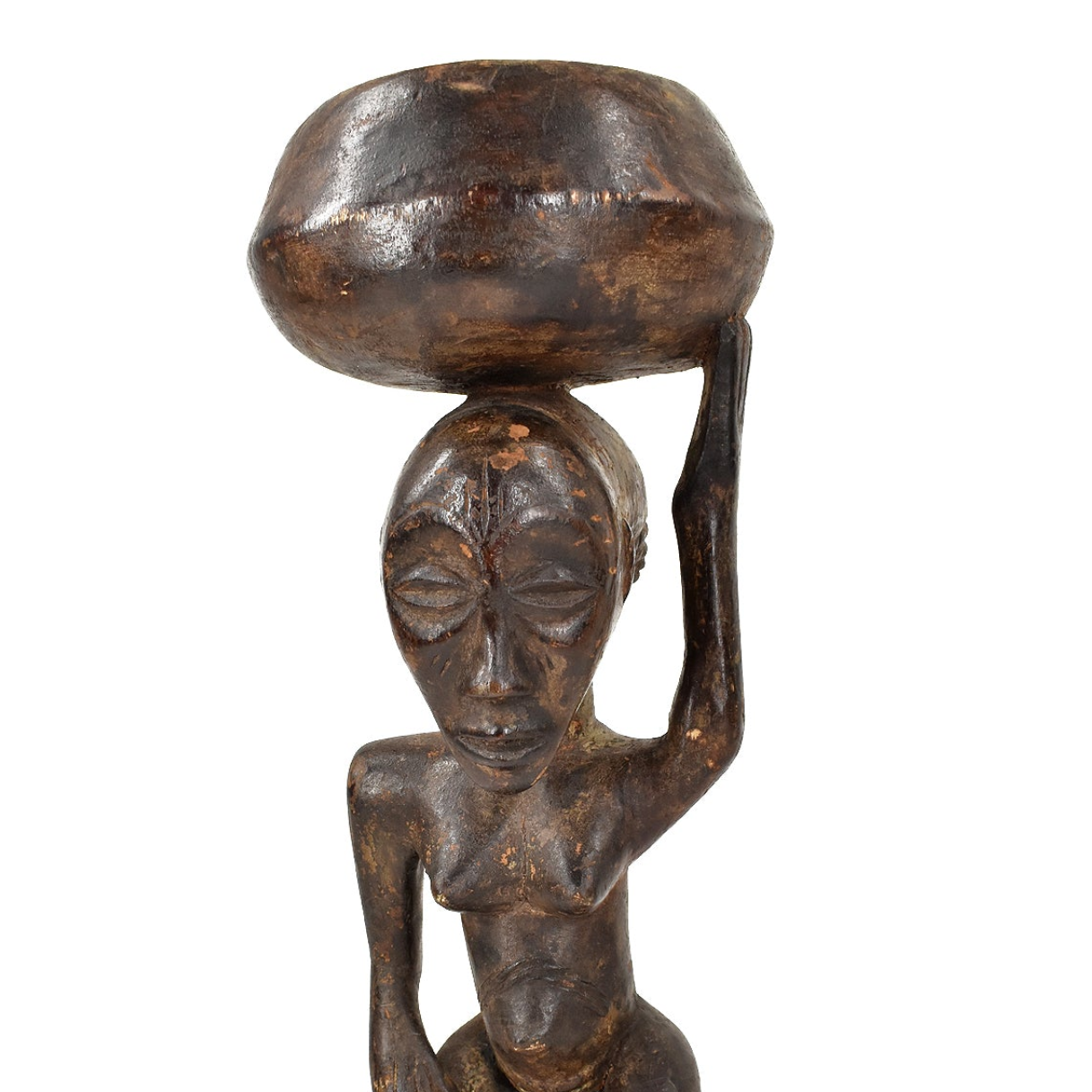 Luba Female Bowl Bearer Wood Figure with Custom Base Congo