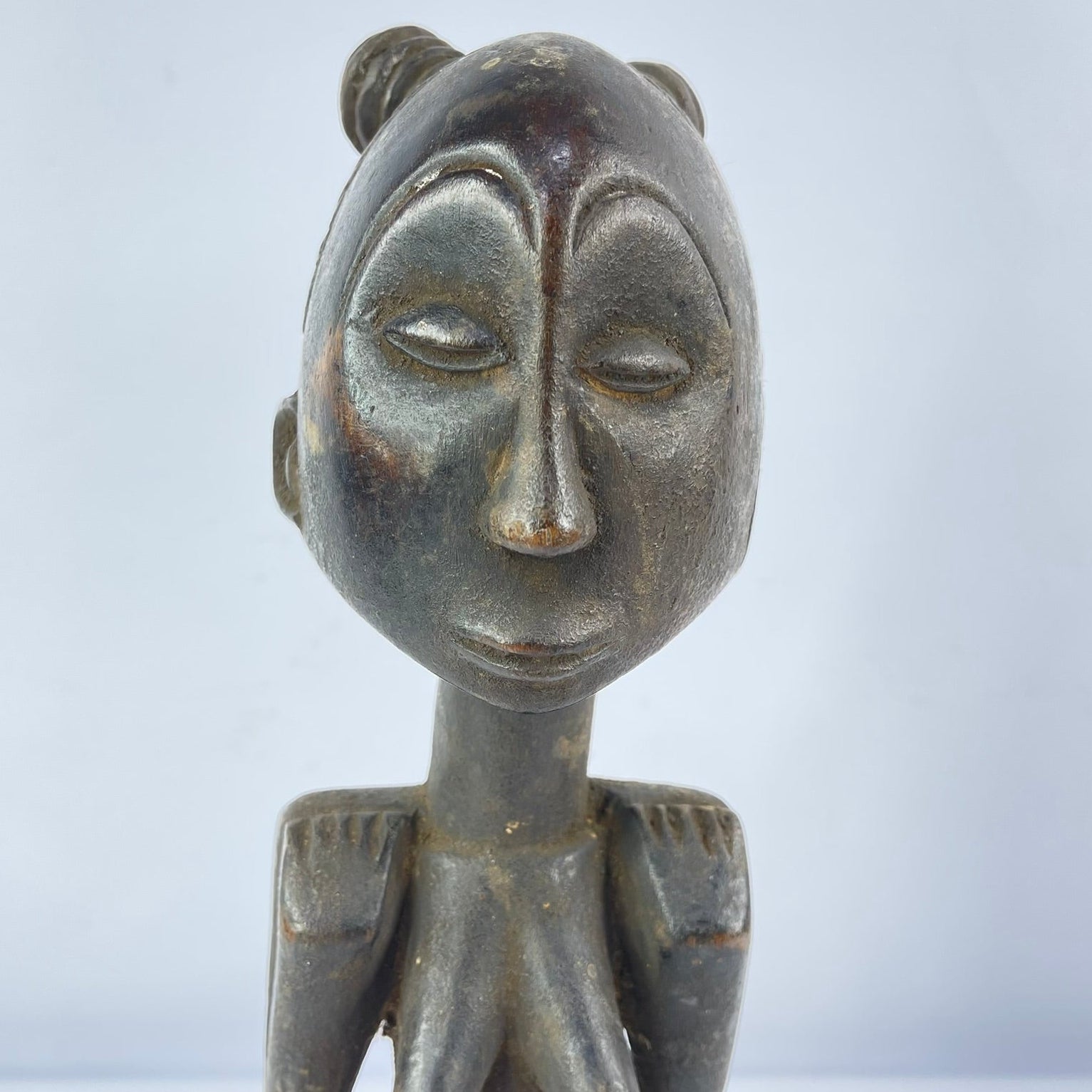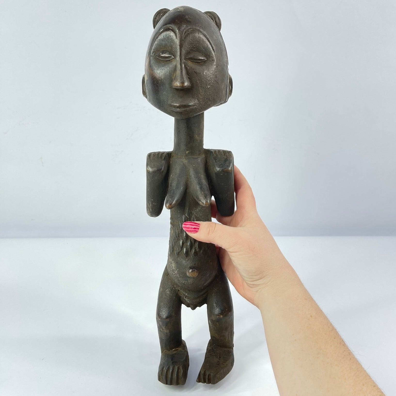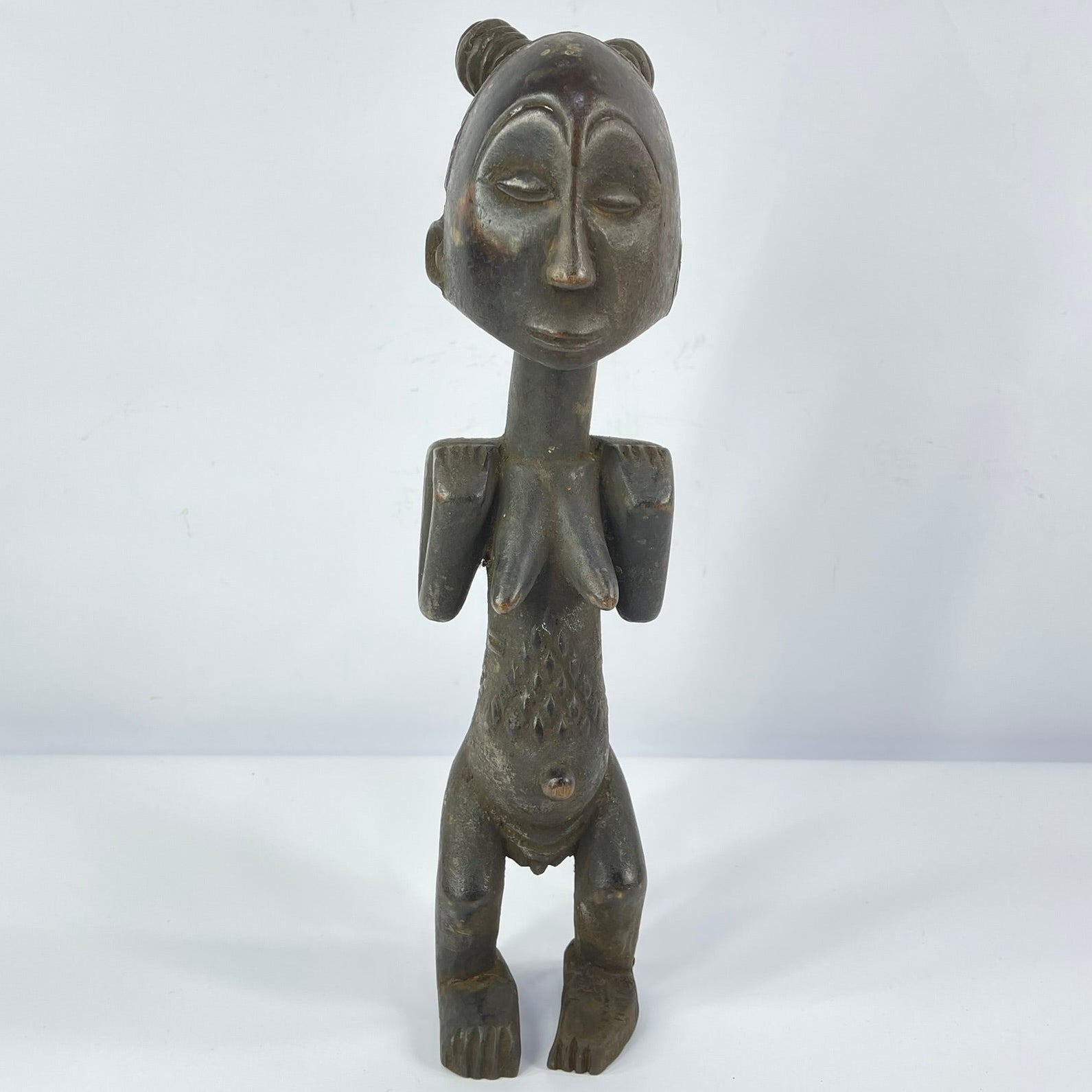 The Luba female figure is crafted as a veneration of feminine beauty and motherhood. Crafted from wood, the Luba female figures are distinct with their hand-carved and distinct head-pieces. The history of the Luba people can be traced back 500 years as they have dominated part of the Congo during that time. Luba society is still a large culture, and their influence remains significant. Luba and their closely related neighbors the Hemba, are some of the most important crafters and carvers in Central Africa.