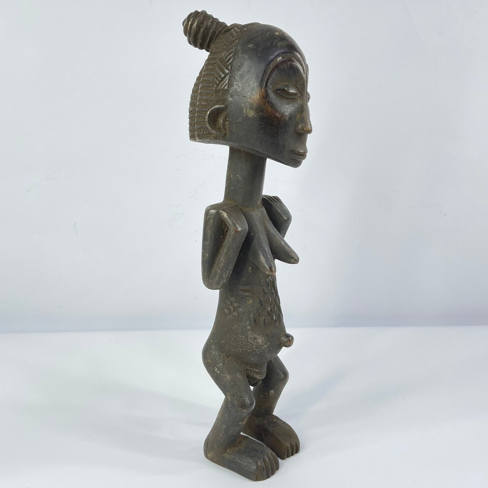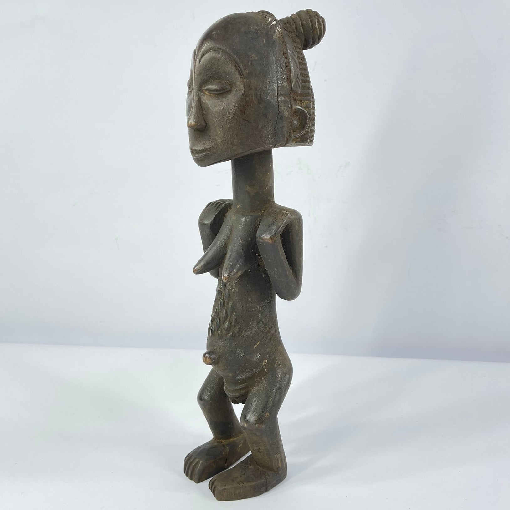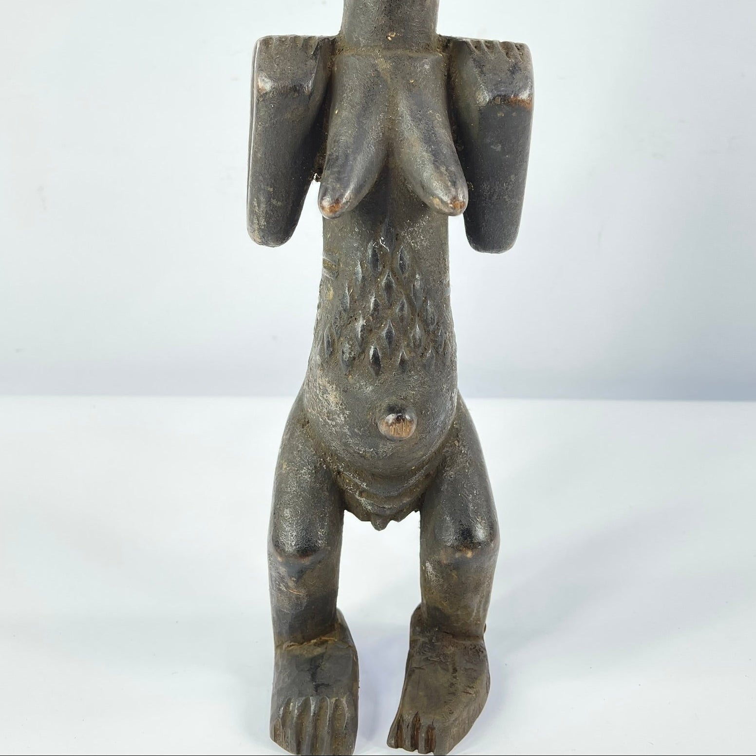 The Luba female figure is crafted as a veneration of feminine beauty and motherhood. Crafted from wood, the Luba female figures are distinct with their hand-carved and distinct head-pieces. The history of the Luba people can be traced back 500 years as they have dominated part of the Congo during that time. Luba society is still a large culture, and their influence remains significant. Luba and their closely related neighbors the Hemba, are some of the most important crafters and carvers in Central Africa.