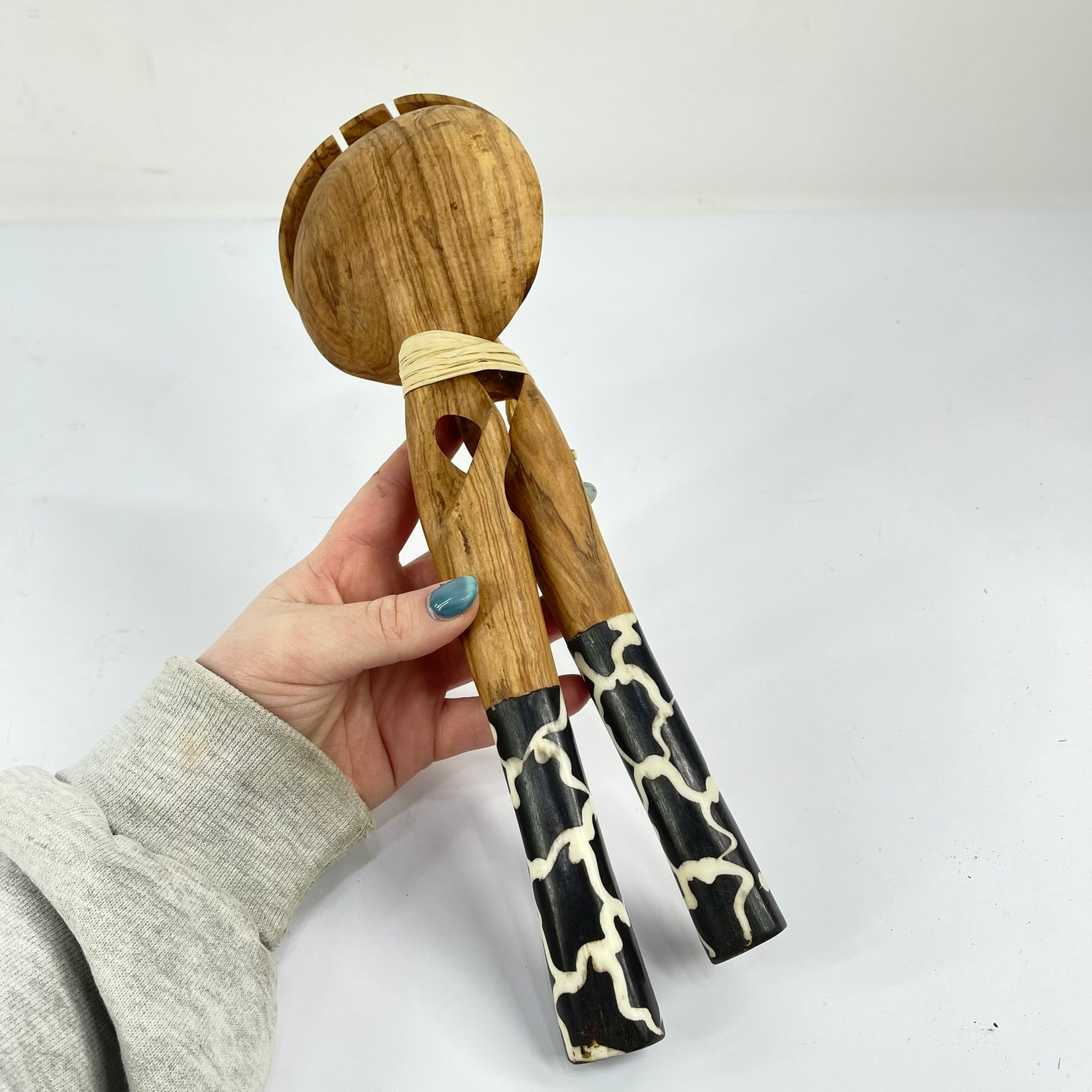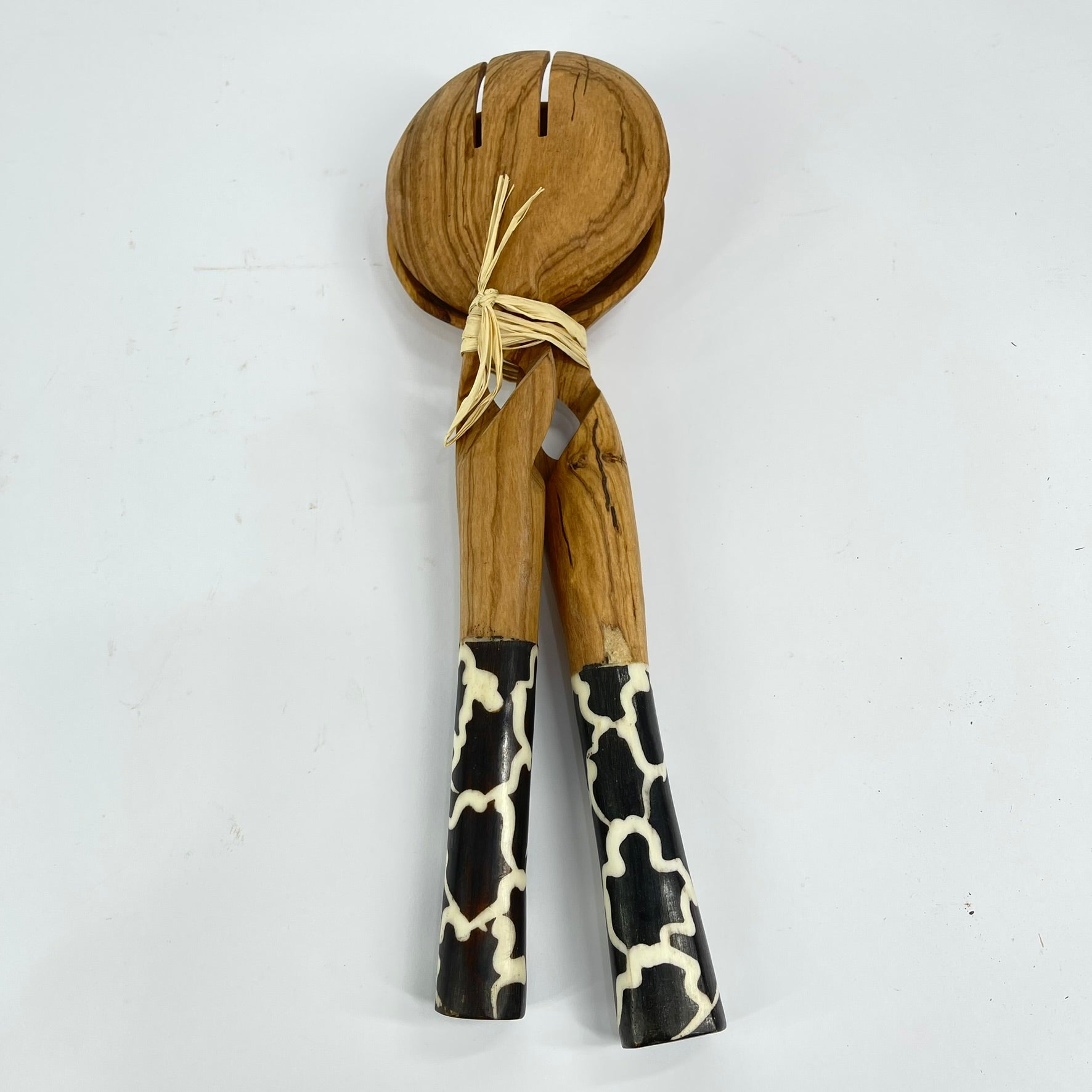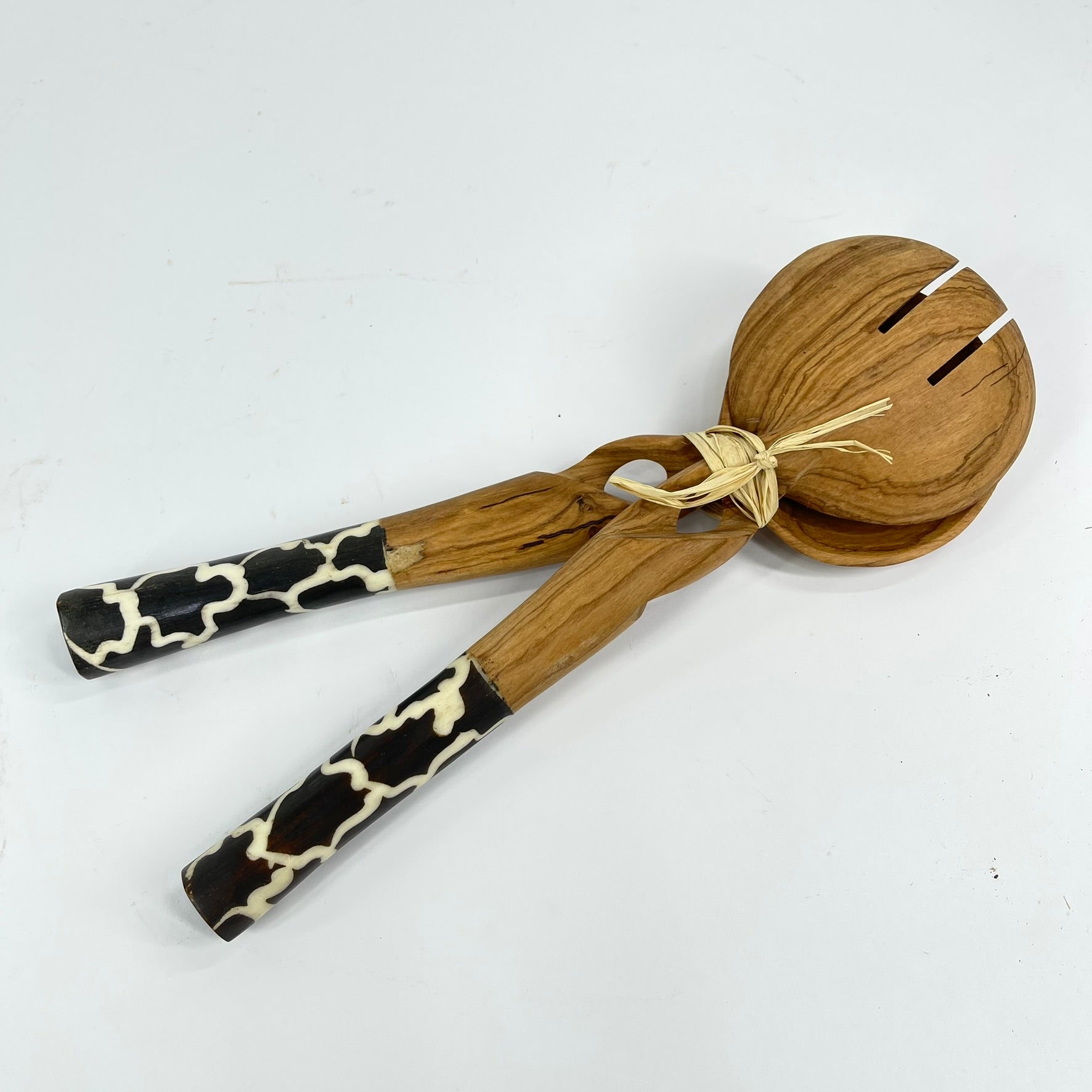 Maasai Olivewood Serving Spoon Set with Bone Inlay Kenya