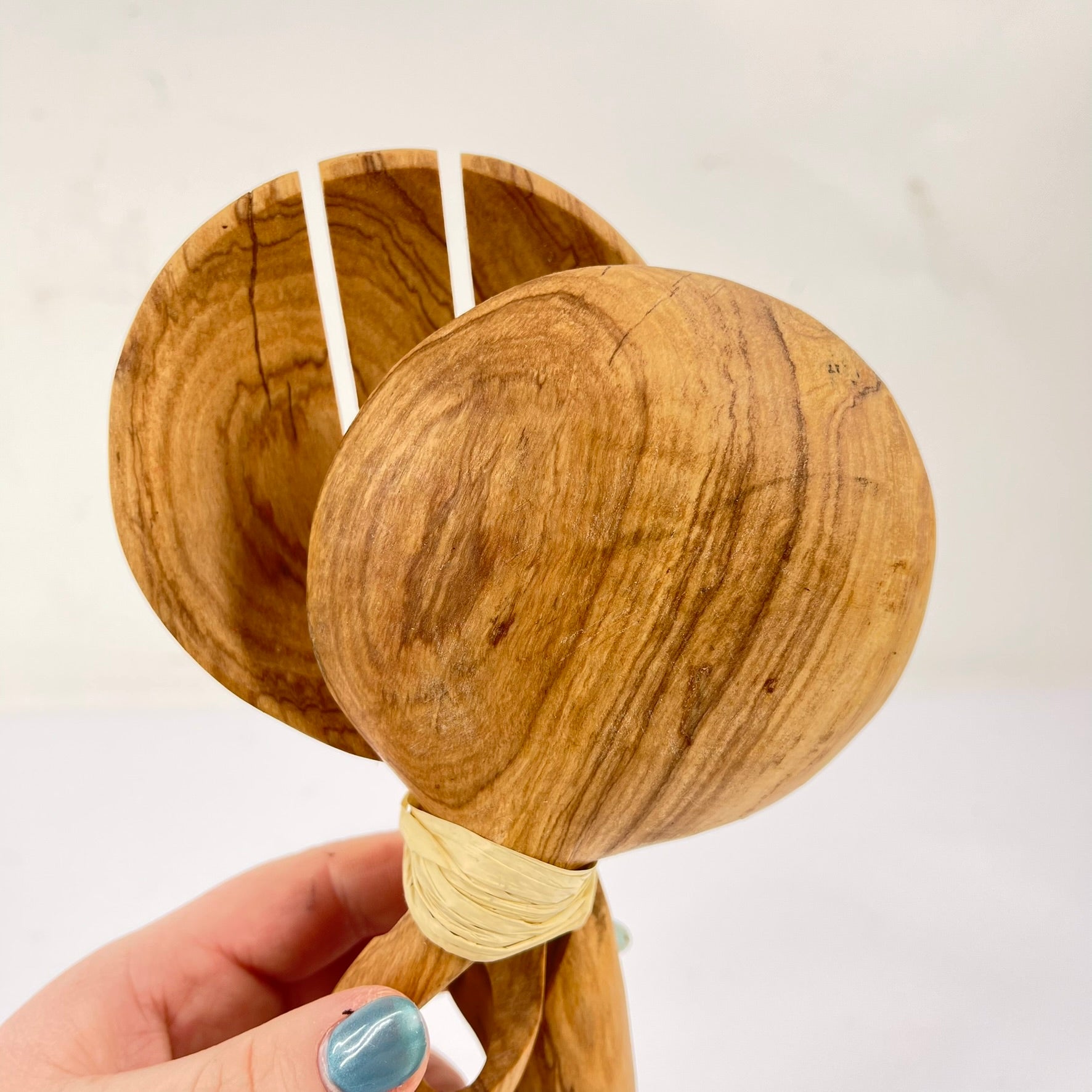 Care: Should neither crack nor break with normal use. Scratches or minor chips resulting from use may be sanded (fine paper), if necessary, and re-polished. Polish with regular wood oil or polish to maintain luster when used as a decoration and olive oil when used for food. Although microwave and dishwasher proof, the natural wood color fades over time with hot cycle dishwasher and detergents, better with cold-water hand wash and rinse that will extend life and luster. Apply olive oil to the spoons after rinsing.