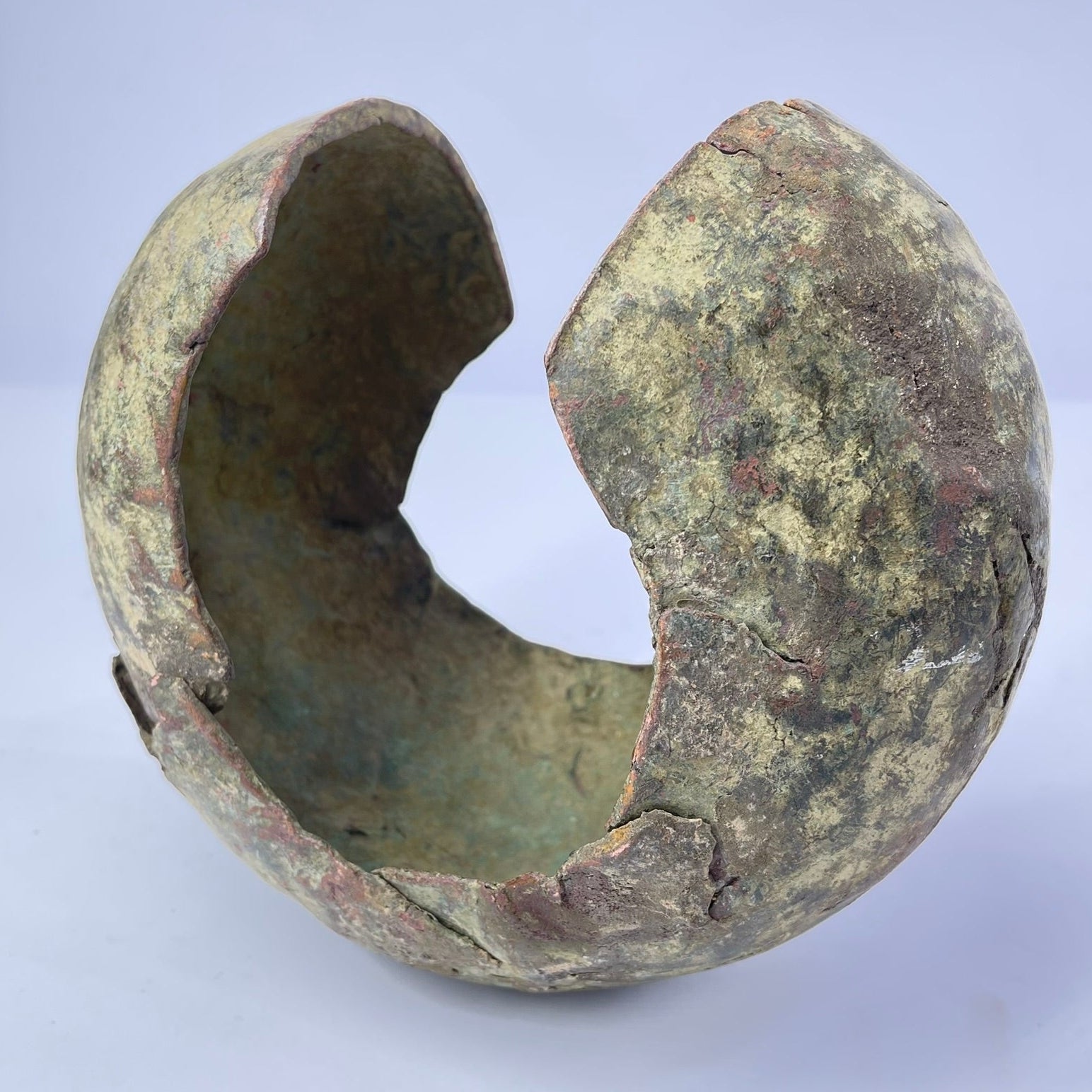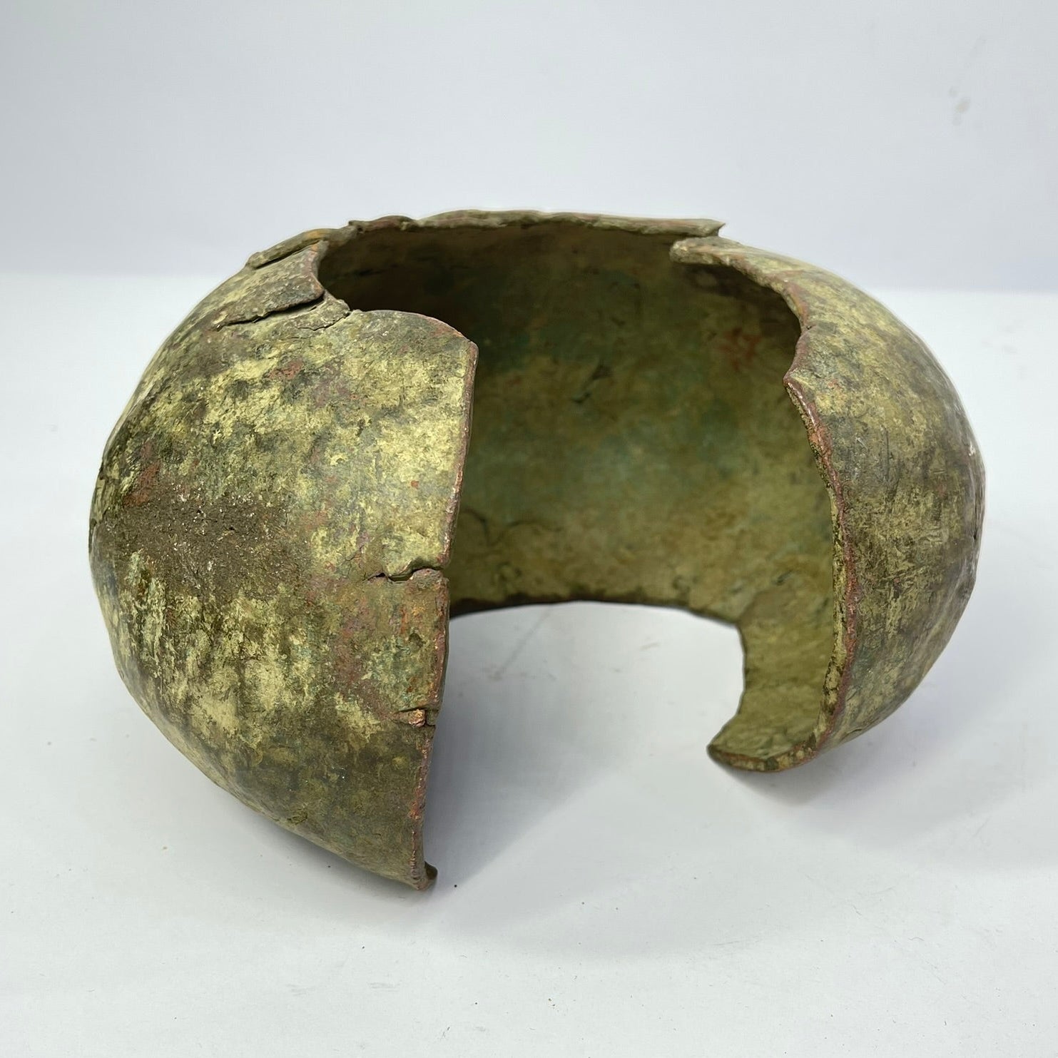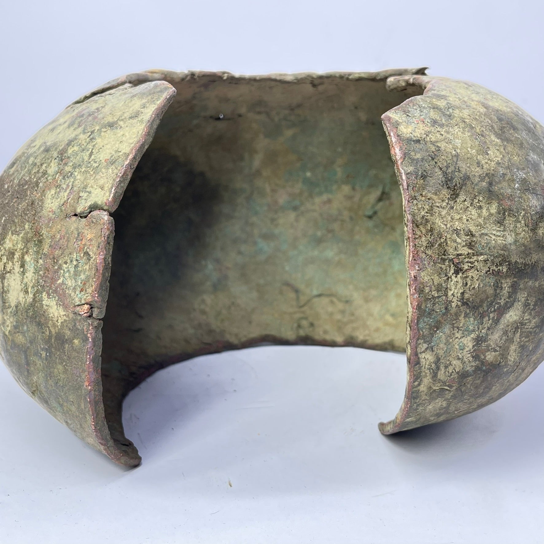 This substantial copper ankle cuff reflects the Mbole’s classic, elegant design—a slightly flattened circular form with a simple ankle cutout, allowing it to be worn by both men and women as a display of wealth and prestige. Among the Mbole, such massive forged cuffs functioned as currency in rare but important transactions, with larger examples reserved for more significant exchanges.
