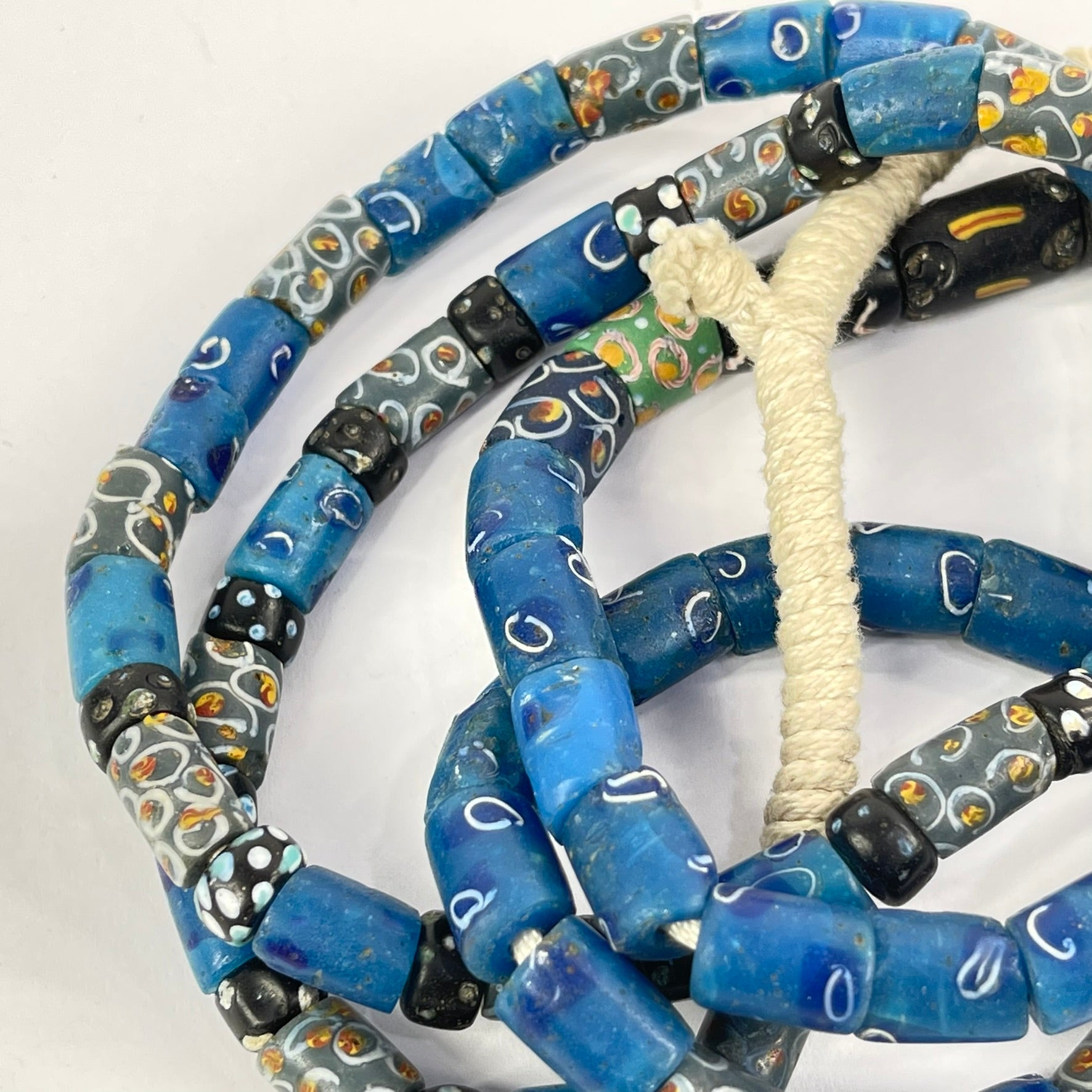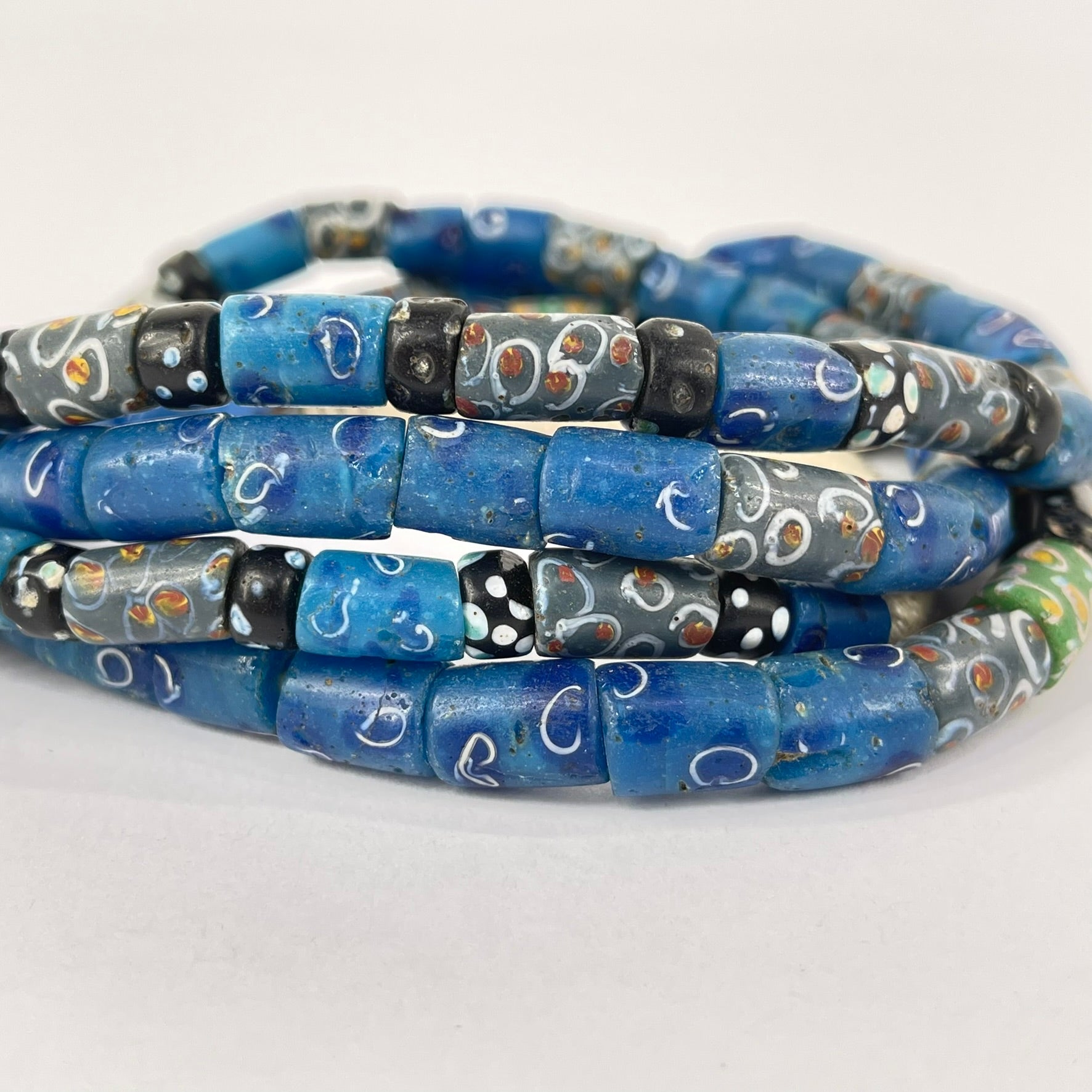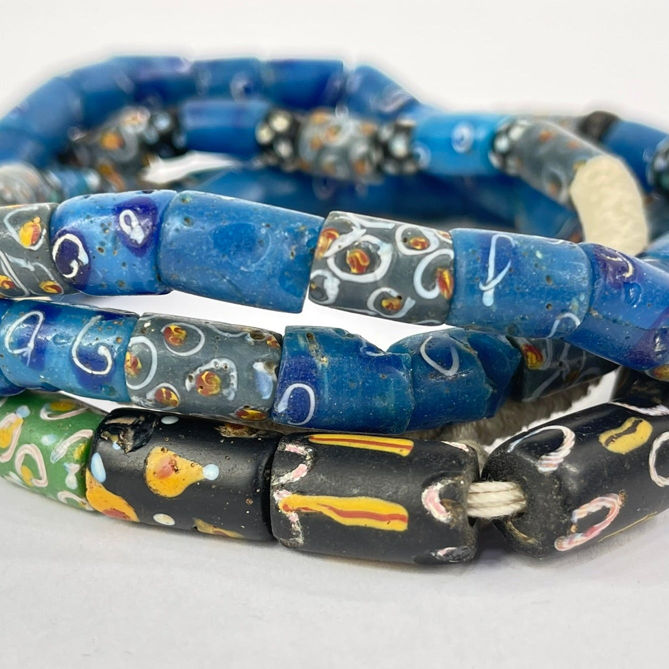 A 41-inch strand of mixed Venetian trade beads is a fascinating collection of diverse colors, shapes, and patterns, each bead telling a unique story of craftsmanship and trade. Crafted in Venice, Italy, these beads showcase the mastery of Venetian glass artisans, who skillfully combined vibrant hues and intricate designs to create stunning works of art. From bold stripes to delicate millefiori patterns, each bead reflects the cultural exchanges and global trade networks that shaped the world's history. These beads were not only prized for their beauty but also served as valuable commodities, exchanged across continents and cultures. A strand of mixed Venetian trade beads is not just a piece of jewelry; it's a tangible link to the rich tapestry of human interaction and creativity that spans centuries.