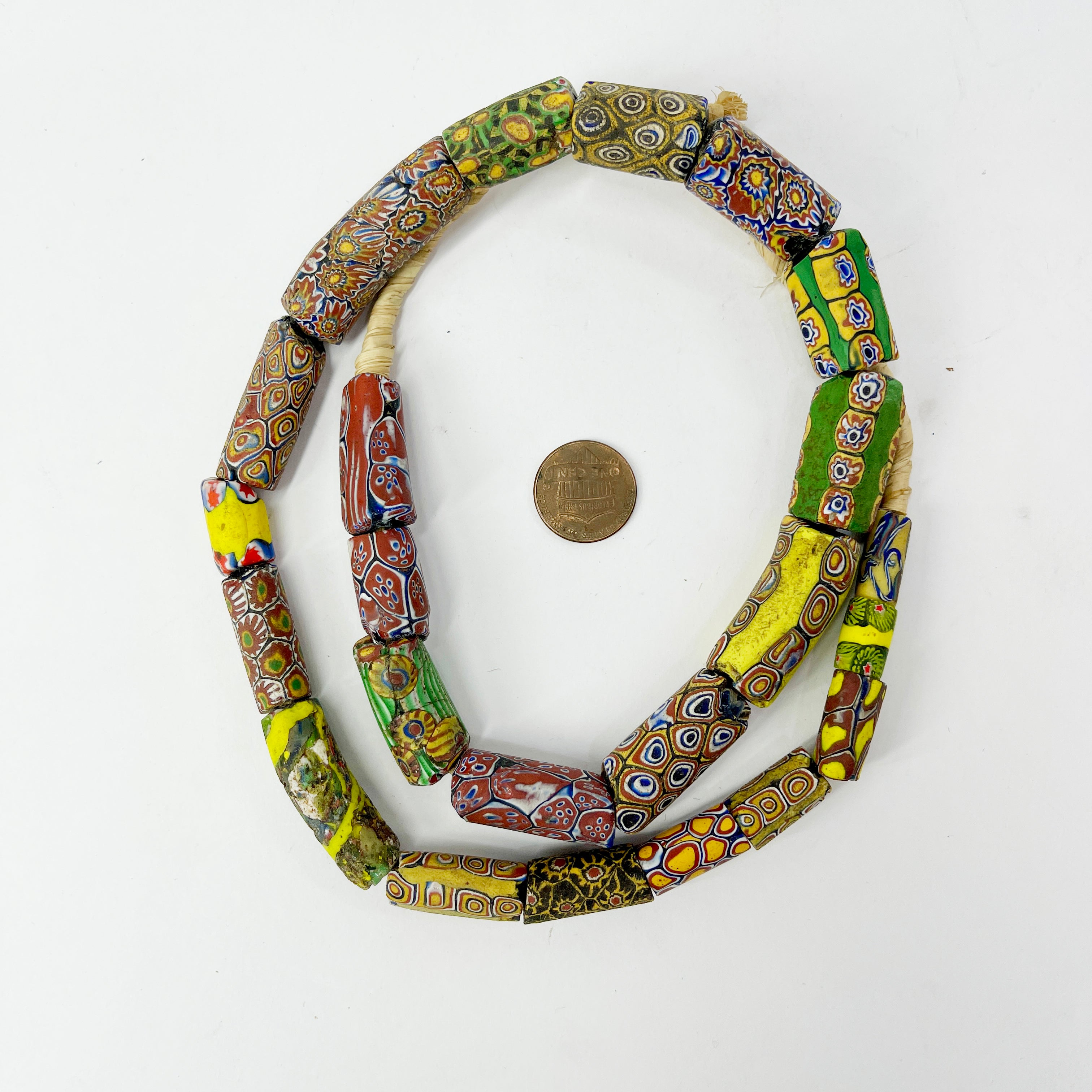 A 26-inch strand of mixed Venetian trade beads is a fascinating collection of diverse colors, shapes, and patterns, each bead telling a unique story of craftsmanship and trade. Crafted in Venice, Italy, these beads showcase the mastery of Venetian glass artisans, who skillfully combined vibrant hues and intricate designs to create stunning works of art. From bold stripes to delicate millefiori patterns, each bead reflects the cultural exchanges and global trade networks that shaped the world's history. These beads were not only prized for their beauty but also served as valuable commodities, exchanged across continents and cultures. A strand of mixed Venetian trade beads is not just a piece of jewelry; it's a tangible link to the rich tapestry of human interaction and creativity that spans centuries.