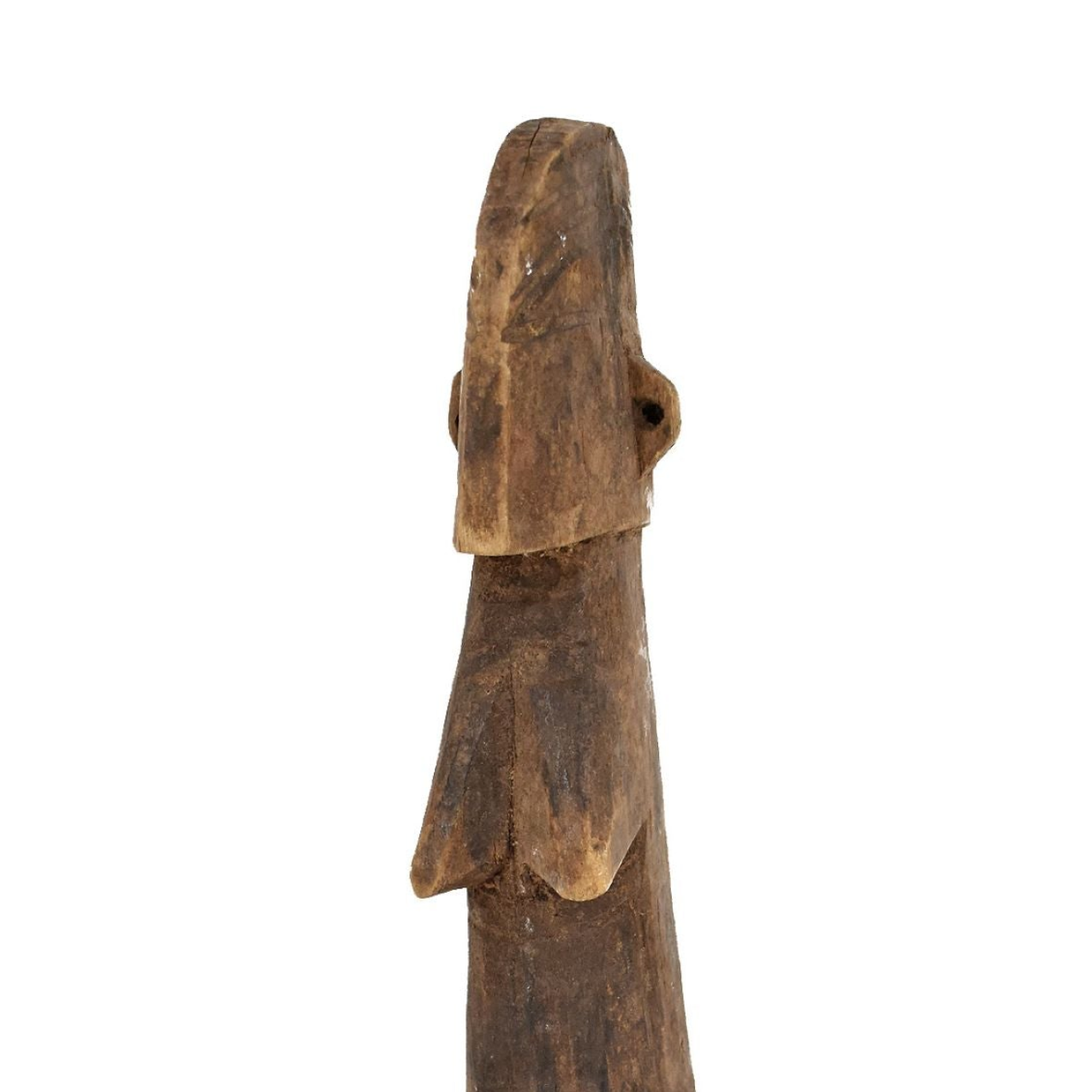 The Mossi, the largest group in Burkina Faso, trace their origins to Ghana in the 1500s. They're known for elaborate masquerades with vibrant, intricately crafted masks and costumes. These masquerades, featuring masked dancers representing ancestors and natural forces, accompany honored elder's funerals. Sculpted figures called Ninande serve various purposes, often associated with chiefs and elders during ceremonies, symbolizing local political ties and authority. At funerals, some figures are buried with elders, and during annual ceremonies, they're adorned with cloths resembling those worn by Mossi women. The "biiga," though called a doll, transcends mere playthings. For young girls, it signifies the power to bear children and serves as a representation of a baby they learn to care for. Passed down from mother to daughter or sister to sister, the biiga is washed, dressed, and carried like a real child. It undergoes repair by a diviner if damaged and features a cylindrical base, accentuated breasts symbolizing motherhood, a stylized head resembling the gyonfo hairstyle, and realistic scarifications similar to those of the Mossi people.