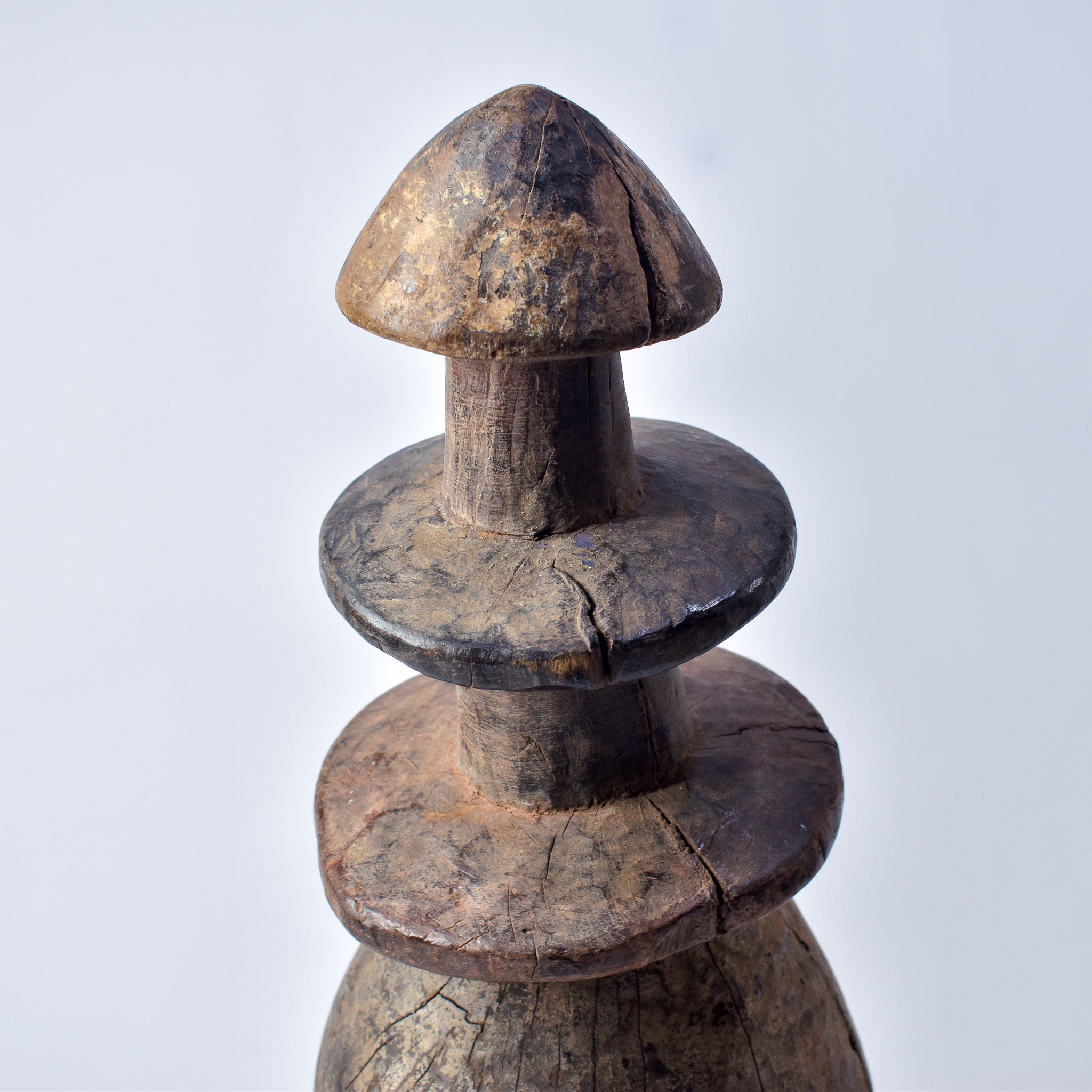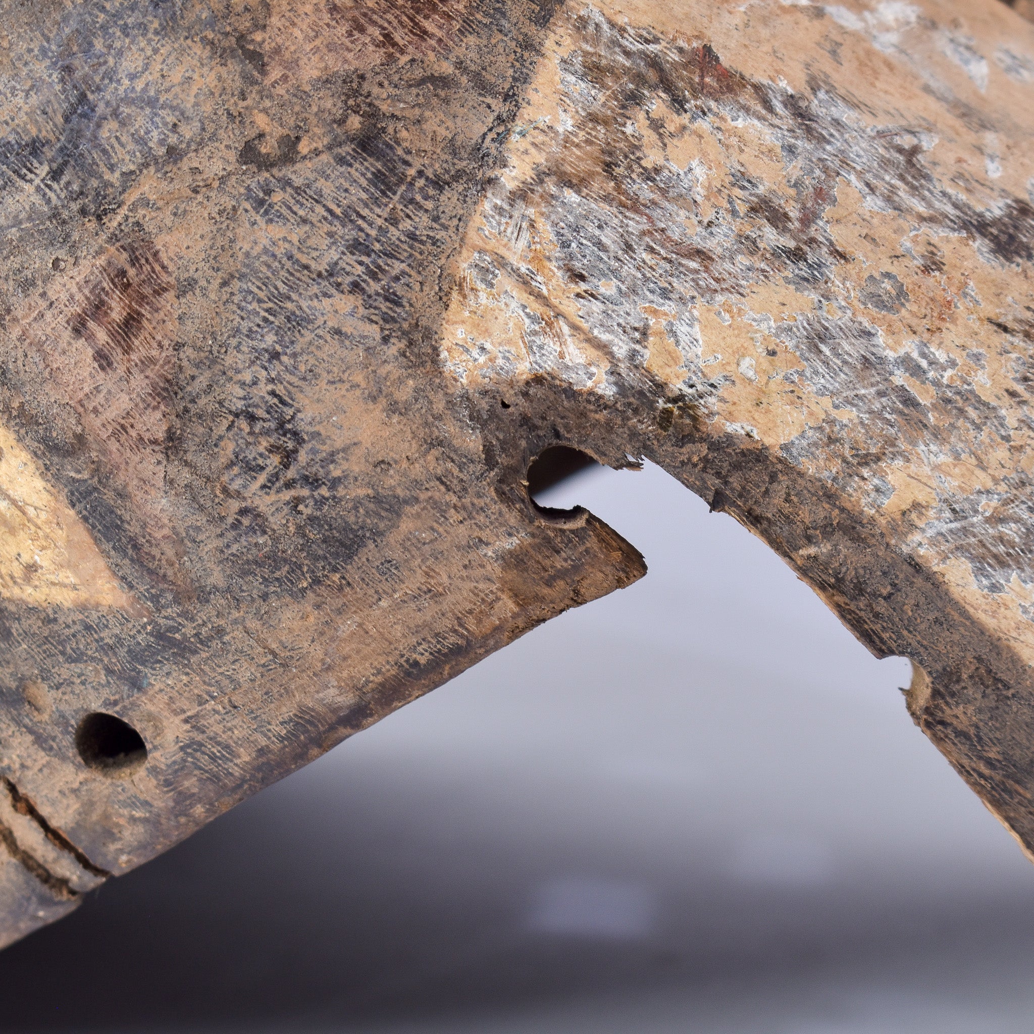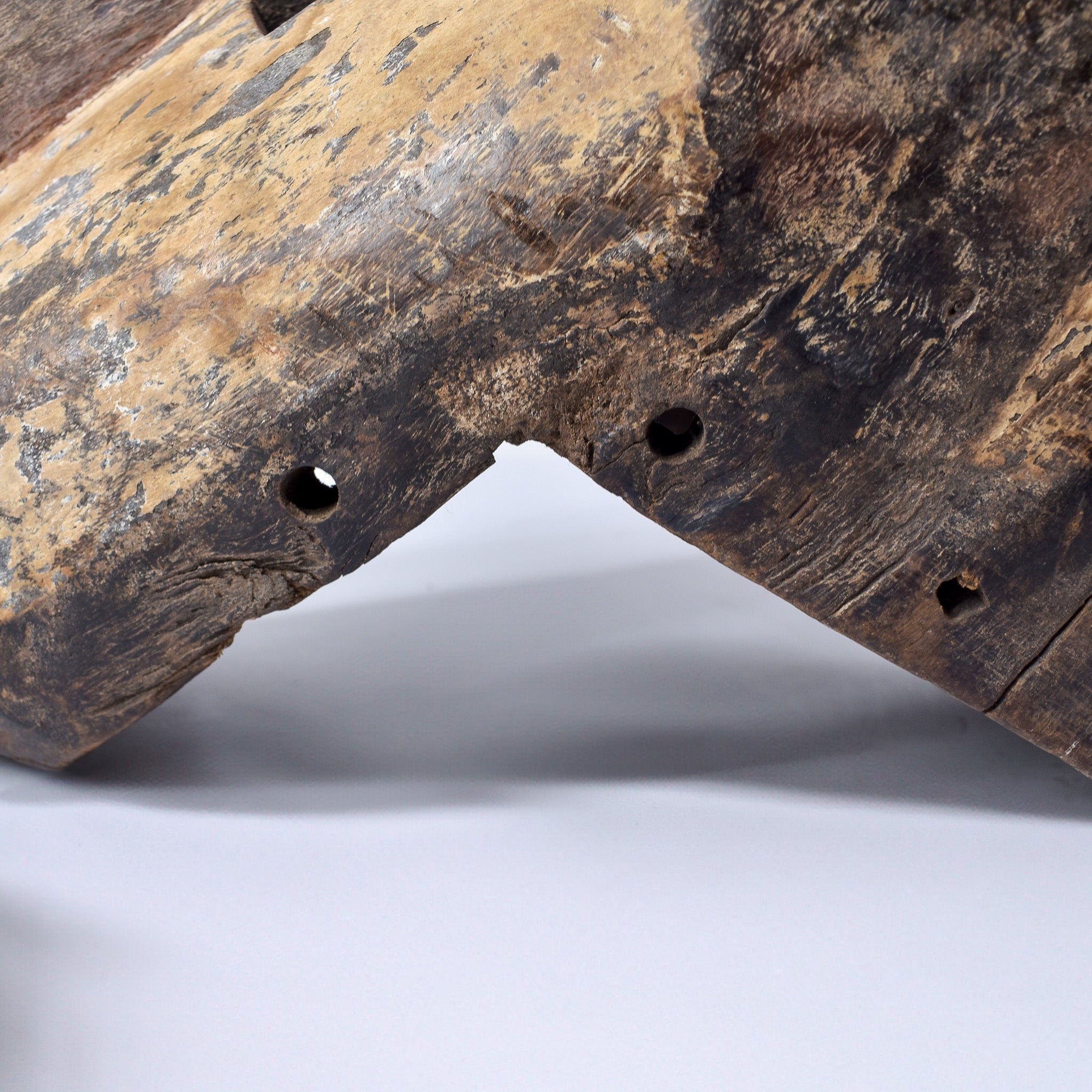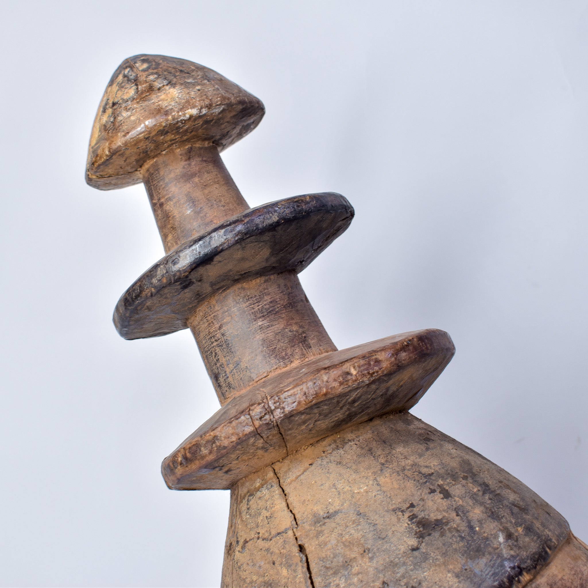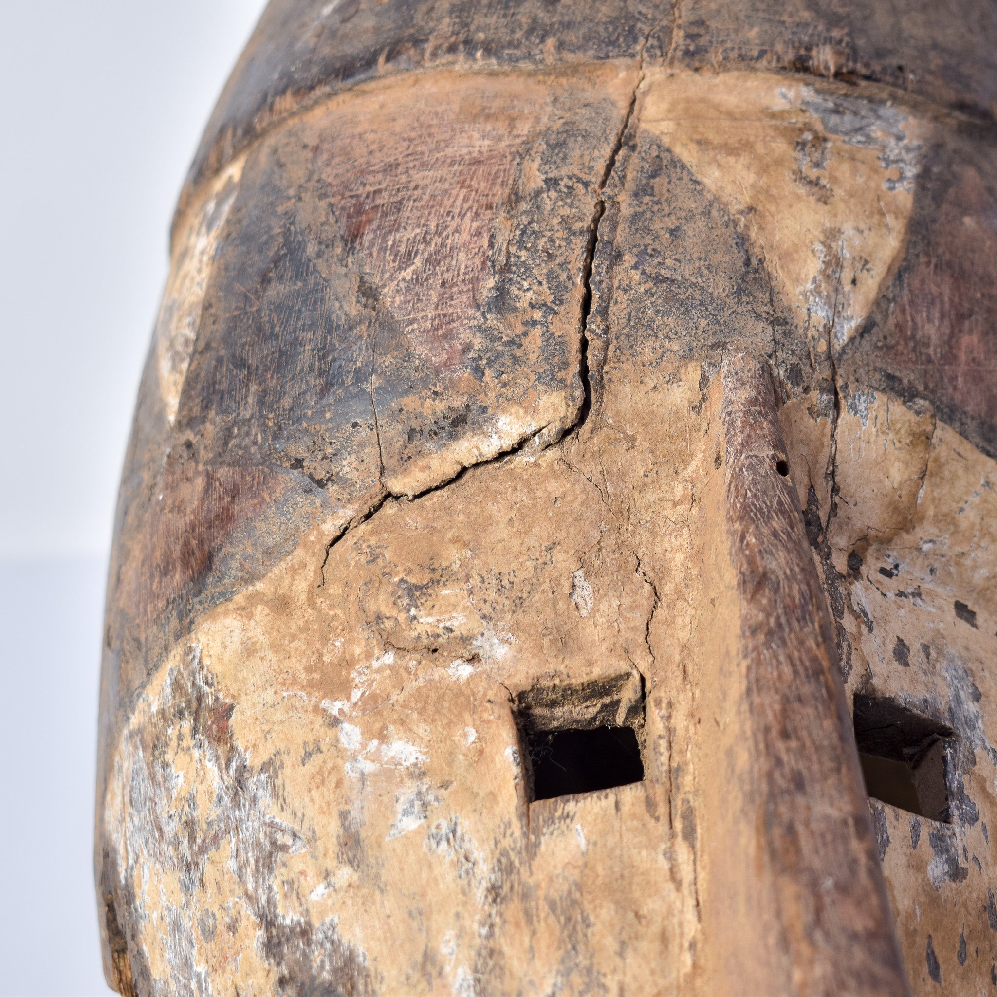 An elaborate Mossi mask with a figural carving and geometric shape and patterning.