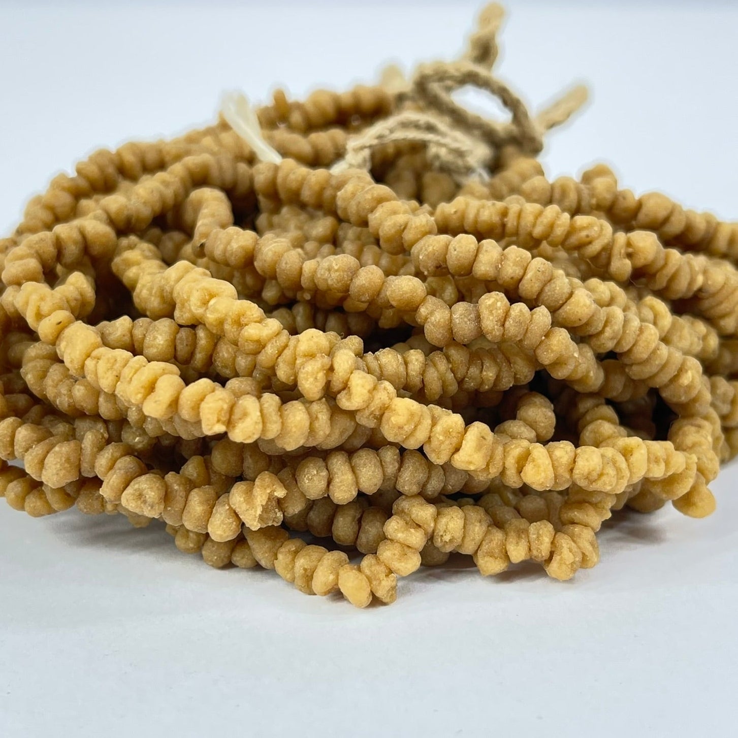 These are aromatic beads made from a natural plant resin found in Africa. While they are often referred to as "Myrrh" beads, they may not actually be made from the Myrrh plant. Myrrh is a resin obtained from the Commiphora tree species, primarily found in the Arabian Peninsula and parts of Africa.