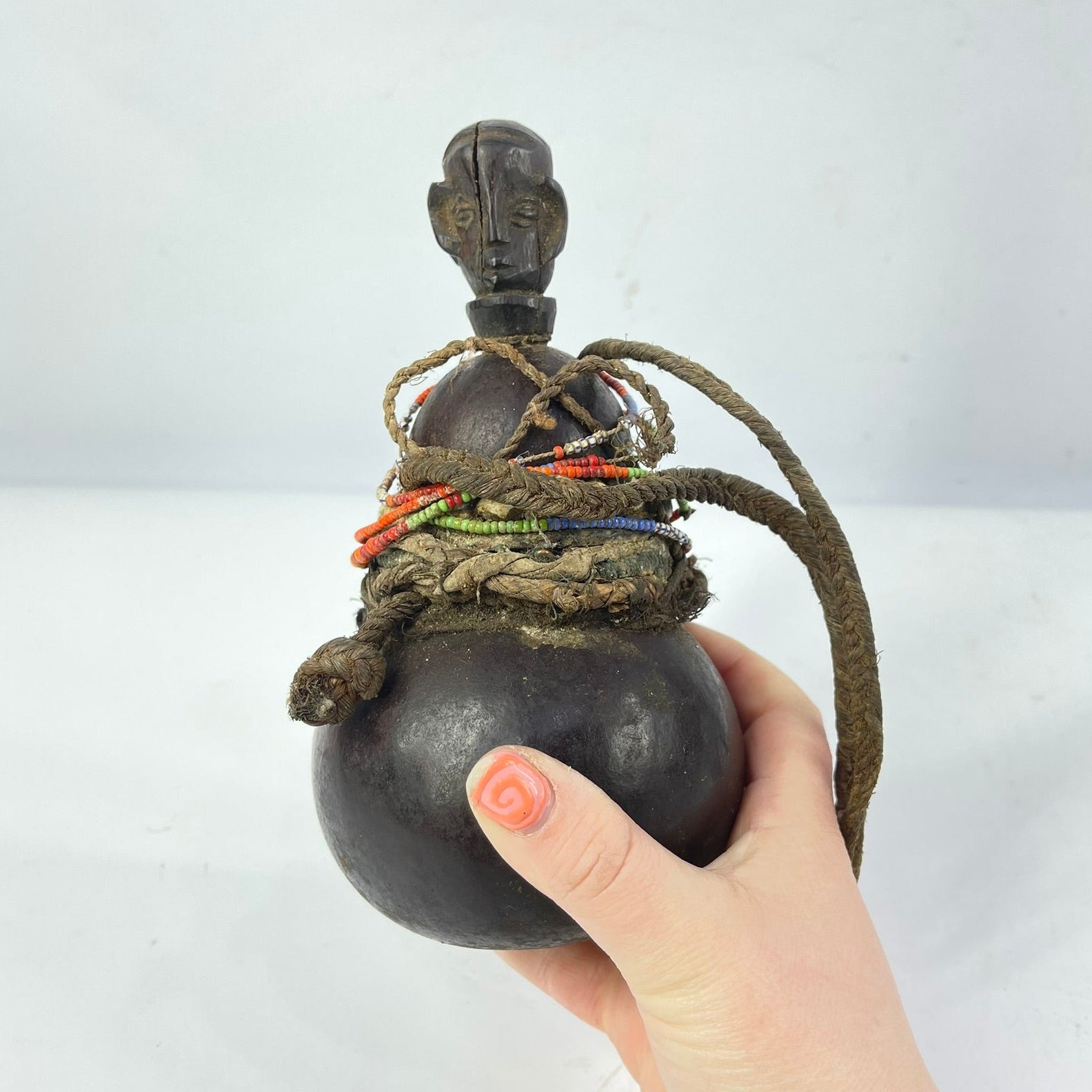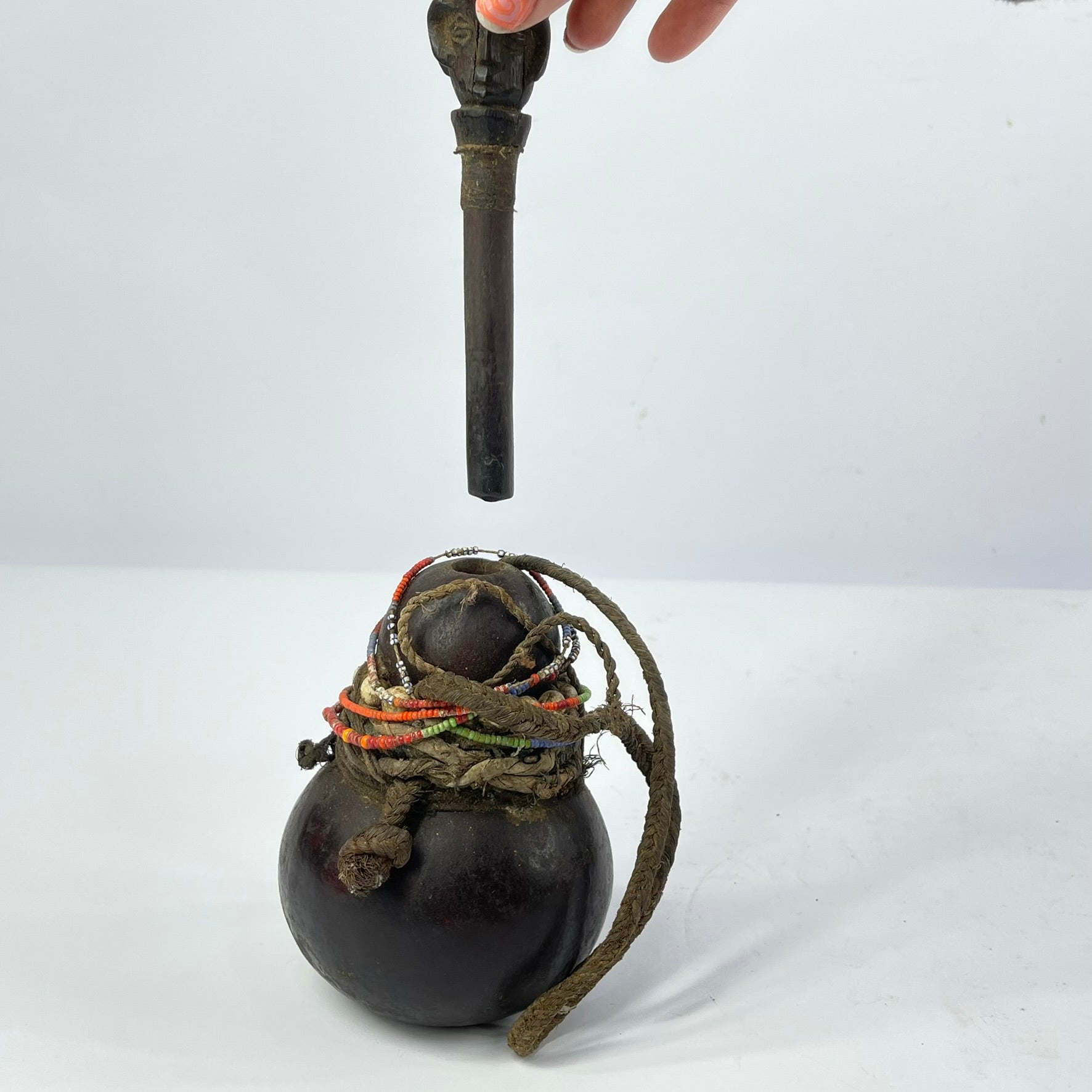 Material: Gourd, Wood, Vegetal Fibers, glass beads