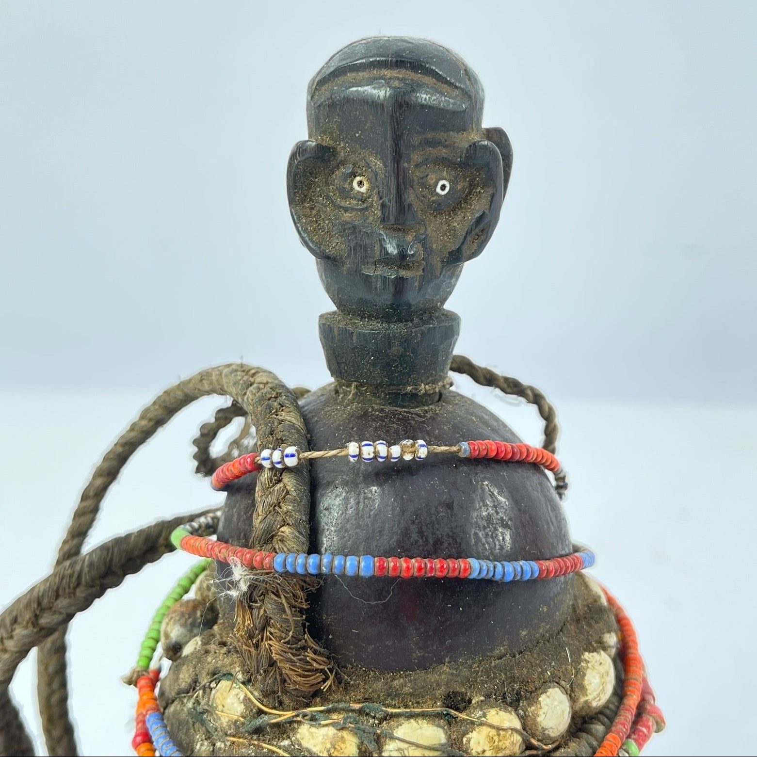 Damage/Repair: Embedded dirt, frayed fibers, wear to amulets. See photos for details