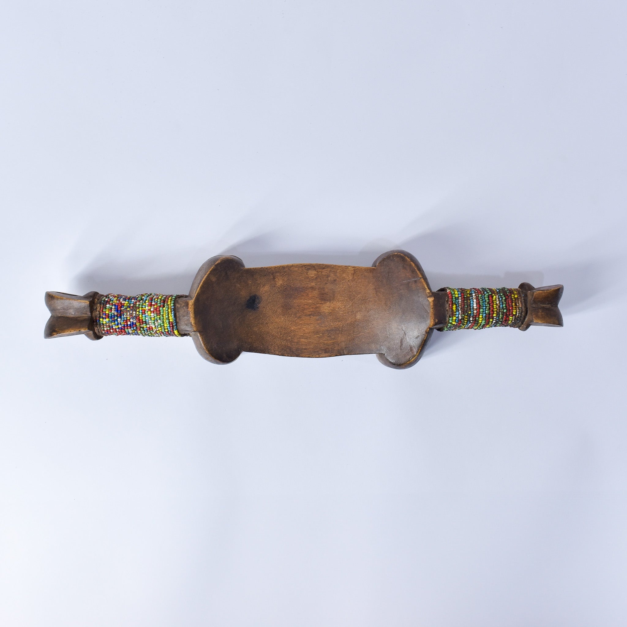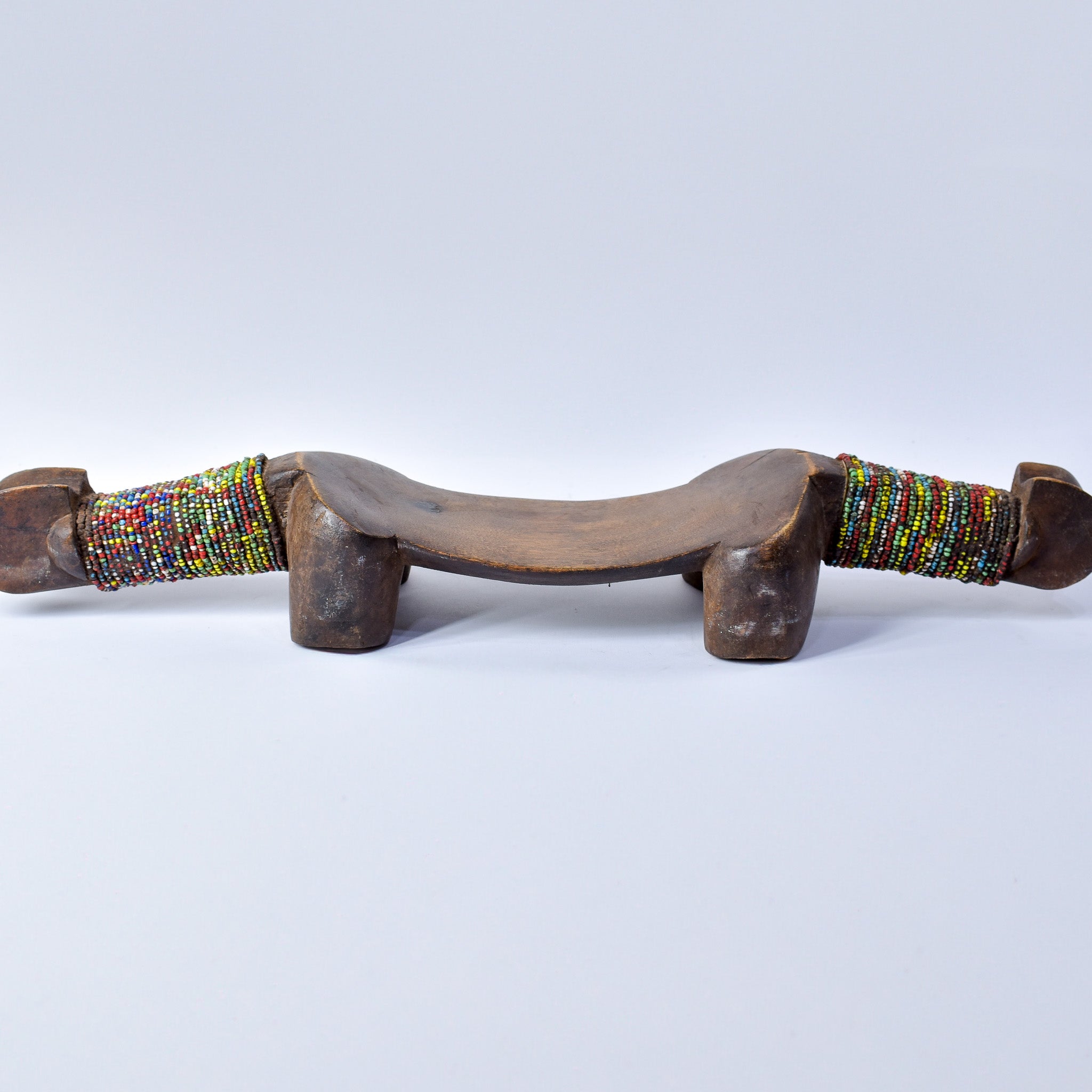 Nyamwezi Wooden Headrest with Glass Bead Decoration Tanzania