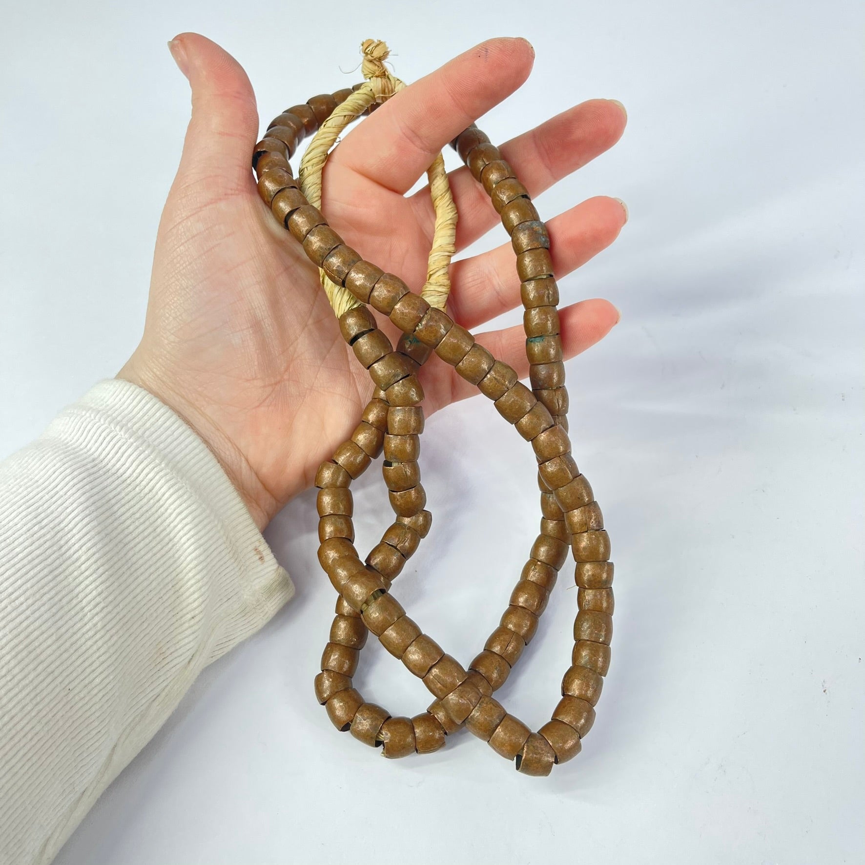 A strand of old handmade copper beads from Sudan, traditionally crafted using simple casting and hand-finishing techniques. Copper beads such as these were widely used throughout Sudan and the surrounding regions as personal adornment and as components in necklaces, belts, and ceremonial jewelry.