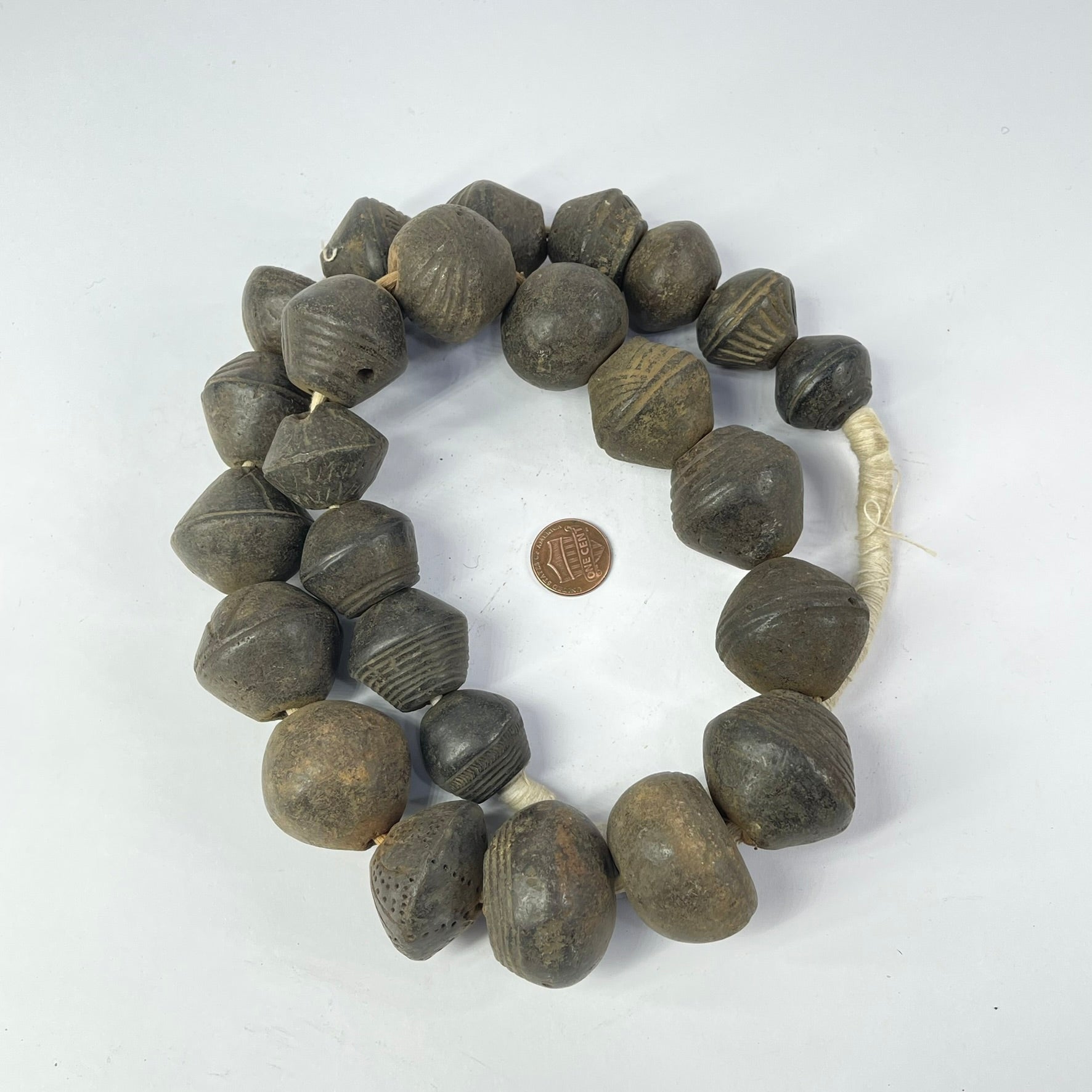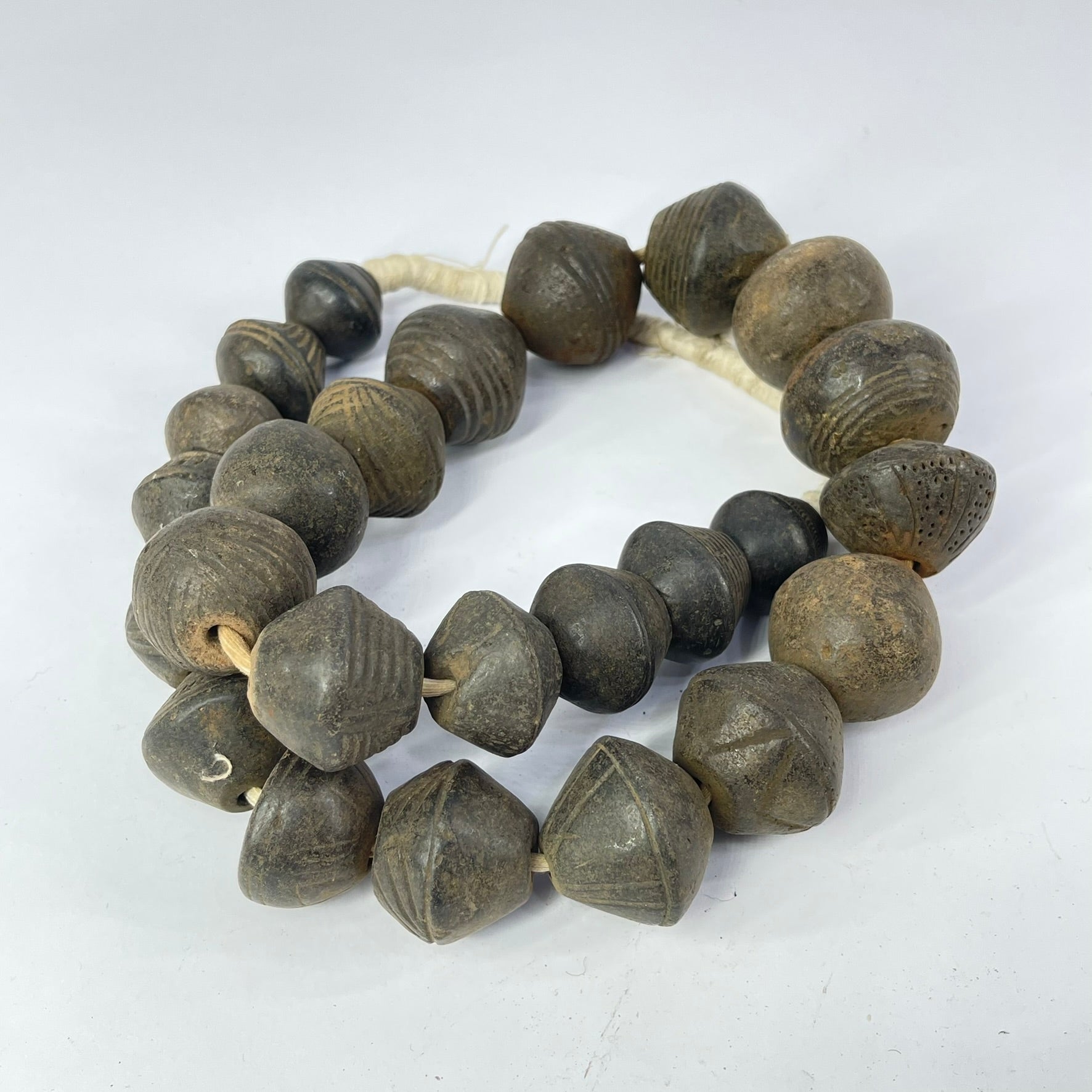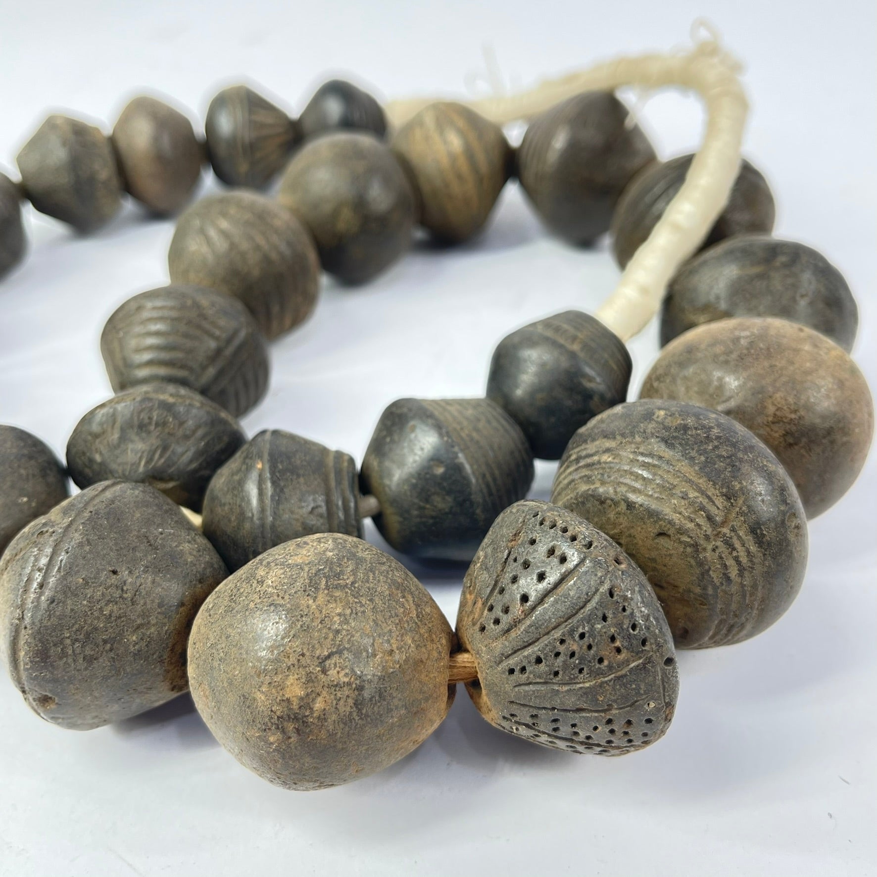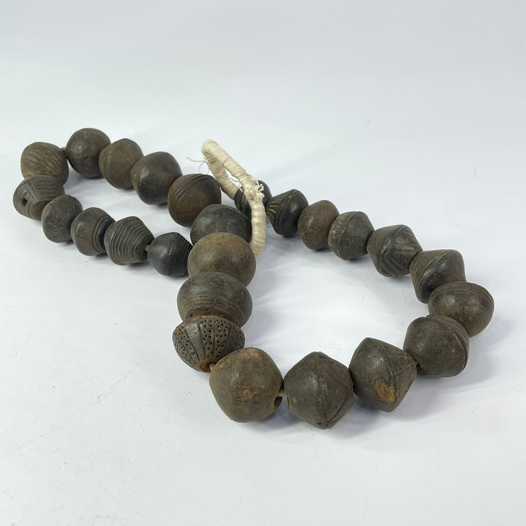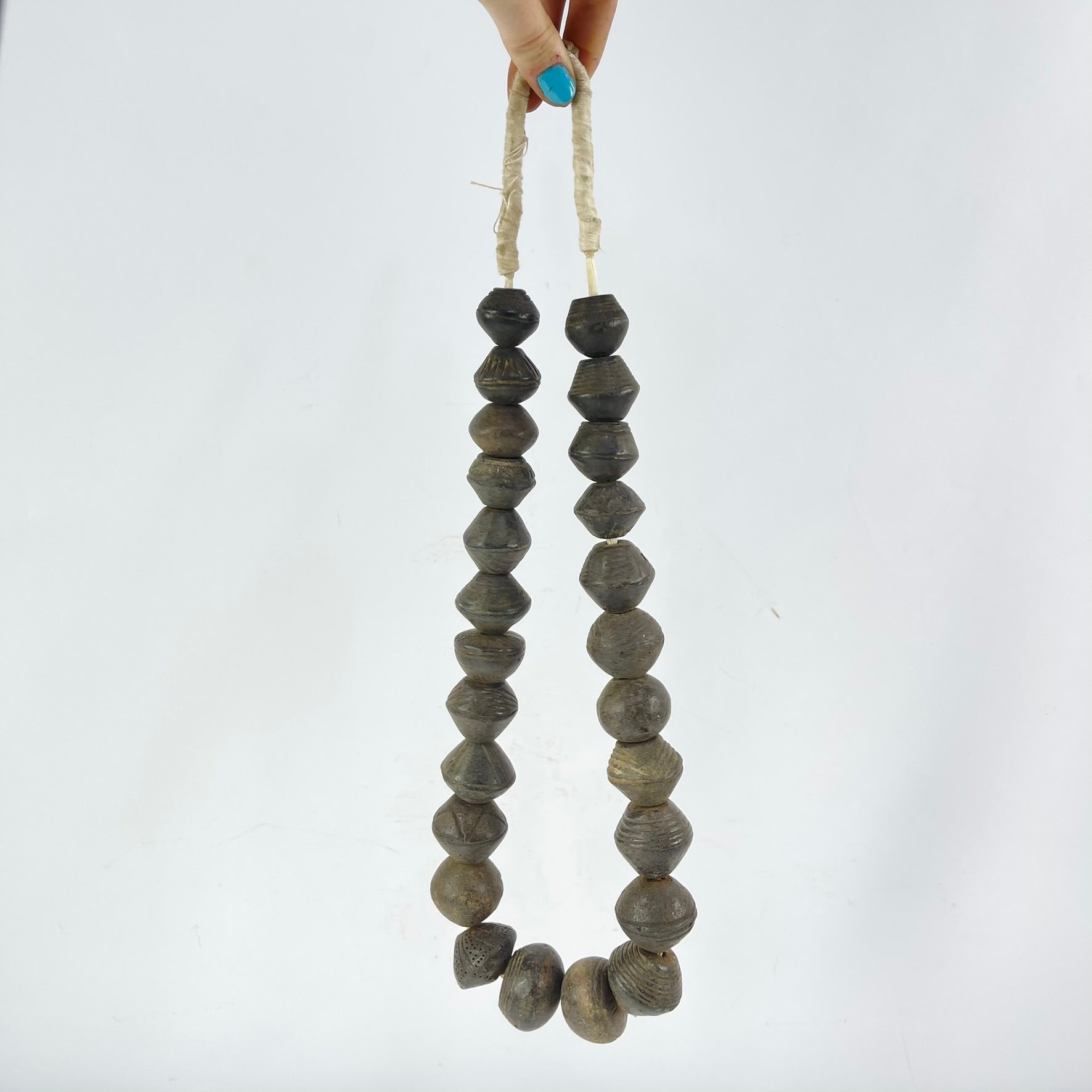 Old Dogon Clay Spindle Whorl Trade Beads Mali 32inch
