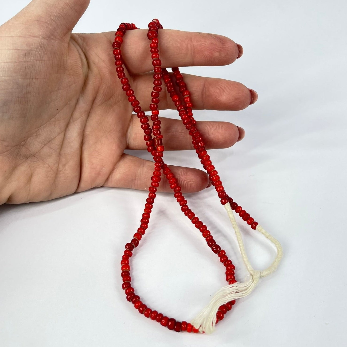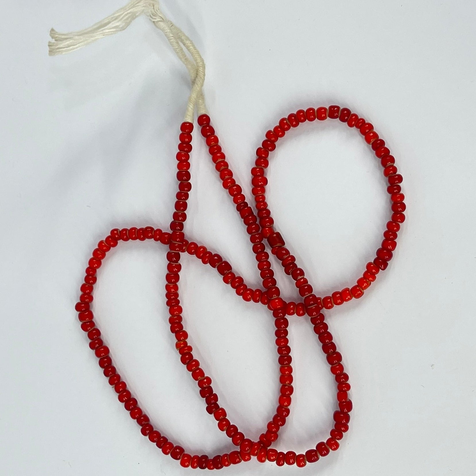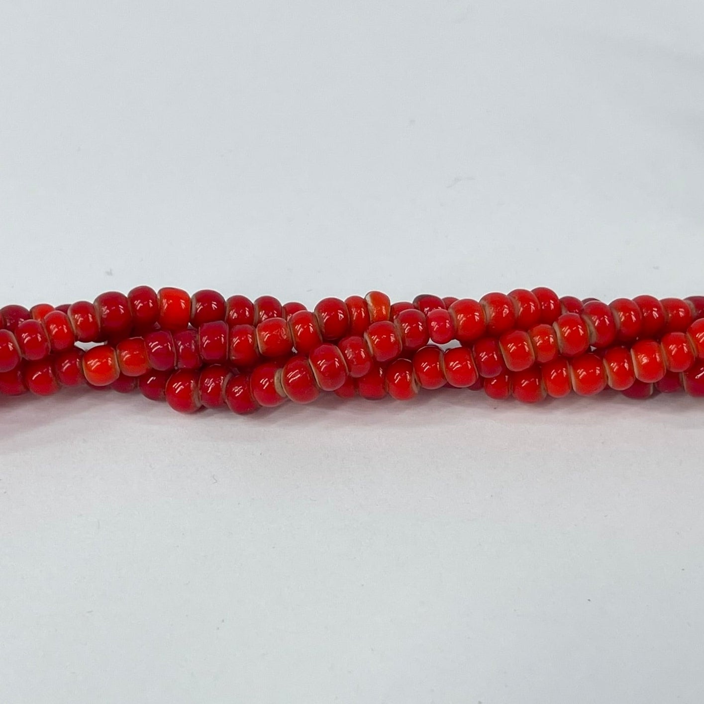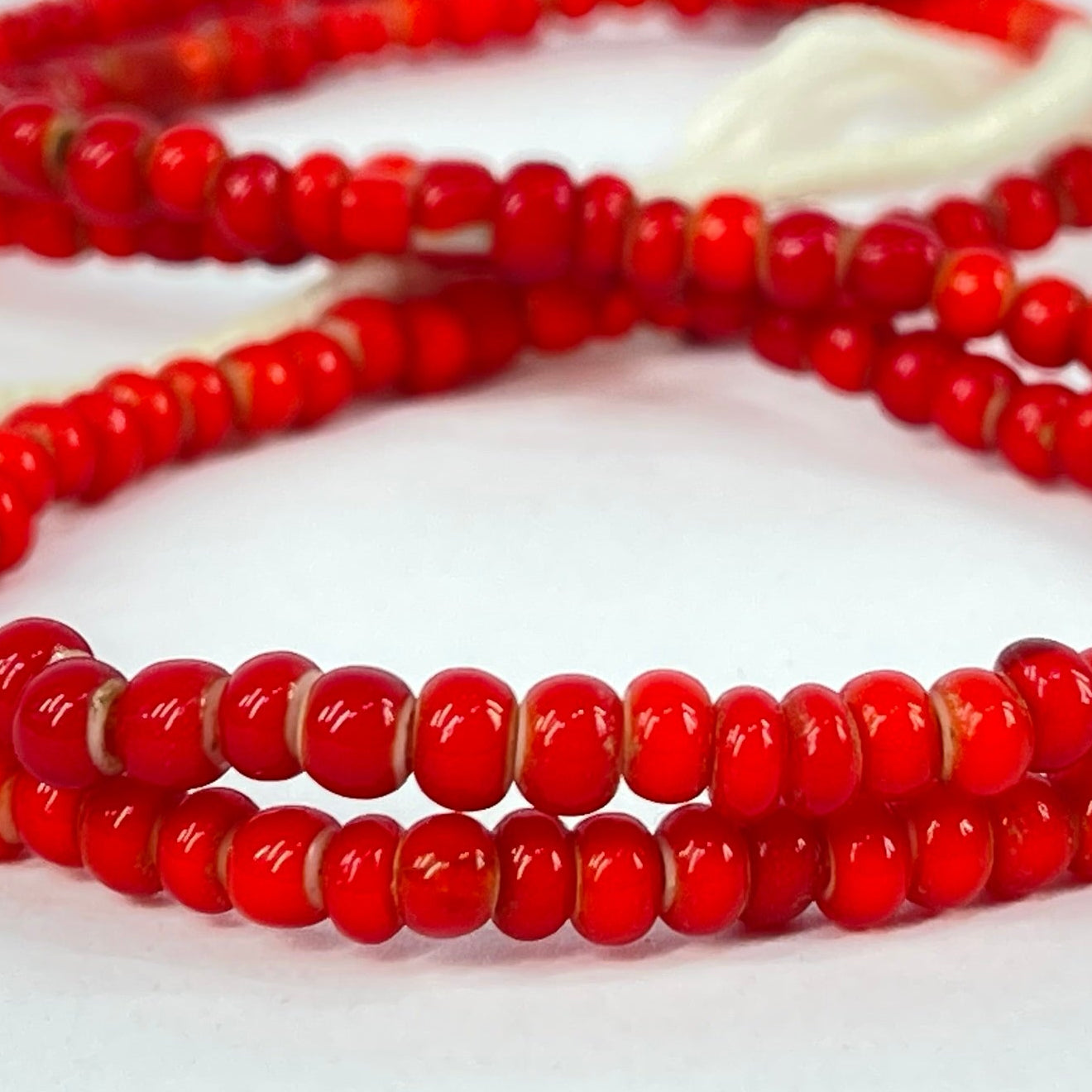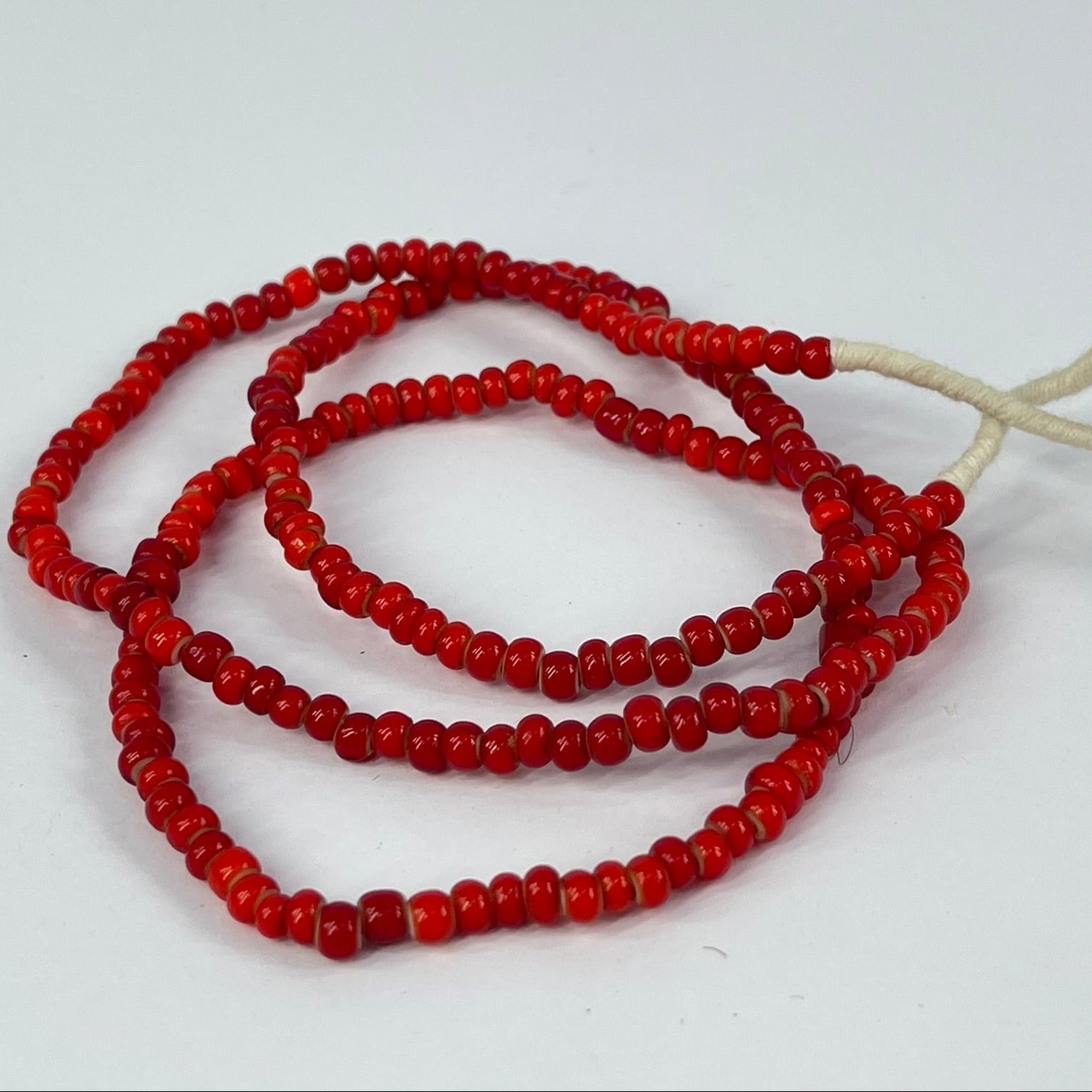 Old Ethiopian Red White Hearts Flat Ended Trade Beads