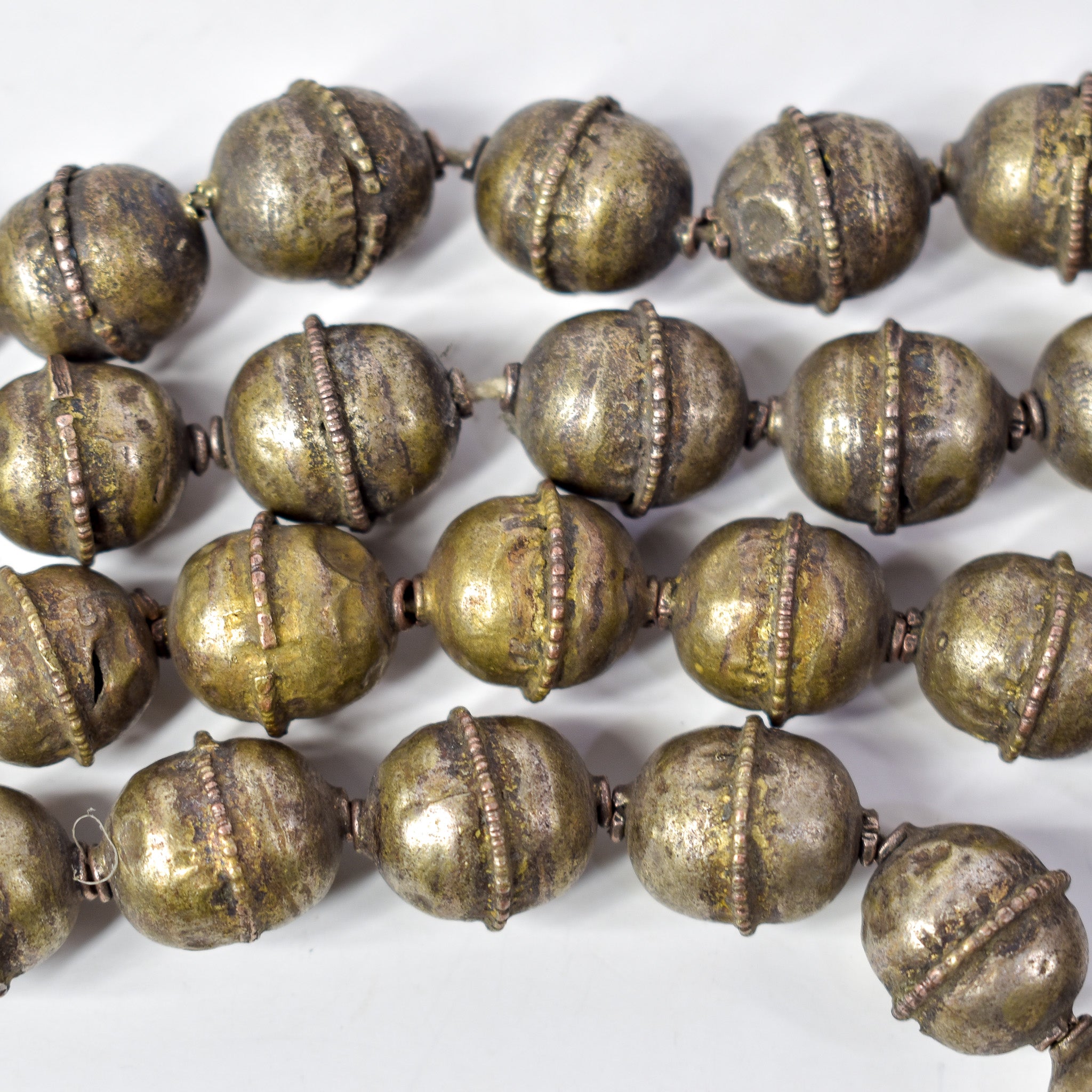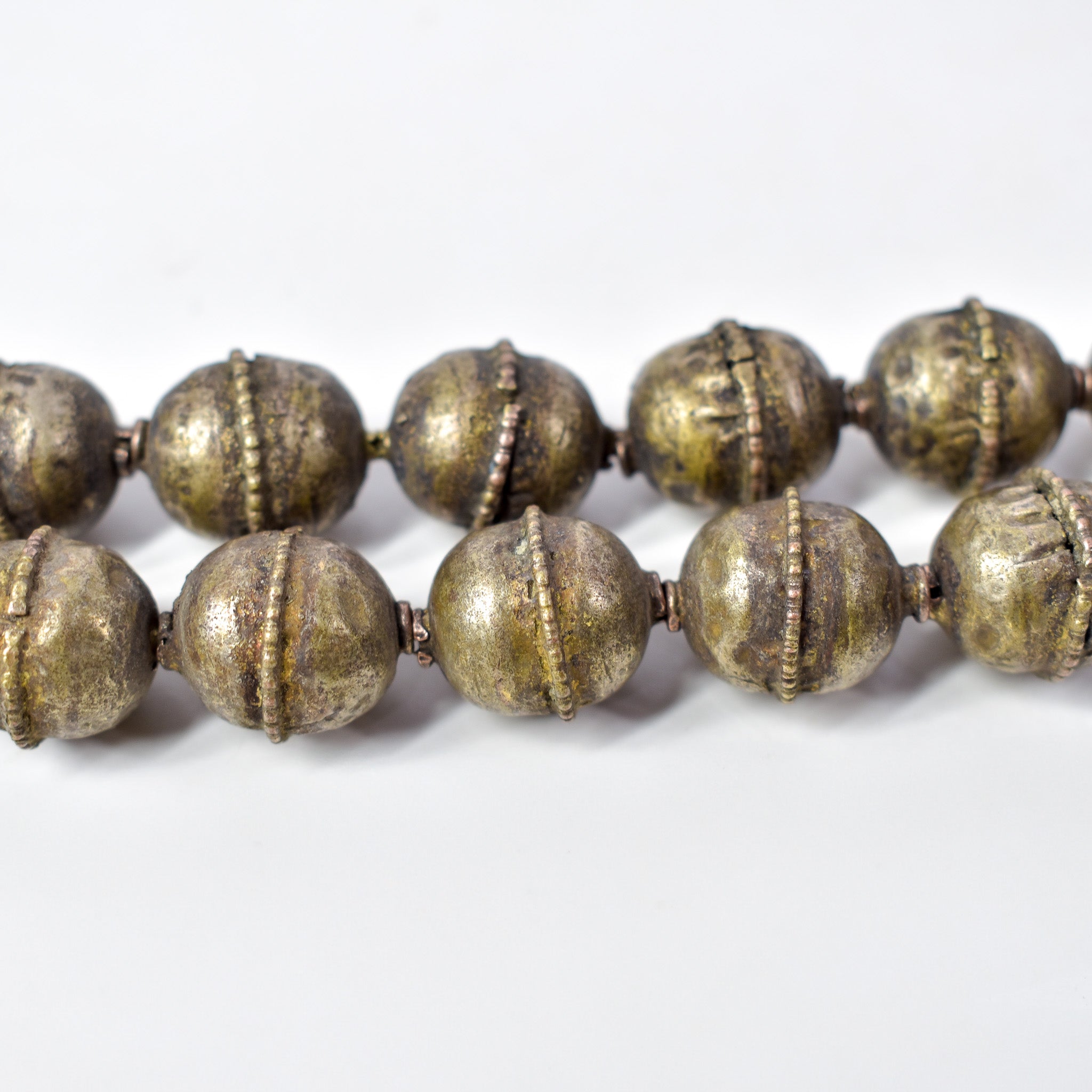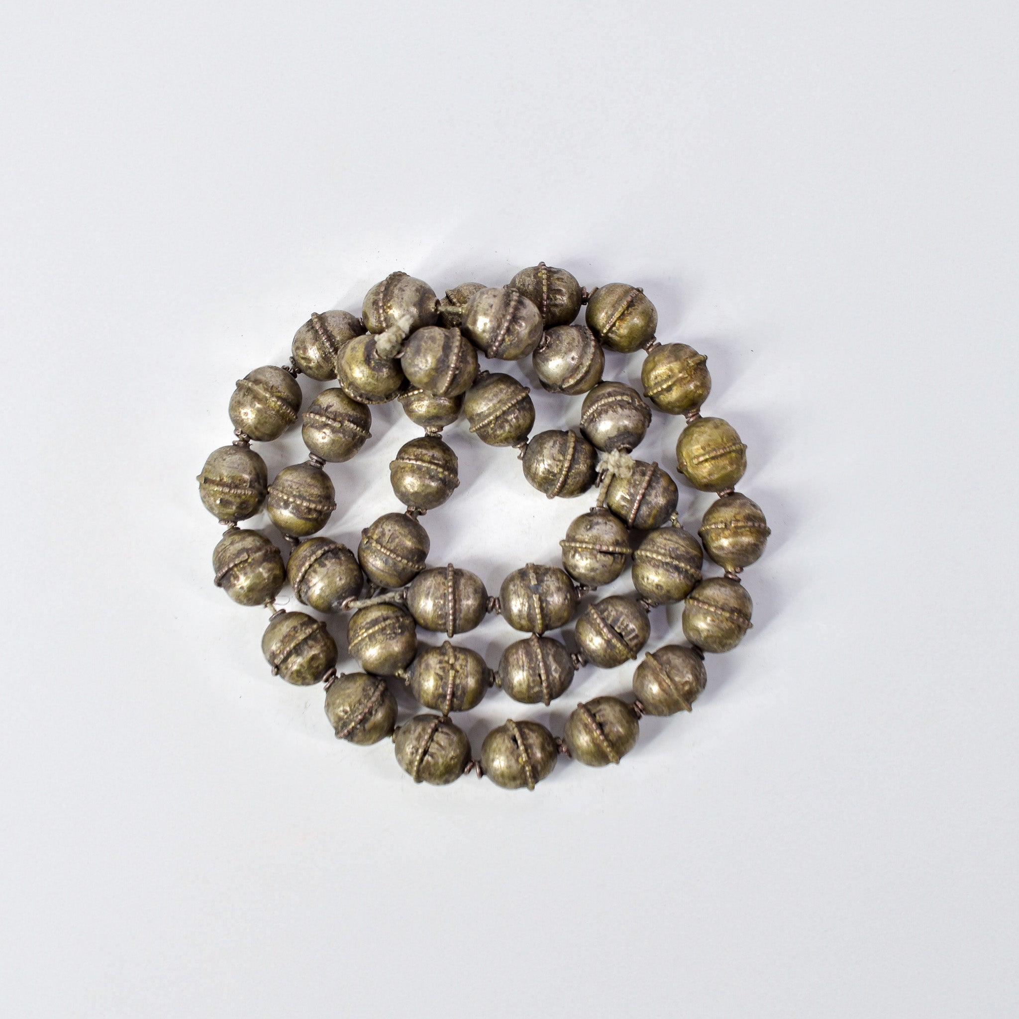 Ethiopian metal beads with a silver-colored finish, handcrafted using traditional techniques. Most Ethiopian beads are made from white metals like tin, antimony, or nickel, these are finished to resemble aged silver. Hollow and lightweight, they show natural variation in texture and shape. Commonly used in jewelry and craft projects, their irregular forms make them especially popular as spacer beads in modern ethnic-inspired designs.