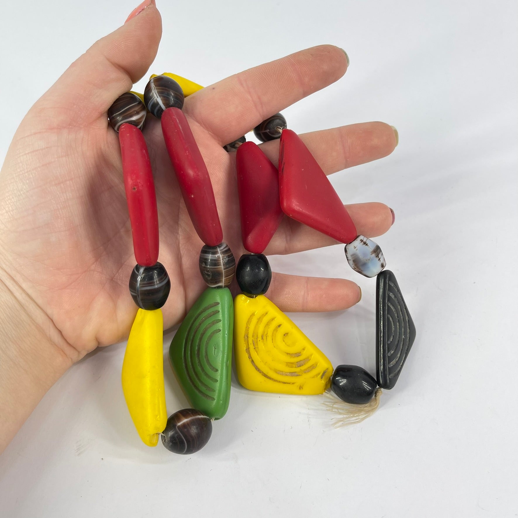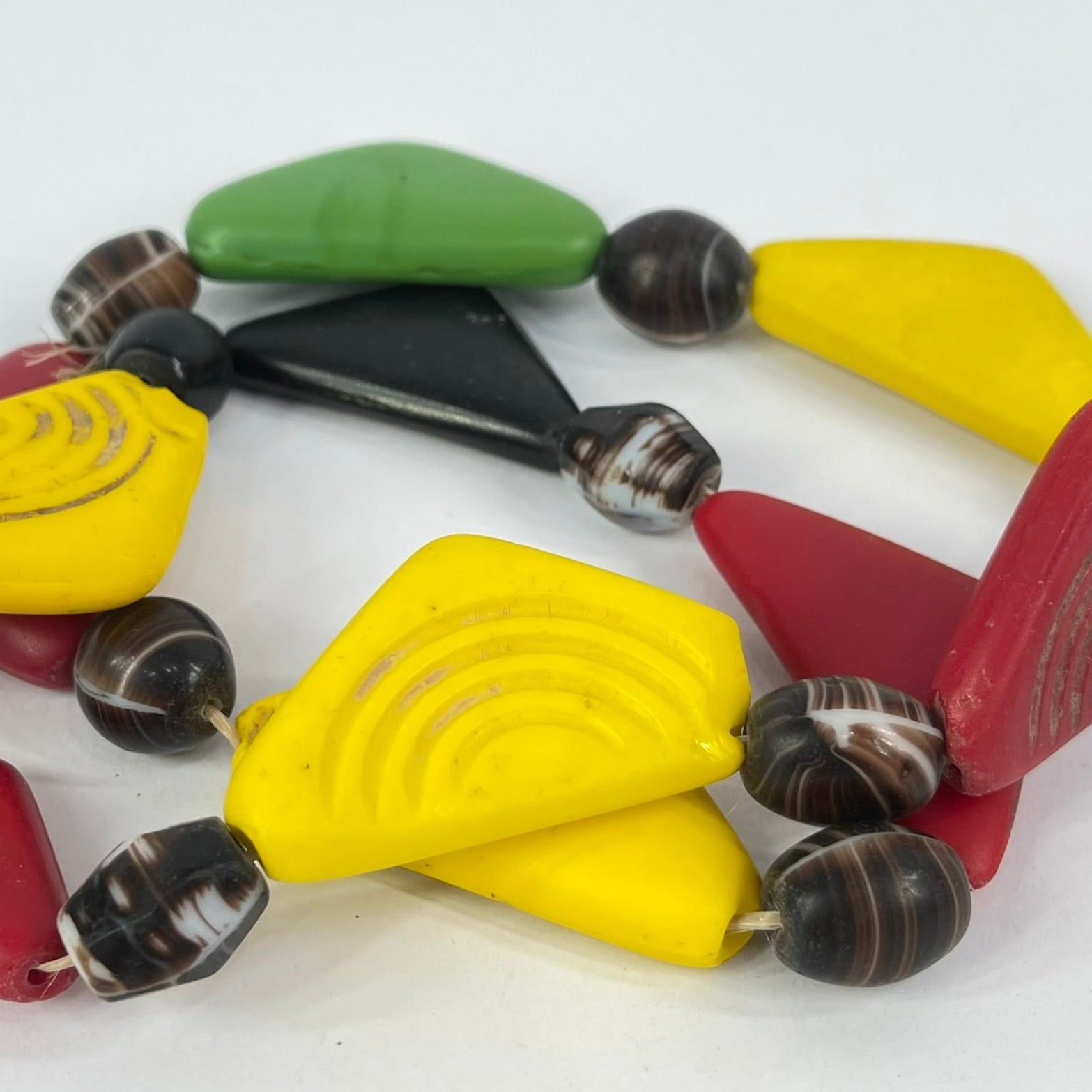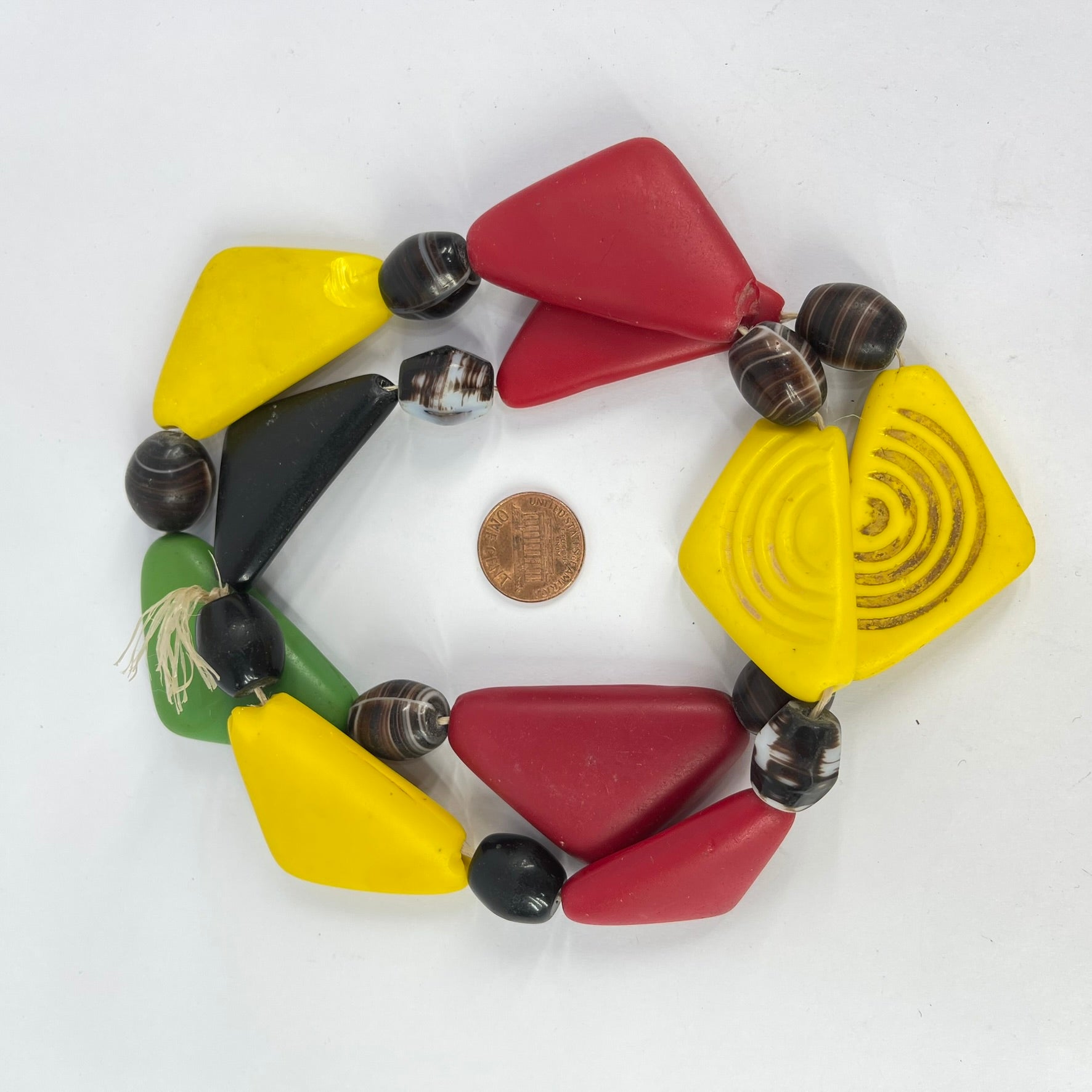 Old Triangular Bohemian Red Yellow Green Trade Beads MATTER COLLECTION