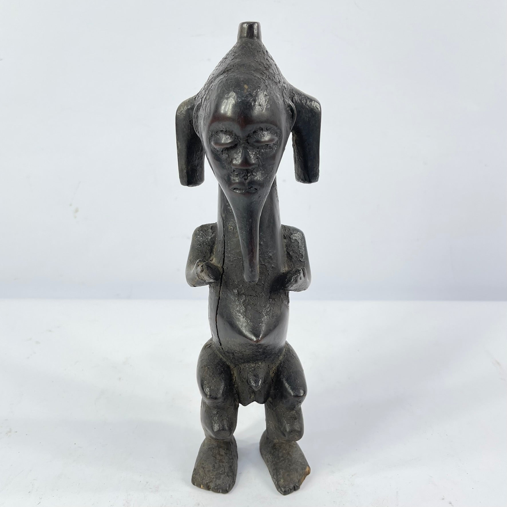 The Fang people, residing in Congo, Gabon, Equatorial Guinea, and Cameroon's rainforests, uphold a rich cultural heritage tied to their belief in ancestral relics' spiritual power, notably seen in their bieri-associated reliquary guardians. Over centuries, the Fang migrated southwest, safeguarding ancestors' skulls in sacred bark boxes symbolizing lineage continuity and community cohesion. Mounted atop were carved heads or figures, shielding contents from women and uninitiated boys' view. Originally heads, these guardians evolved into busts and full figures.