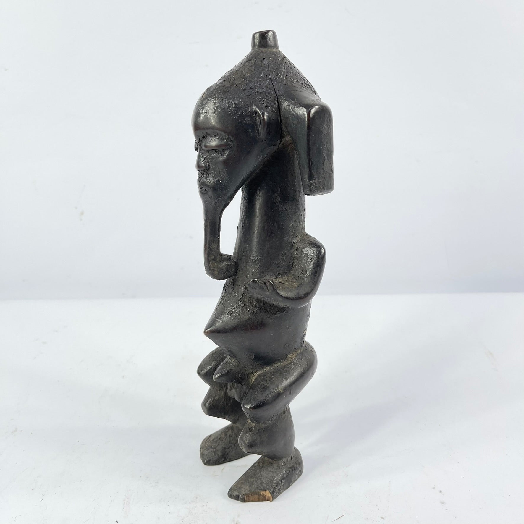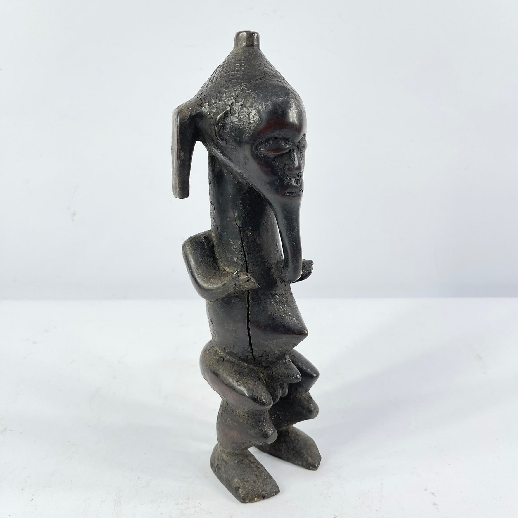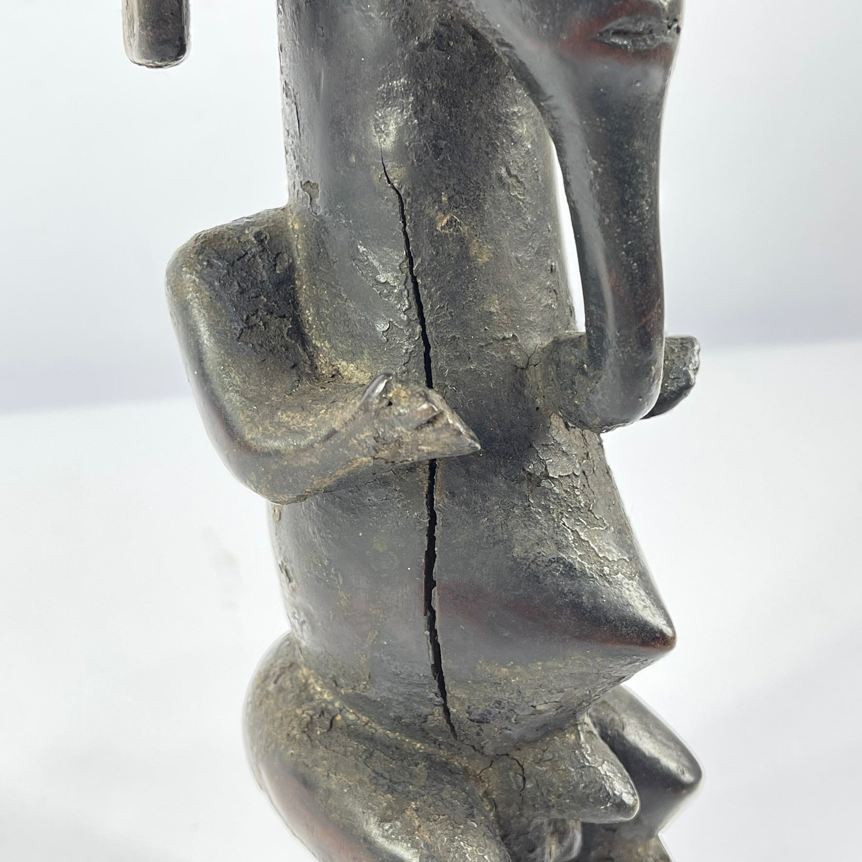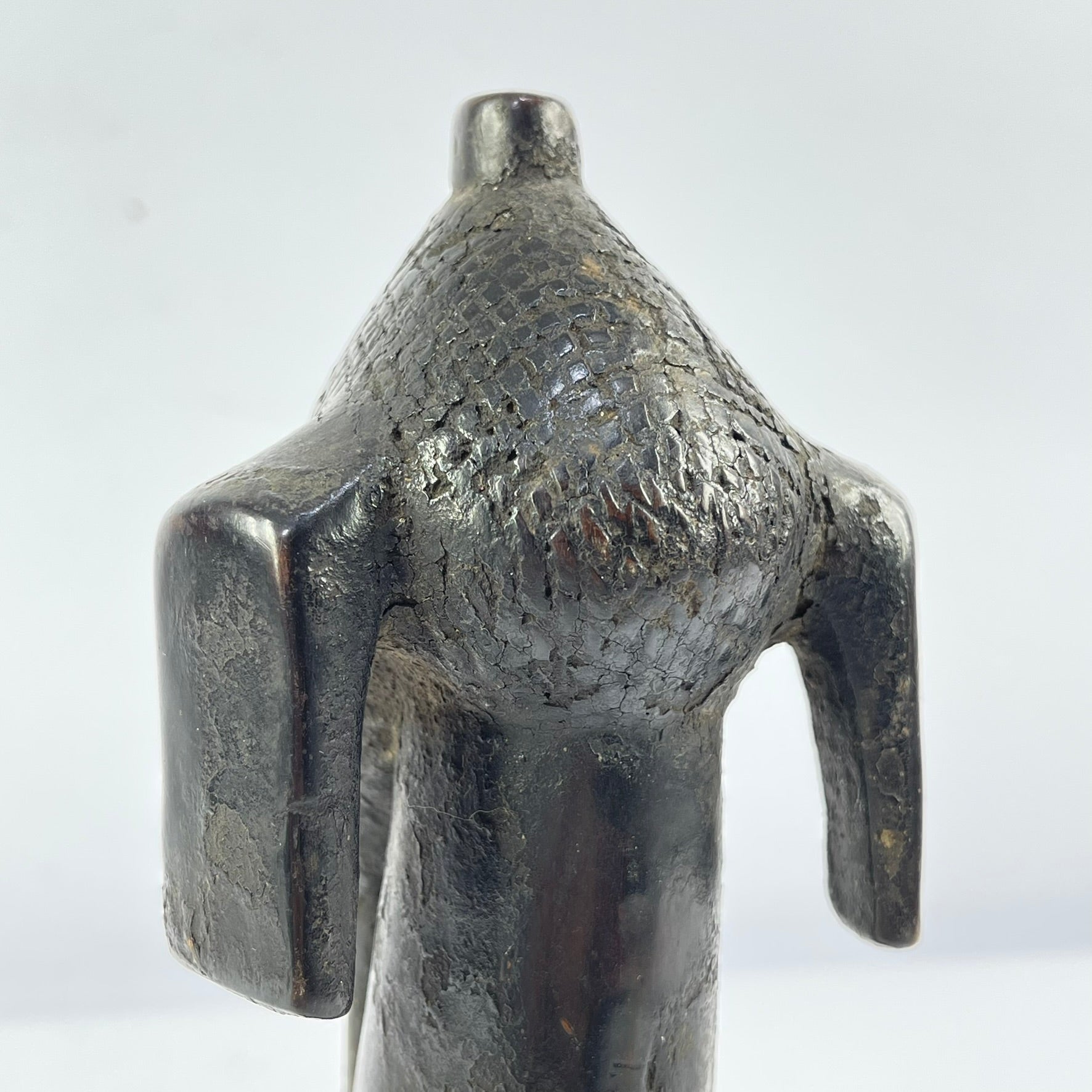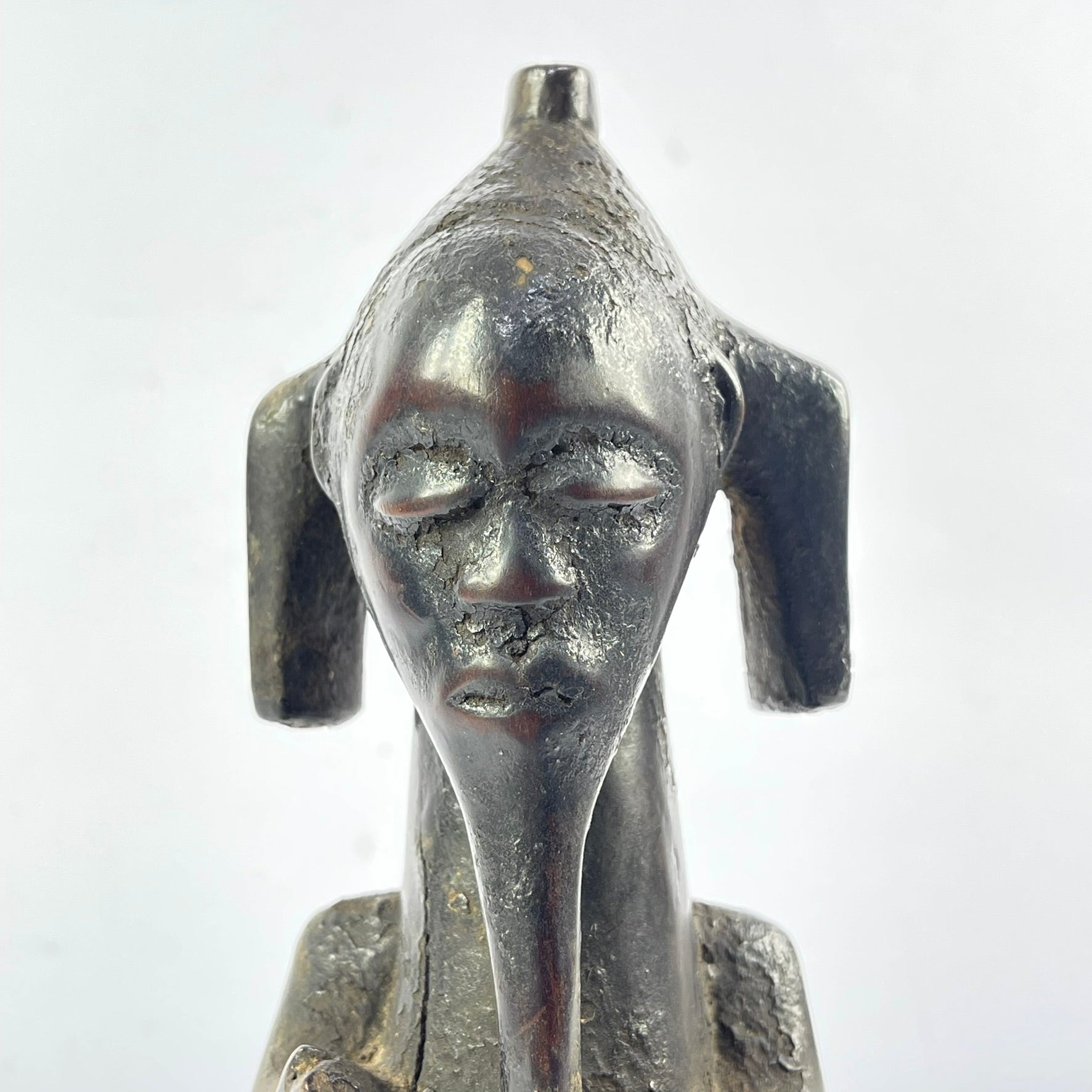 As the byeri cult waned in the 20th century, the syncretic bwiti religion emerged, reducing byeri's significance. Fang artisans' bieri figures embody esteemed qualities like tranquility, vitality, and balance, reflected in their forms—infant heads on adult bodies signifying life stages and generational cycles. Static yet tense, with passive faces and taut muscles, these figures embody the Fang's quest for harmony and equilibrium, expressing their spiritual and cultural ideals.