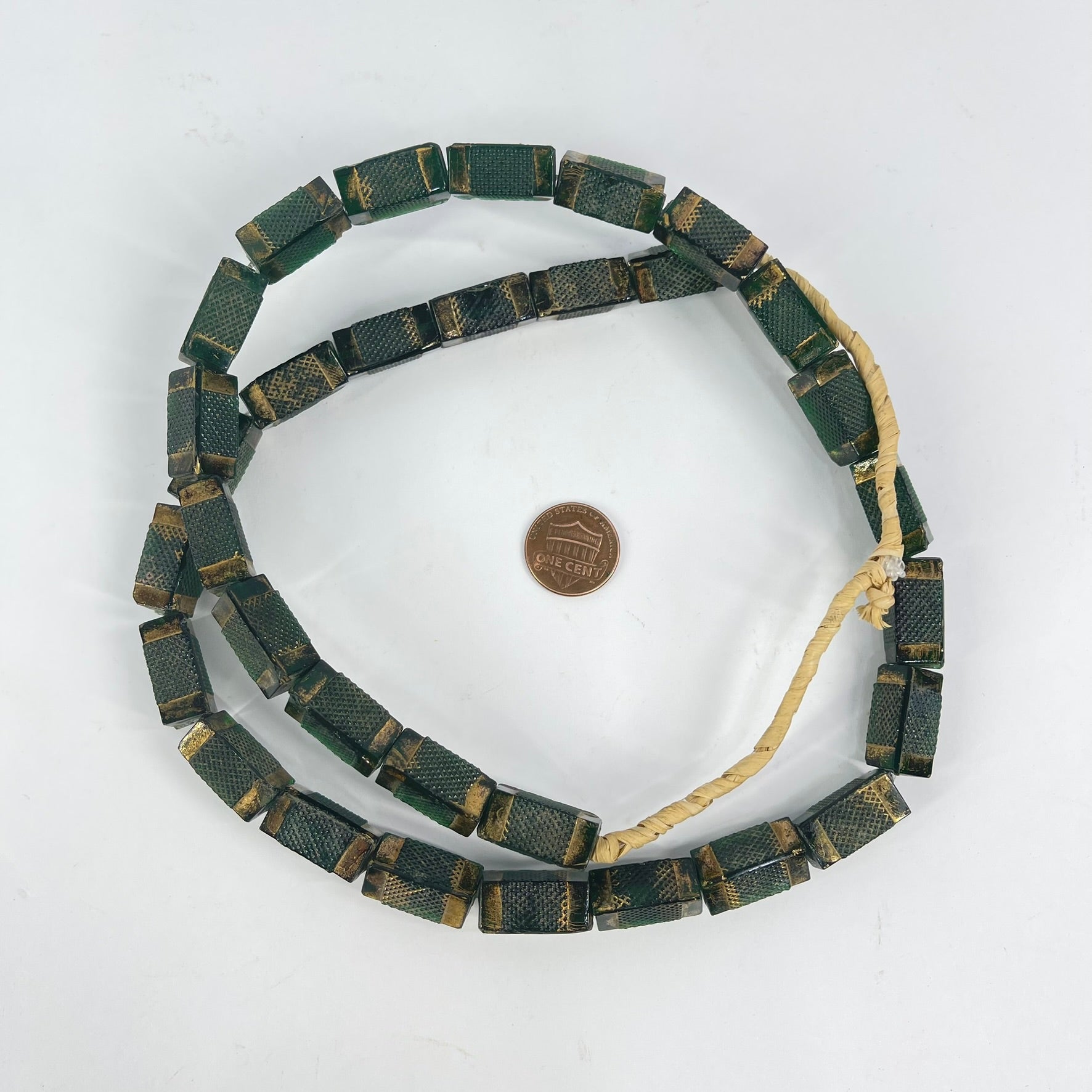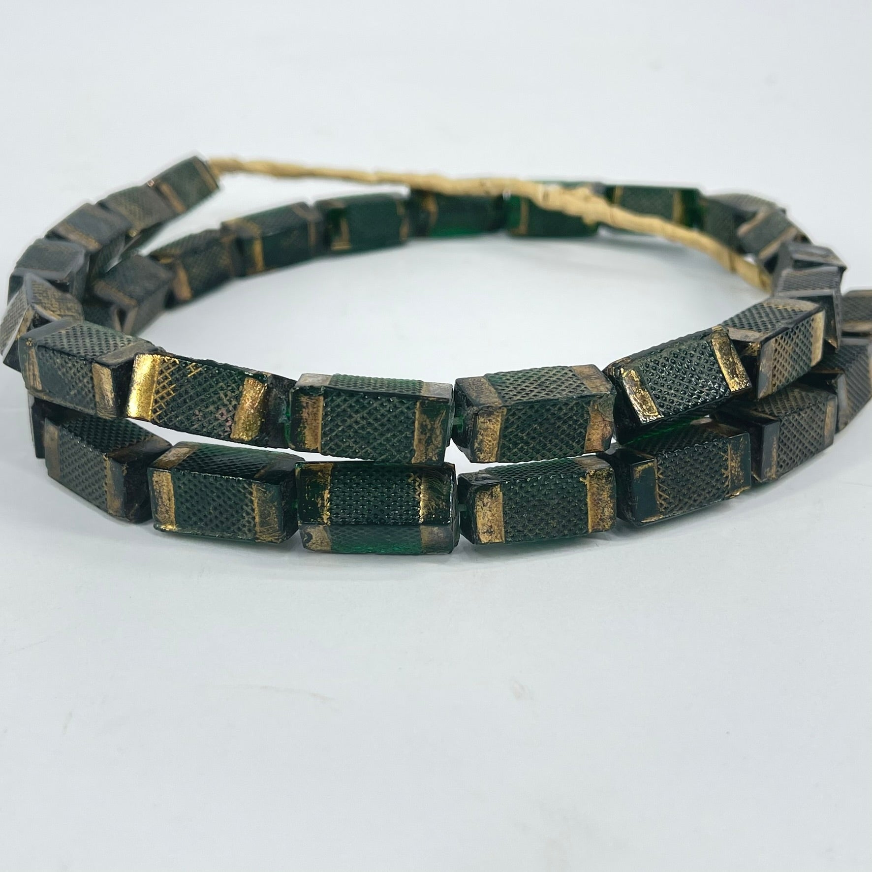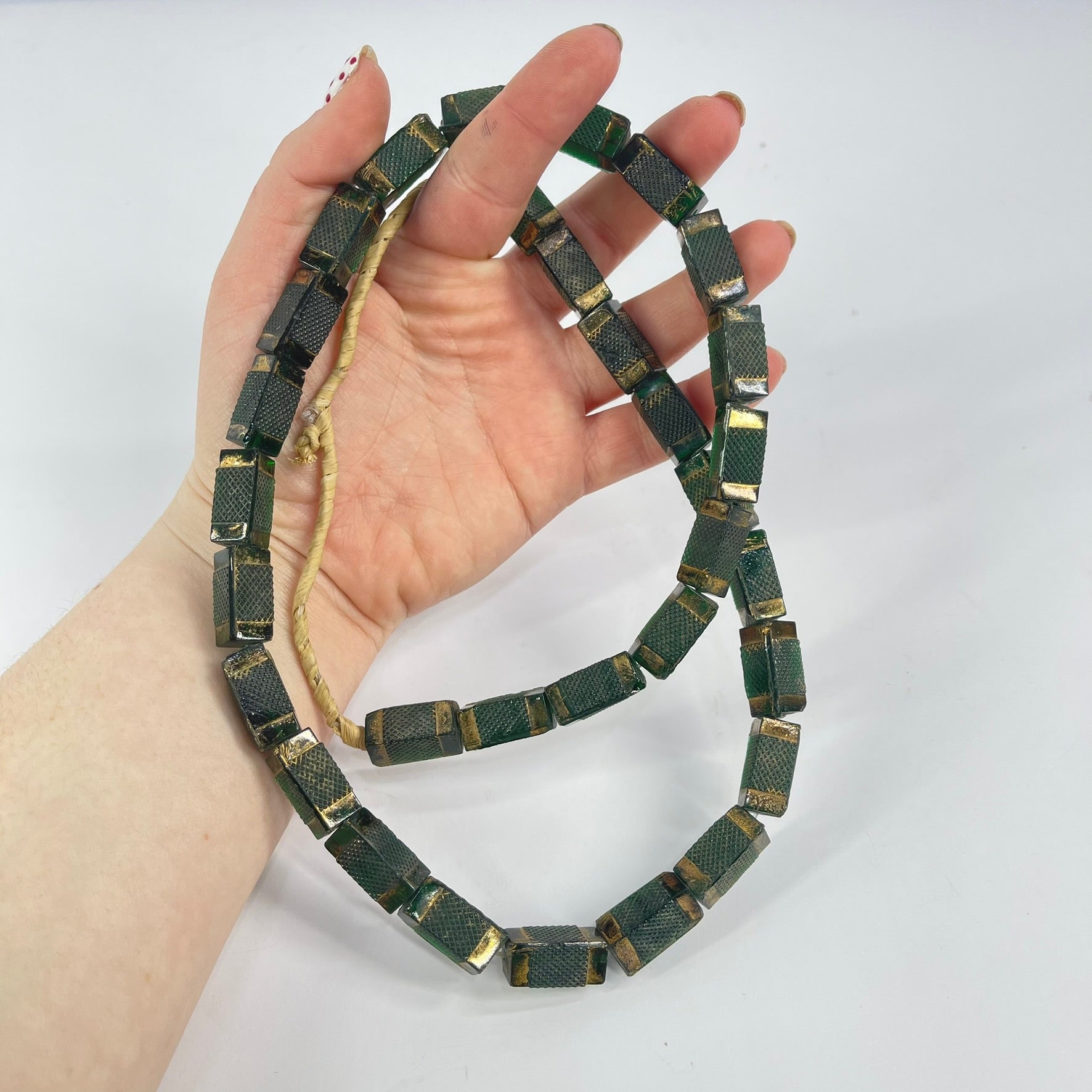 Rare Pressed Venetian Trade Beads Rare Green 30 Inch