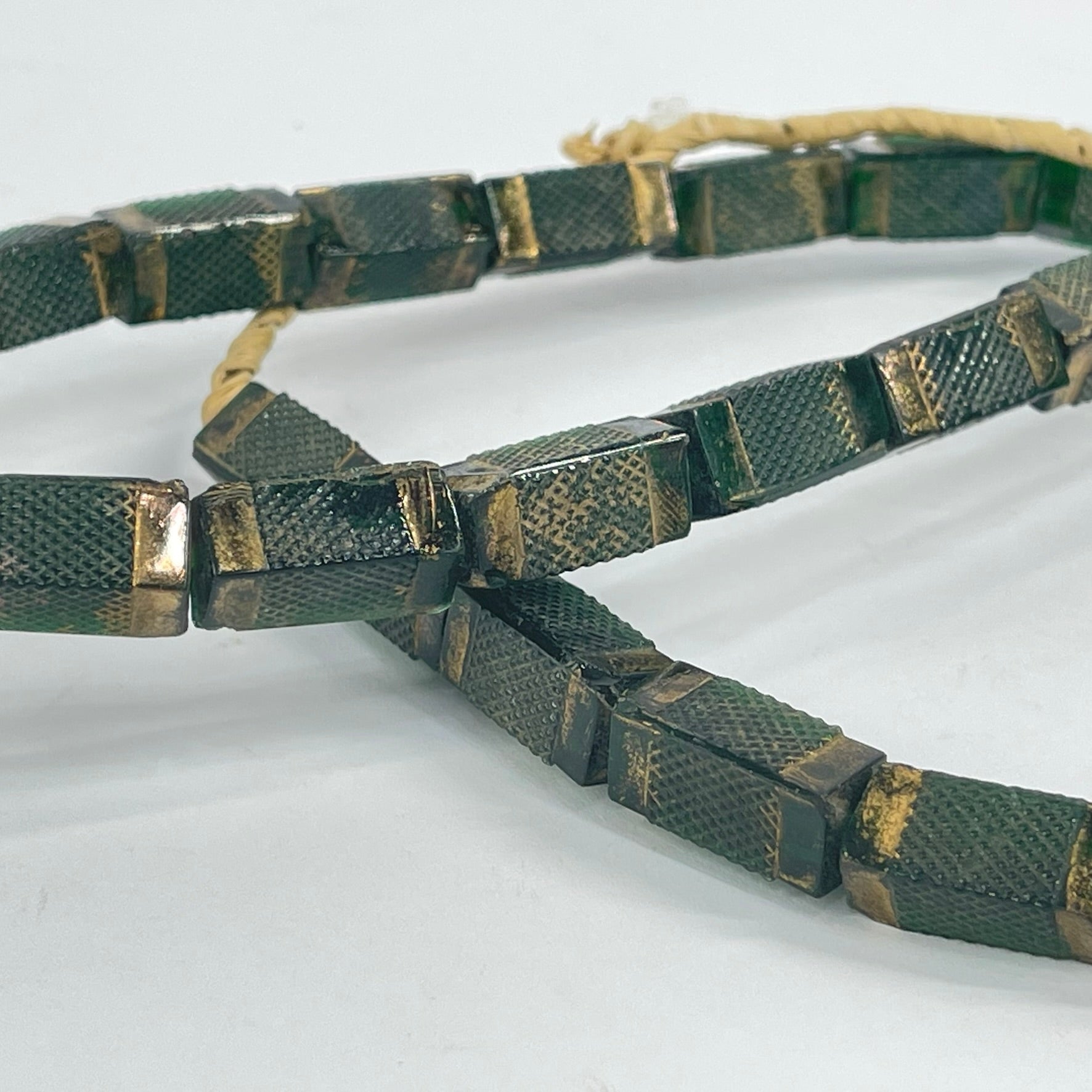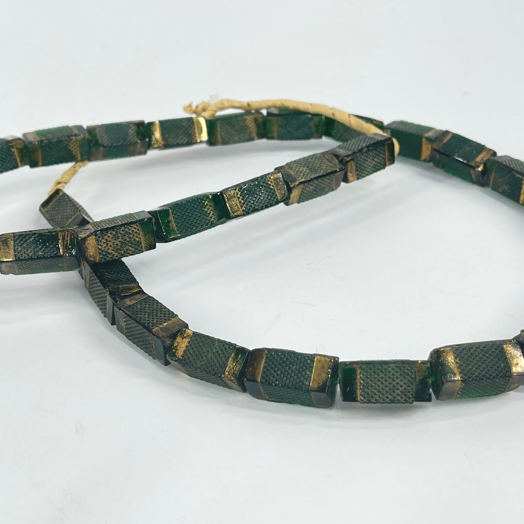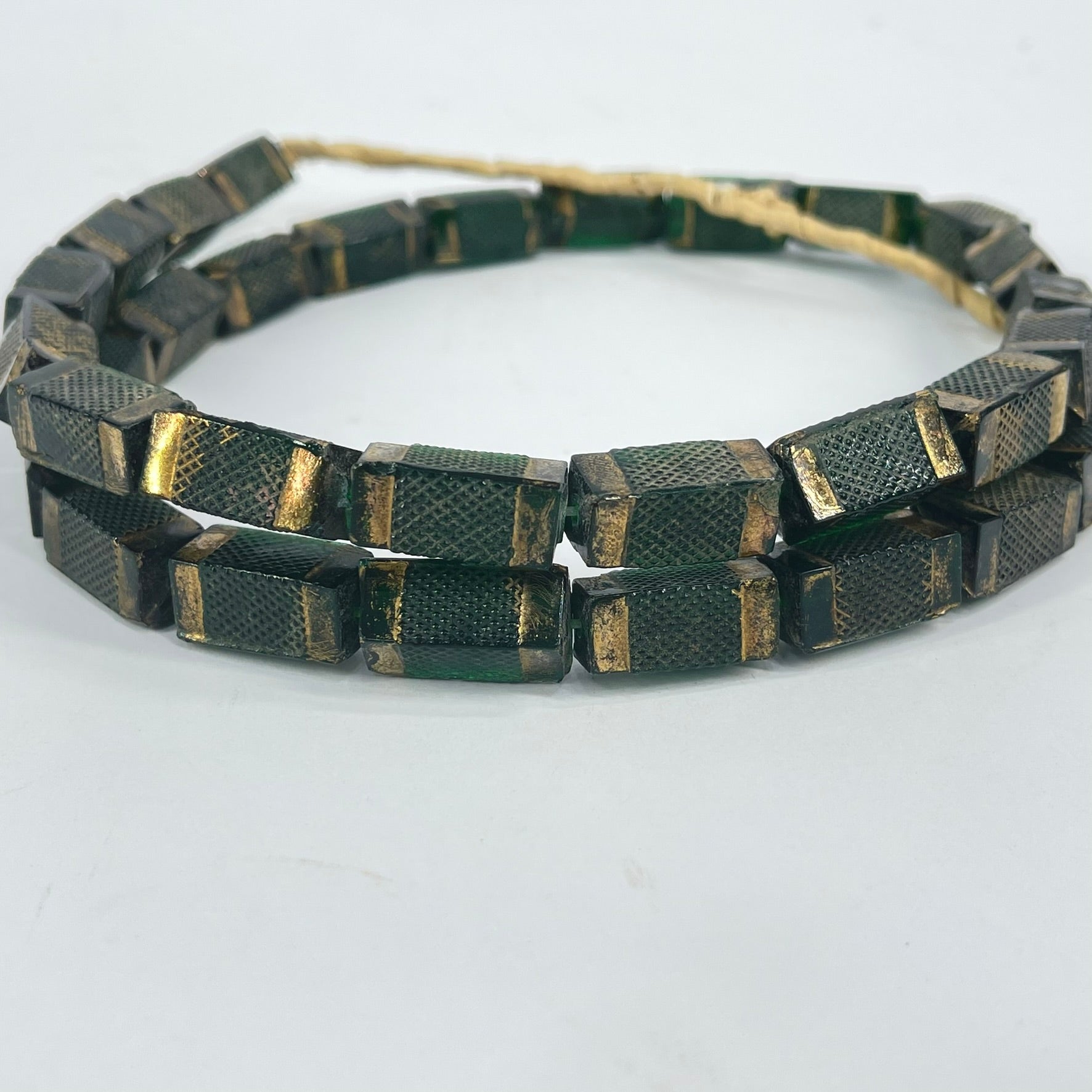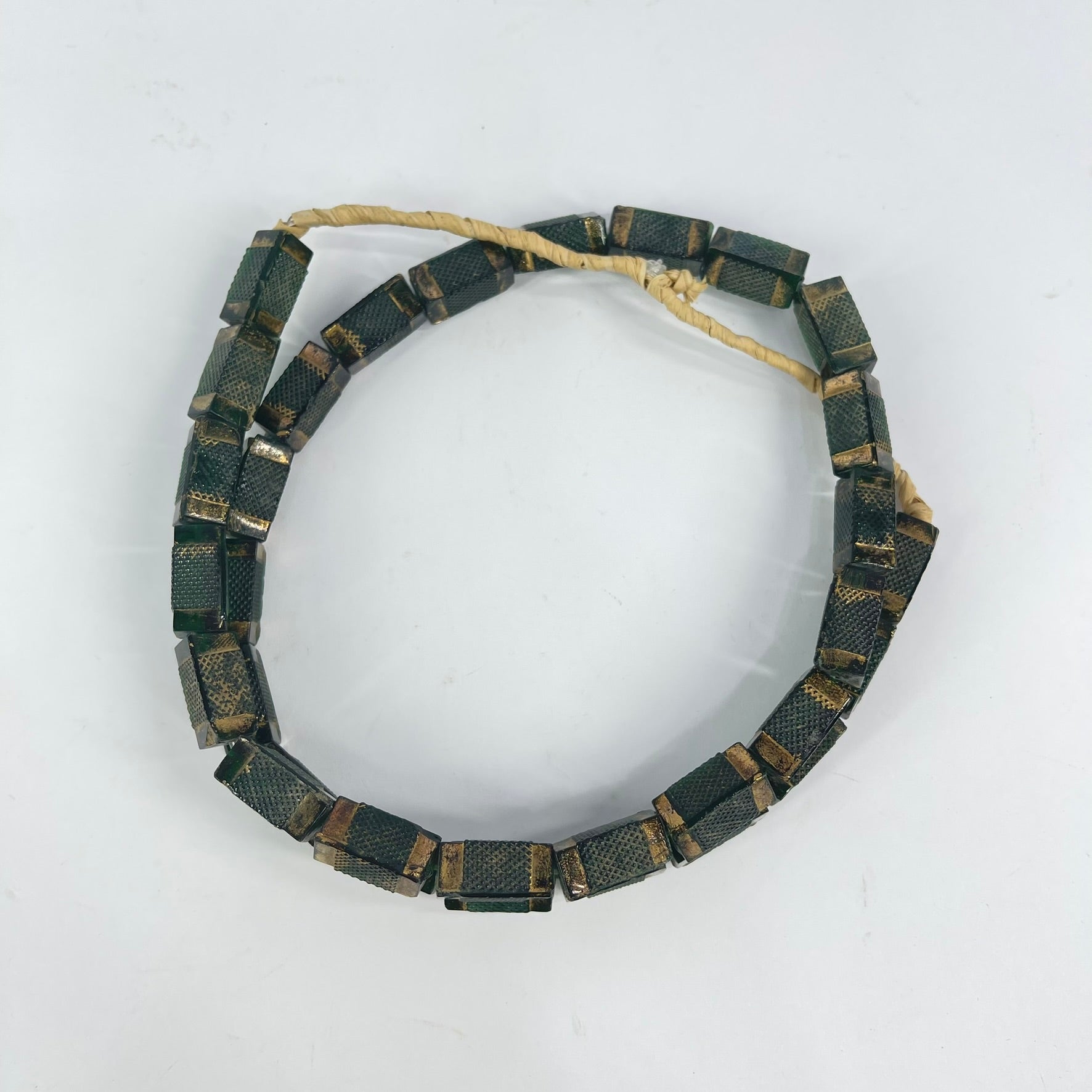 Rare Pressed Venetian Trade Beads Rare Green 30 Inch