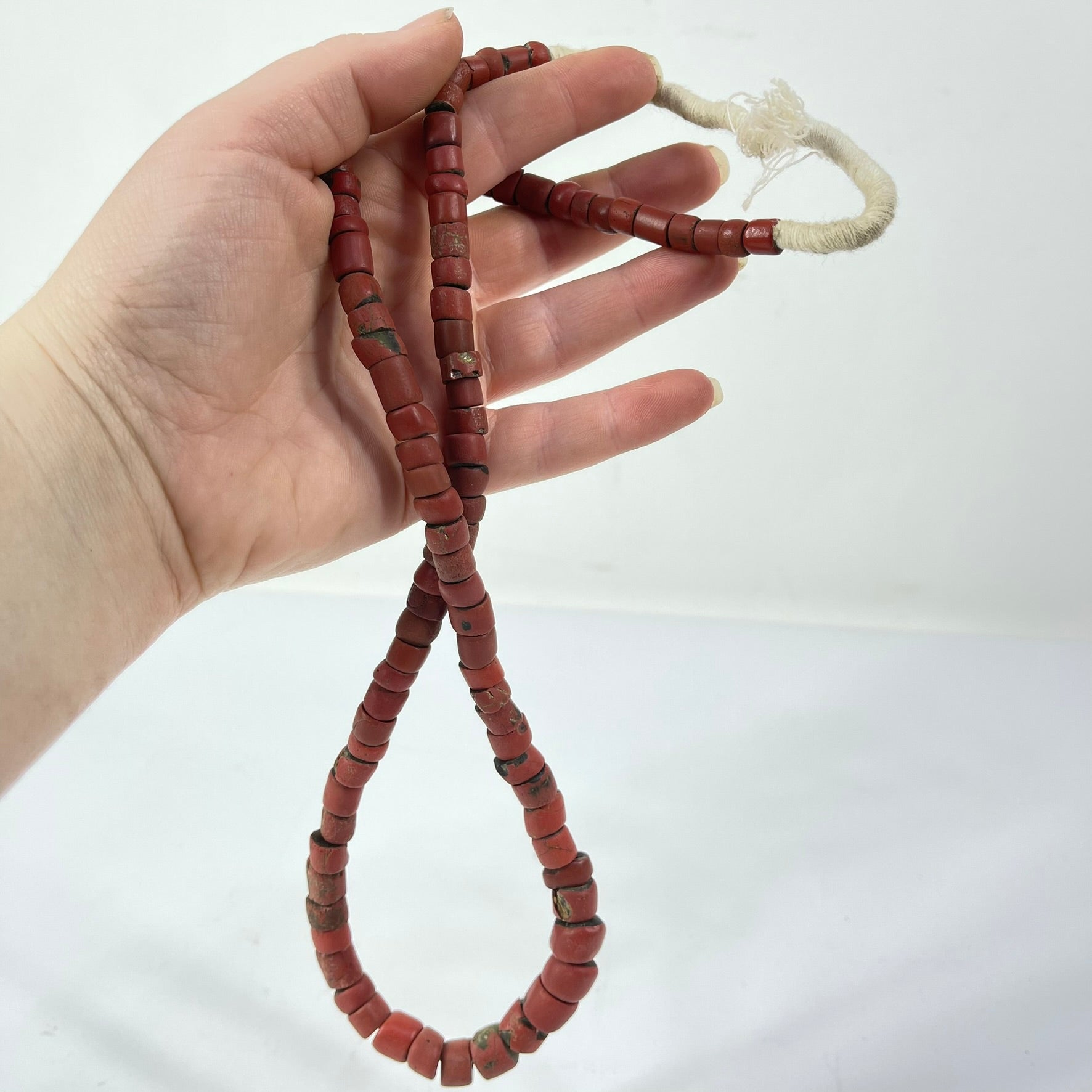 This strand is not intended to be a ready-to-wear necklace. Although the strand can be worn "as is," the raffia holding it together is not durable and may break with use. For this reason, we recommend that you restring the beads before wearing them.