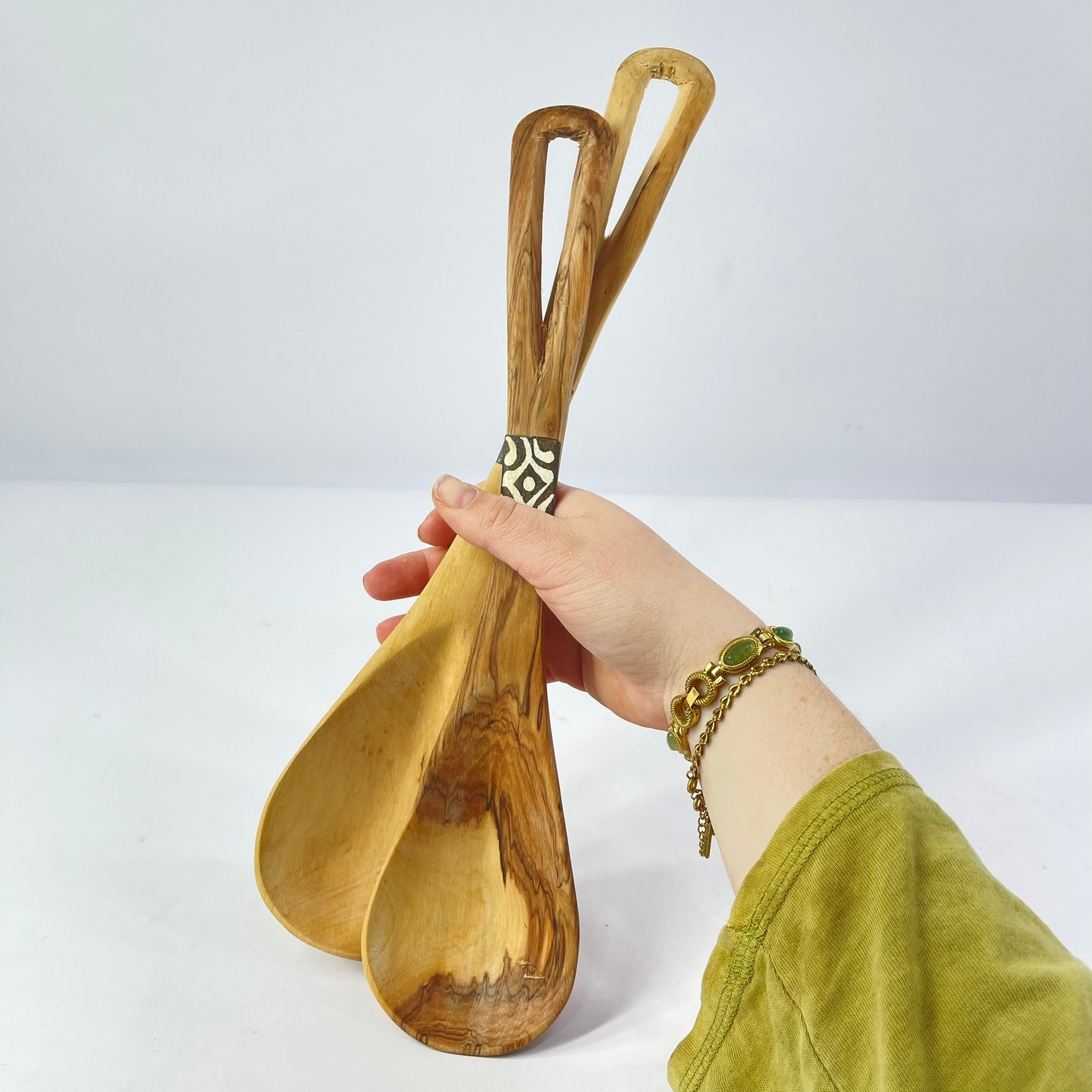 The spoons show great as dining or kitchen decorative artifacts. Also, look good when used as salad servers.