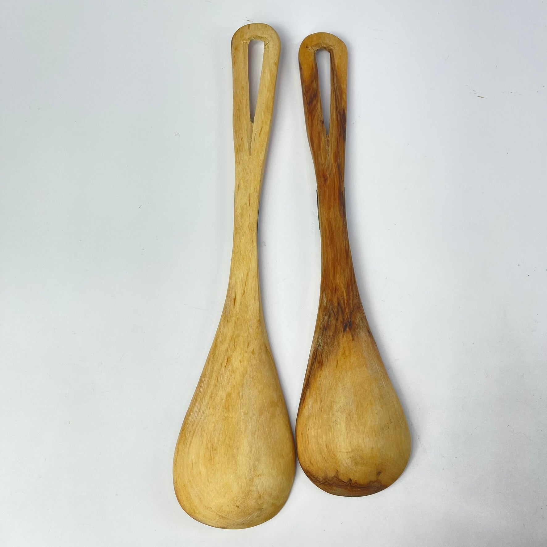A set of wood hand-carved spoons. Made throughout eastern Africa where renewable and sustainable deciduous tree resources are plentiful. The style is imaginative and unique to these east African artists. Being finely crafted by hand from natural materials, no two sets or spoons, however similar, are identical. Carved from a single piece of exotic deciduous wood they range from pale yellow through light brown and in daily use amongst the indigenous people as practiced for centuries. Being hand made some minor imperfections maybe expected. These add to the beauty and uniqueness of the product.