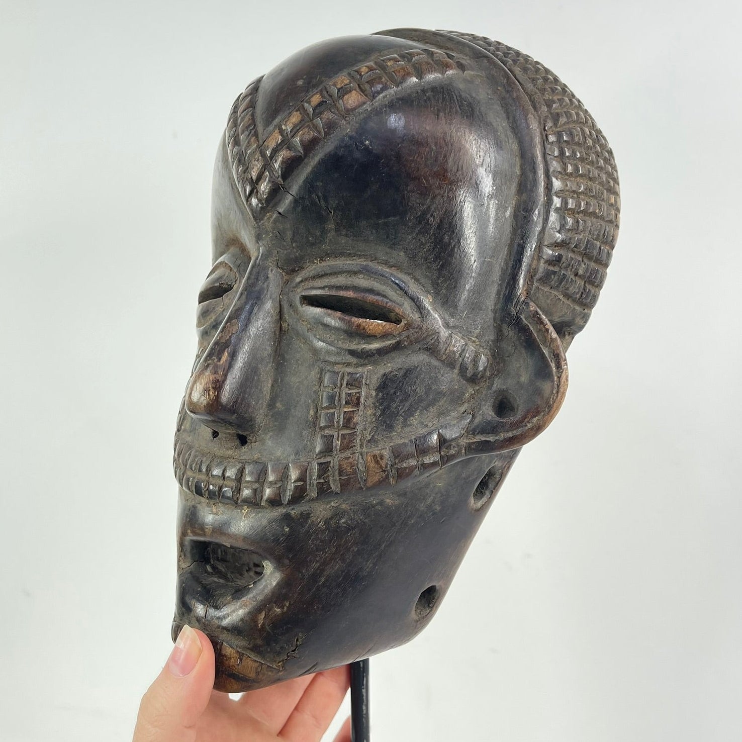 Tabwa Wood Mask with Awl Holes Congo