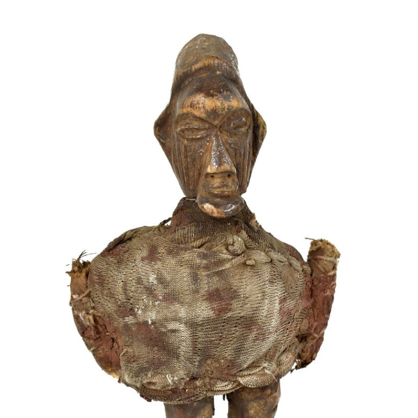 The Teke Wood Figure from Congo is a captivating expression of cultural heritage and artistic craftsmanship. Handcrafted by the Teke people, known for their intricate woodcarving skills and spiritual traditions, these figures embody both aesthetic beauty and profound cultural significance. Carved from wood sourced from the Congo Basin, each figure is meticulously crafted to depict stylized human forms adorned with symbolic motifs and intricate detailing. Often representing ancestral spirits, protective deities, or revered ancestors, these figures serve as powerful conduits for spiritual communication and connection within Teke society. Whether displayed as cultural artifacts, revered as sacred objects, or admired for their artistic intricacy, Teke Wood Figures offer a compelling glimpse into the rich cultural heritage and spiritual traditions of the Congo's Teke people.