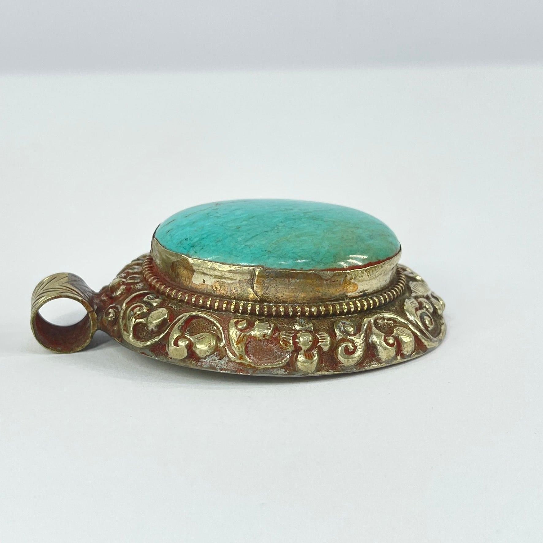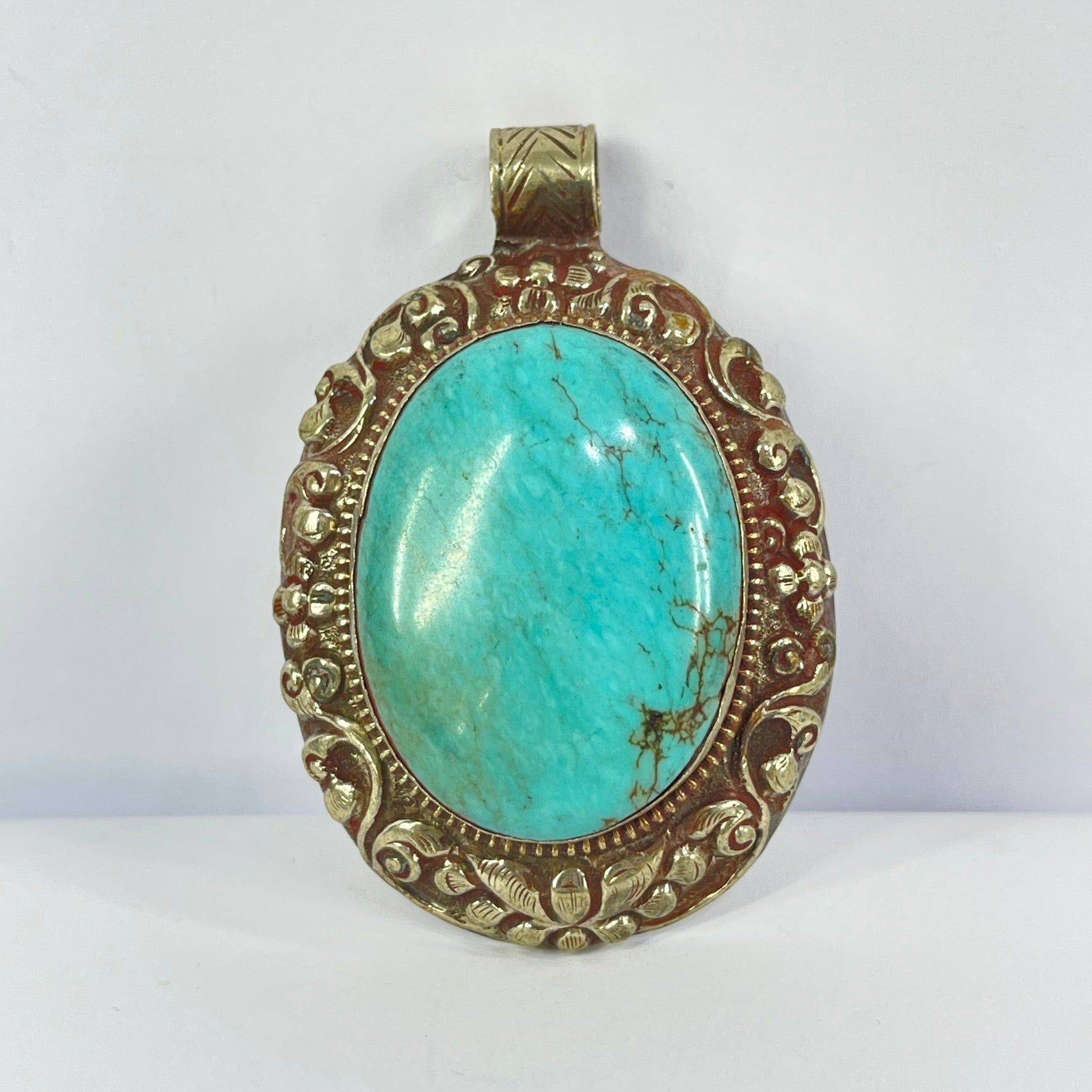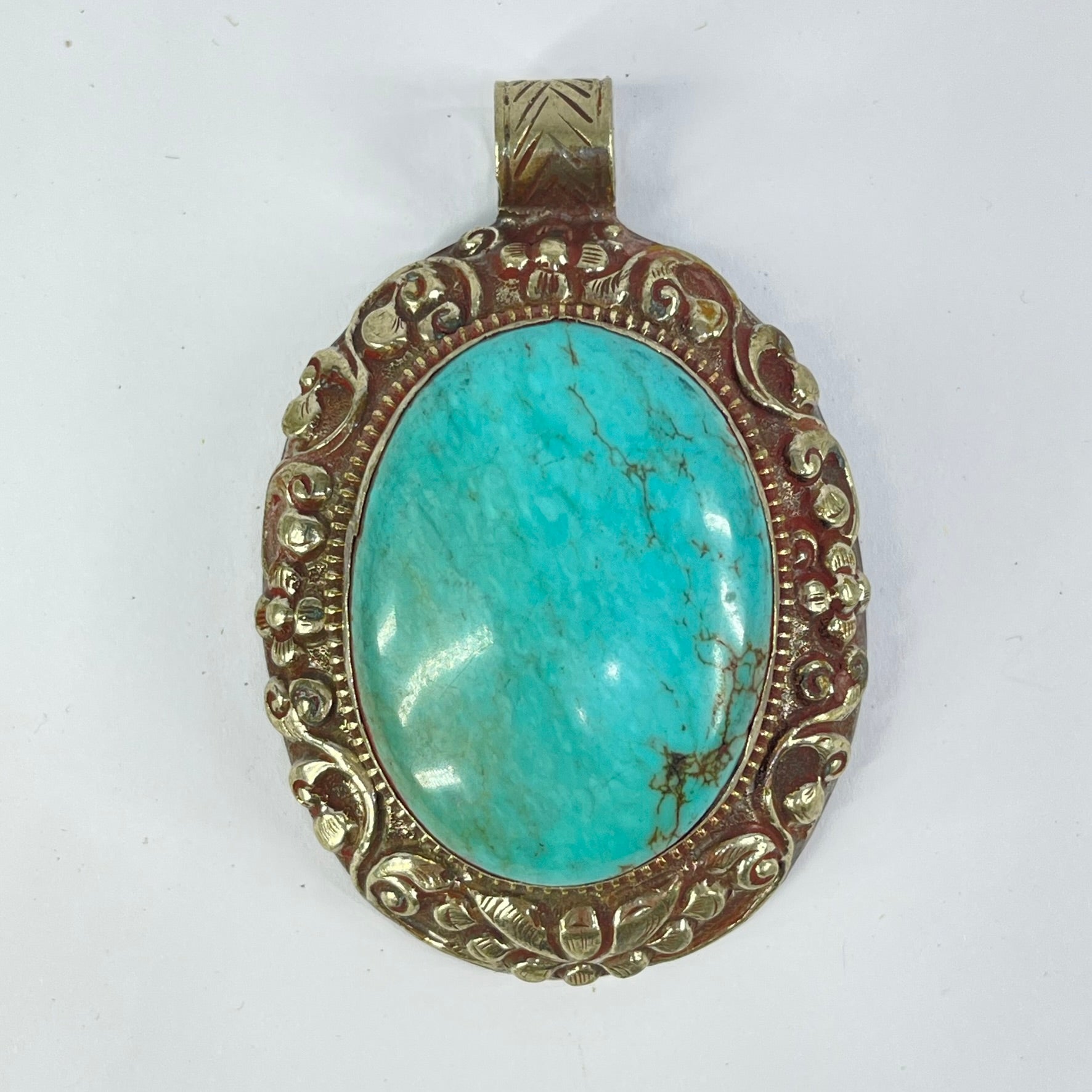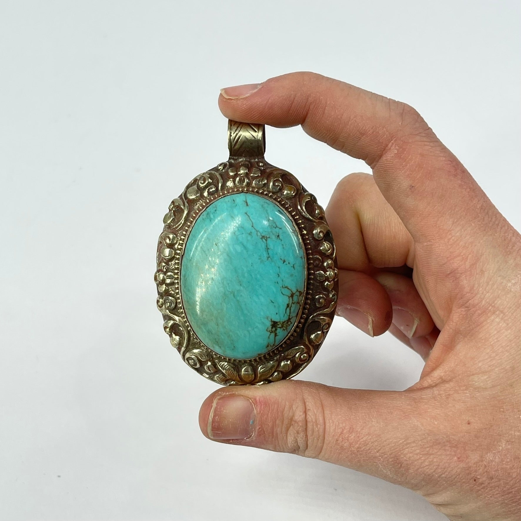 Tibetan Turquiose Pendant Silver Repoussé