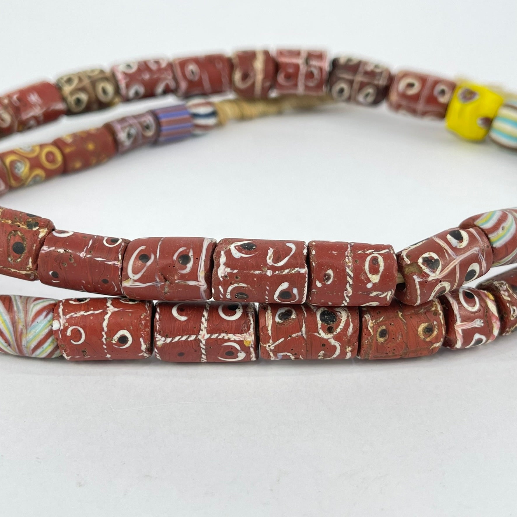 Tic Tac Toe Venetian Brick Red Trade Beads 34inch