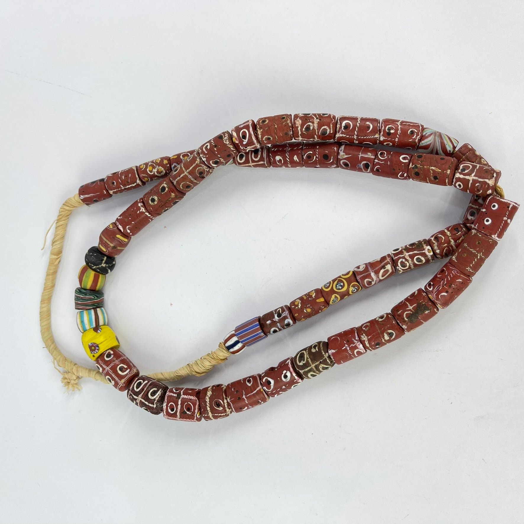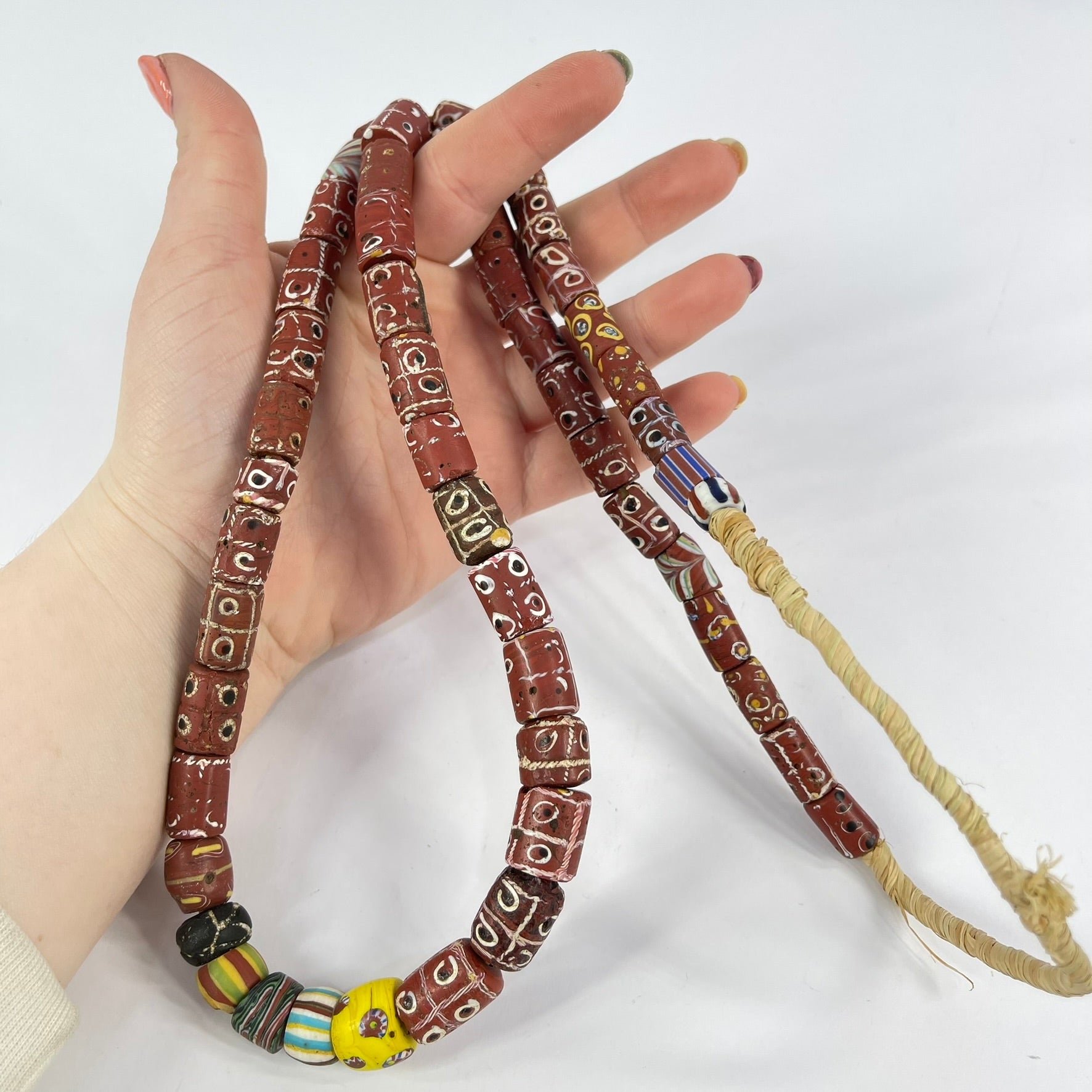 This strand is not intended to be a ready-to-wear necklace. Although the strand can be worn "as is," the raffia holding it together is not durable and may break with use. For this reason, we recommend that you restring the beads before wearing them.