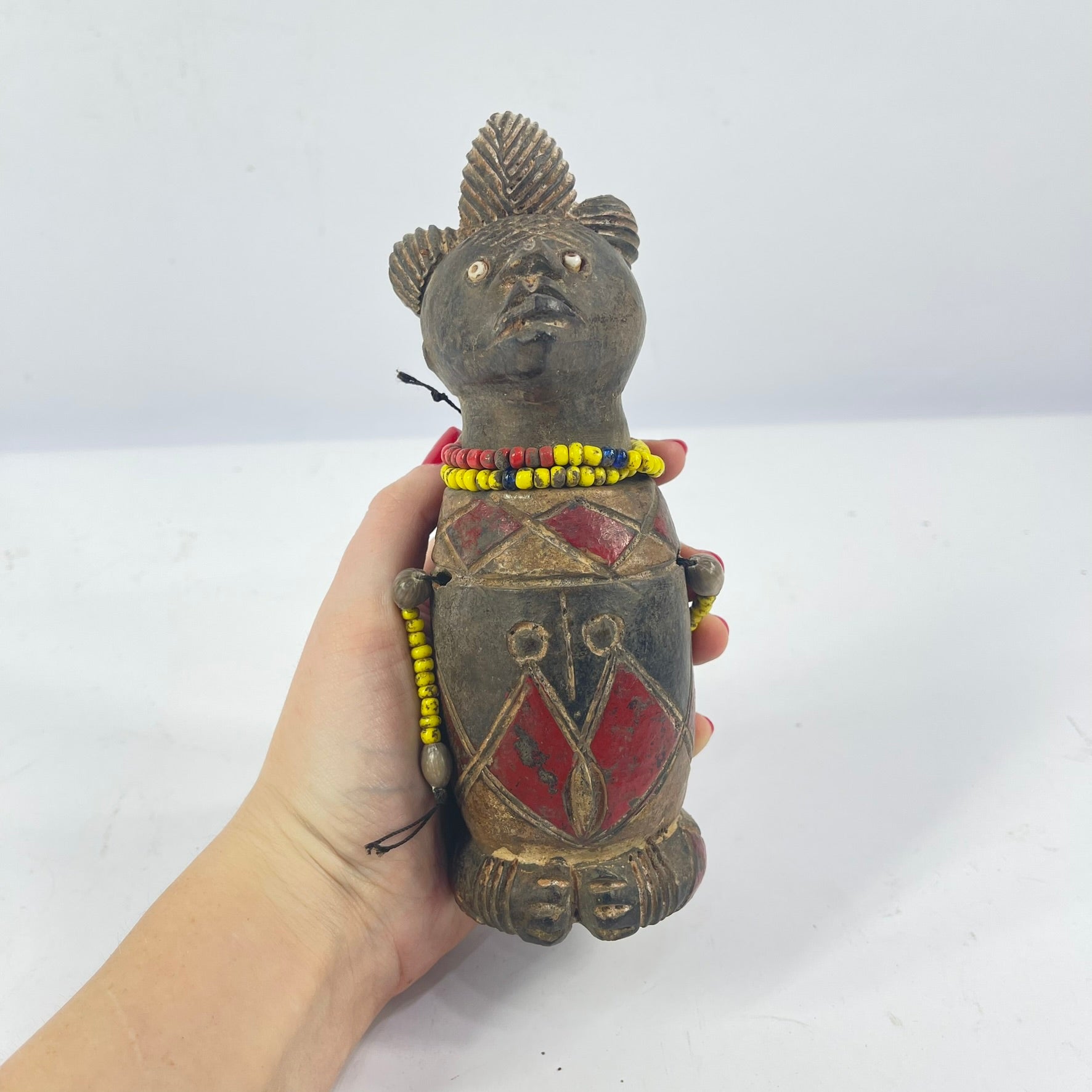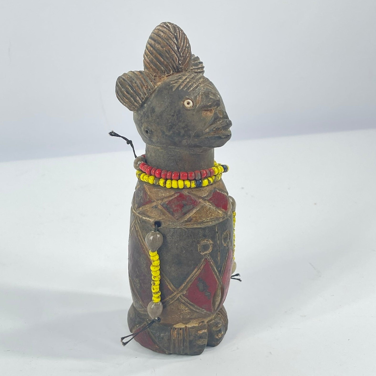 Material: clay, pigment, glass beads