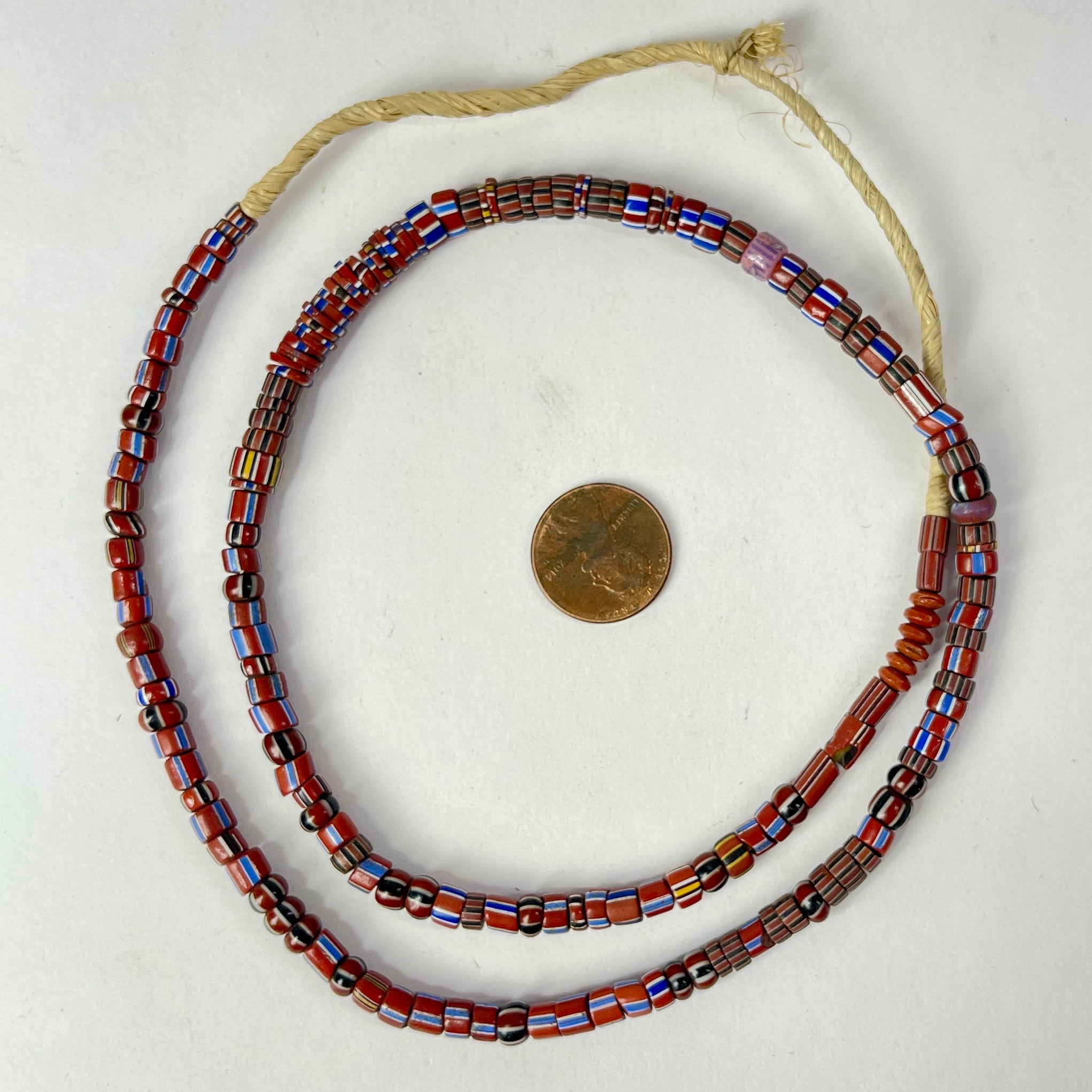 A 25-inch strand of mixed Venetian trade beads is a fascinating collection of diverse colors, shapes, and patterns, each bead telling a unique story of craftsmanship and trade. Crafted in Venice, Italy, these beads showcase the mastery of Venetian glass artisans, who skillfully combined vibrant hues and intricate designs to create stunning works of art. From bold stripes to delicate millefiori patterns, each bead reflects the cultural exchanges and global trade networks that shaped the world's history. These beads were not only prized for their beauty but also served as valuable commodities, exchanged across continents and cultures. A strand of mixed Venetian trade beads is not just a piece of jewelry; it's a tangible link to the rich tapestry of human interaction and creativity that spans centuries.
