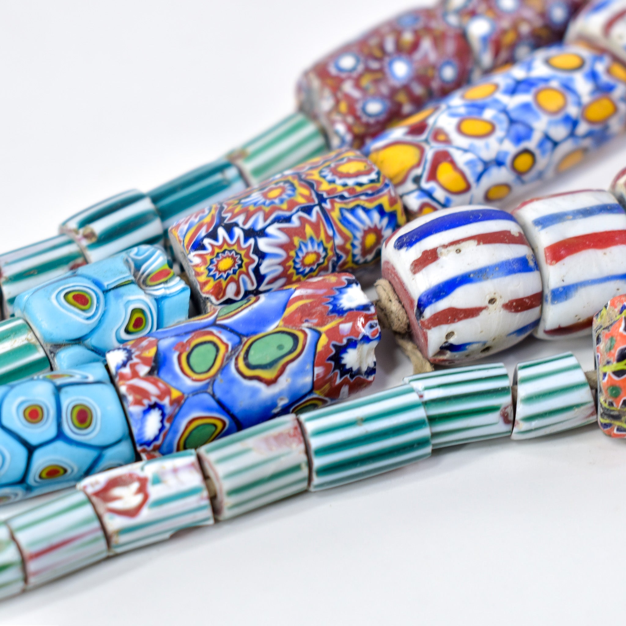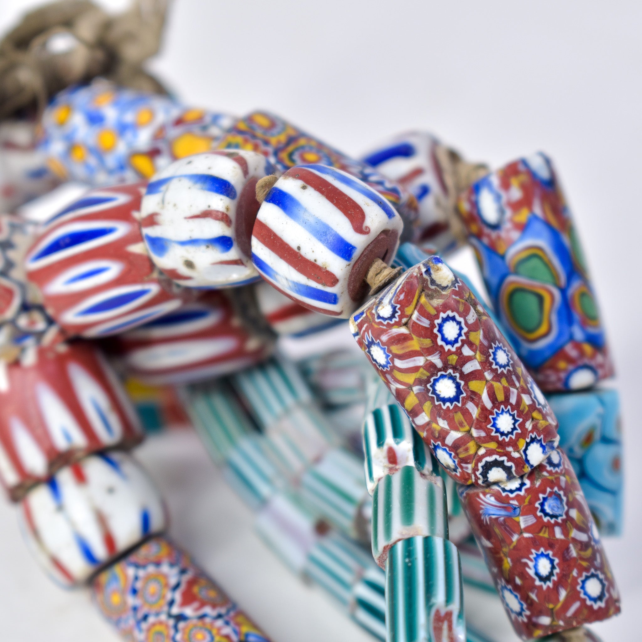 Trade beads, often made of glass, were crucial in historical trade between Europe, Africa, Asia, and the Americas. They were more than just decorative items; they served as currency, symbols of status, and carriers of cultural stories. Produced mainly in Europe, these beads gained immense popularity in Africa, where they were exchanged for valuable resources. Today, these beads are cherished by collectors and artists alike for their beauty, historical significance, and the stories they tell about global trade and cultural exchange.