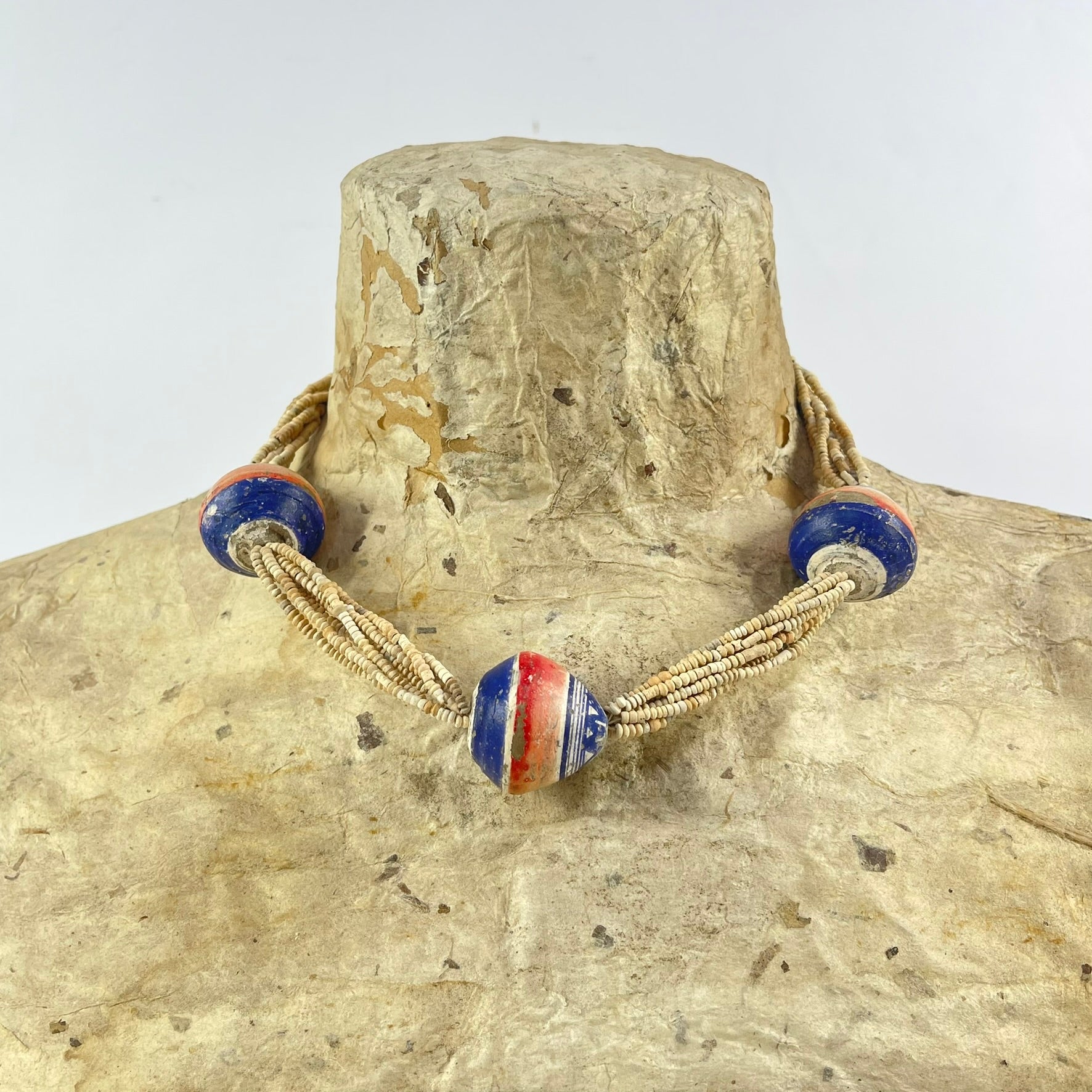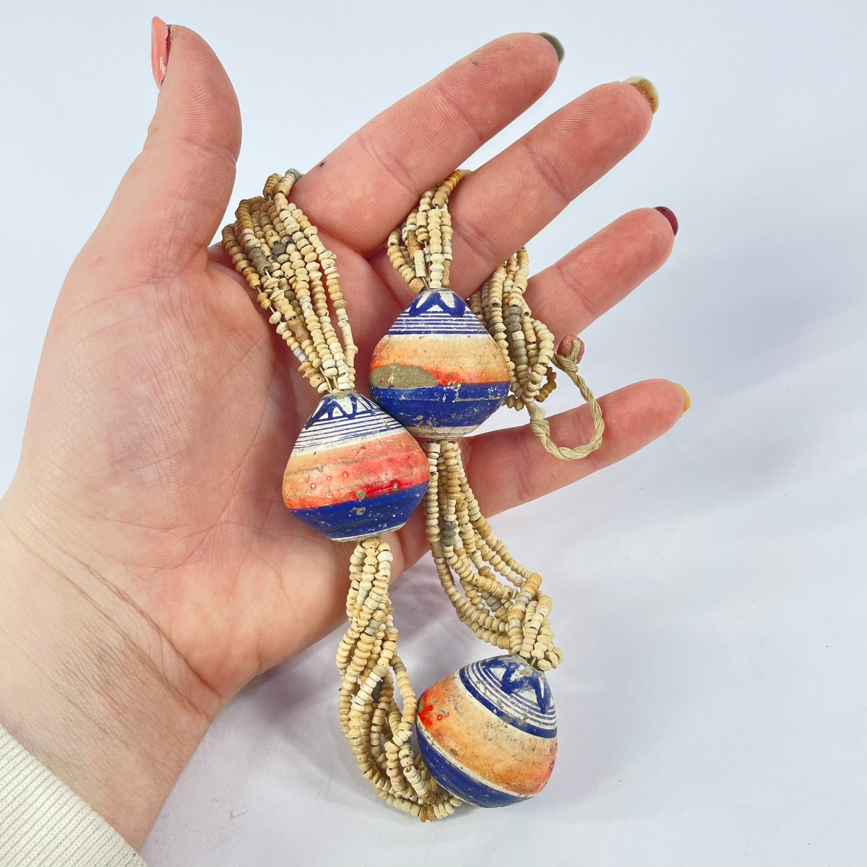 Beautiful and unique mix of old terracotta beads with hand-painted clay beads, found in Mali, Africa.