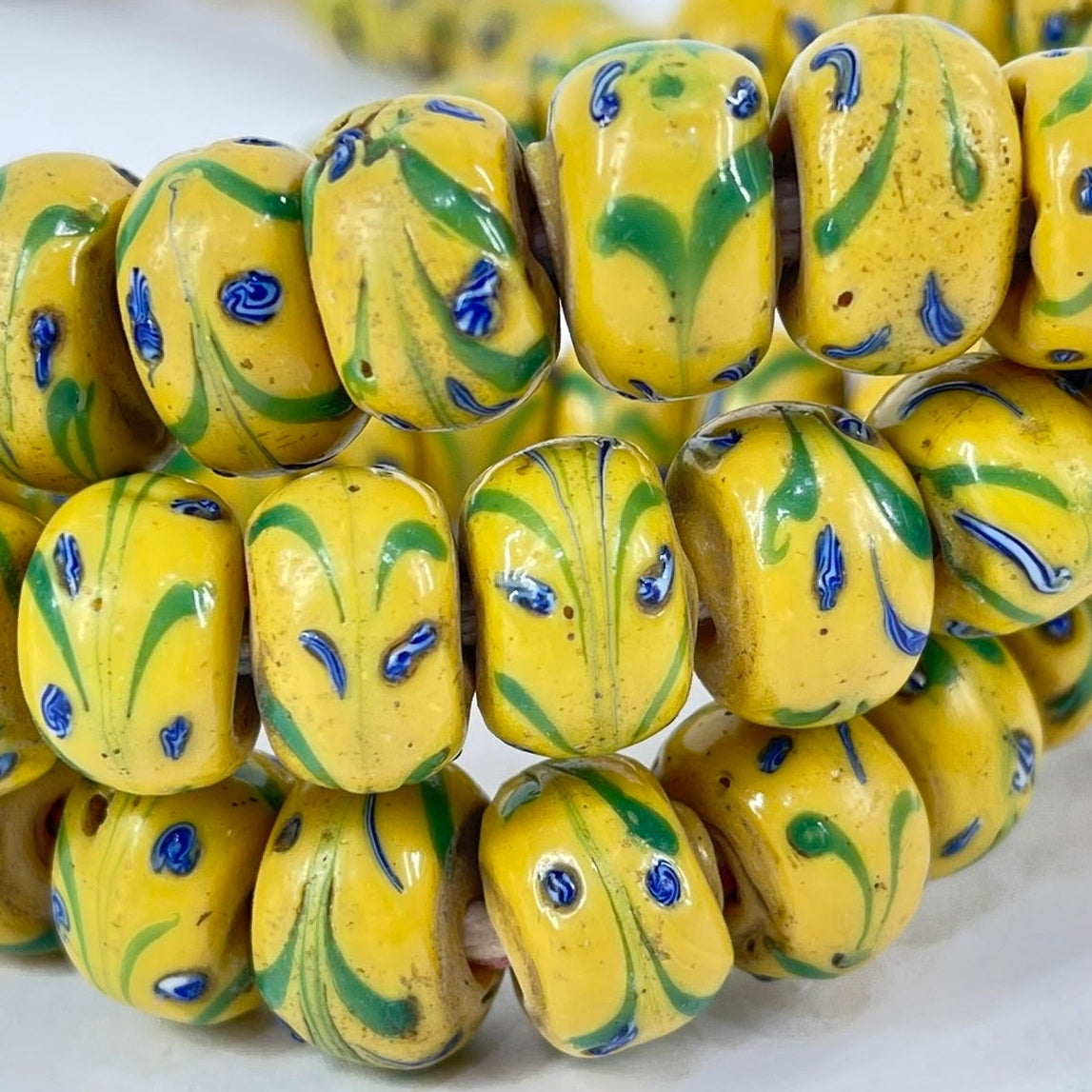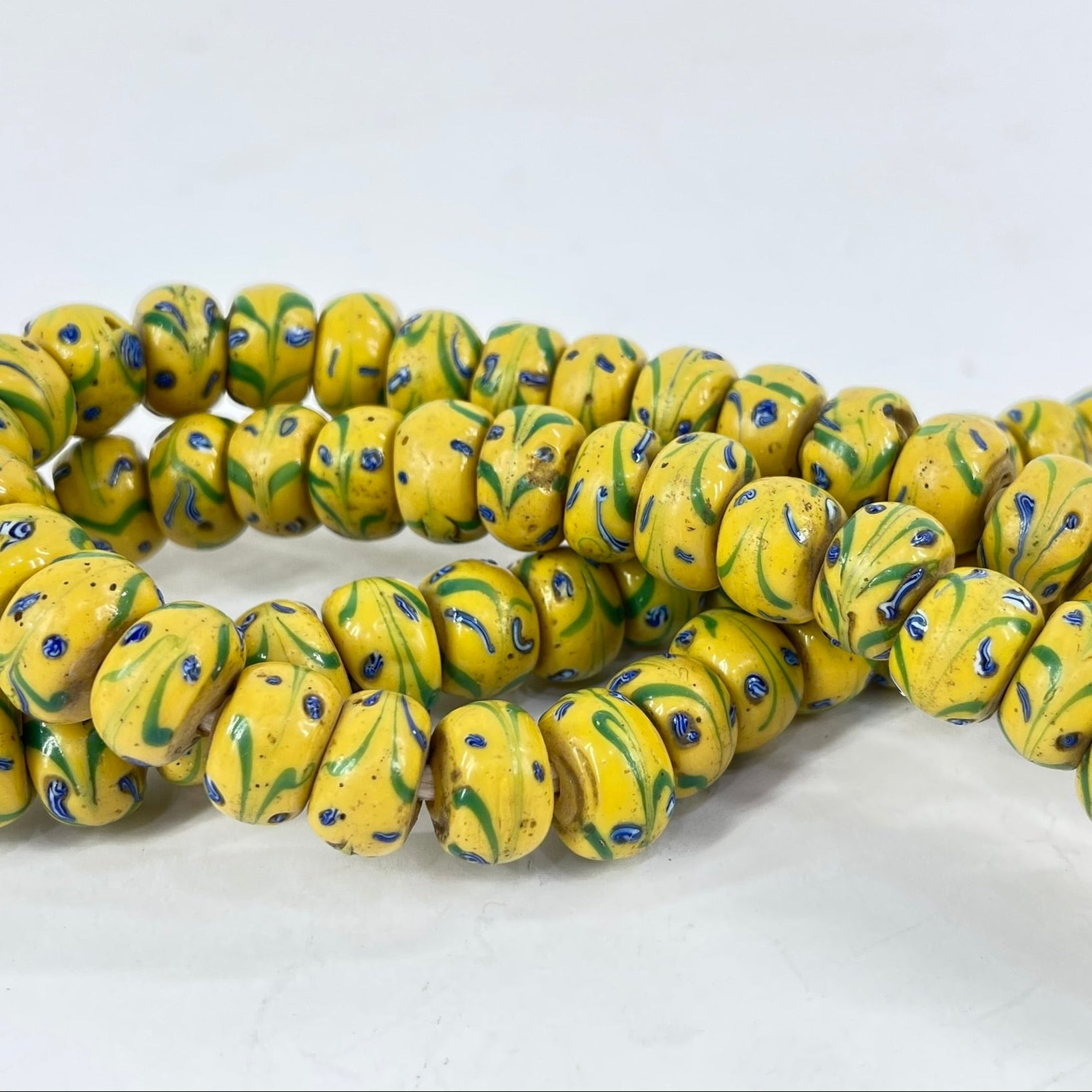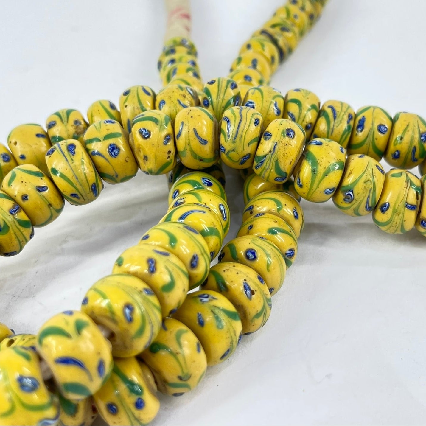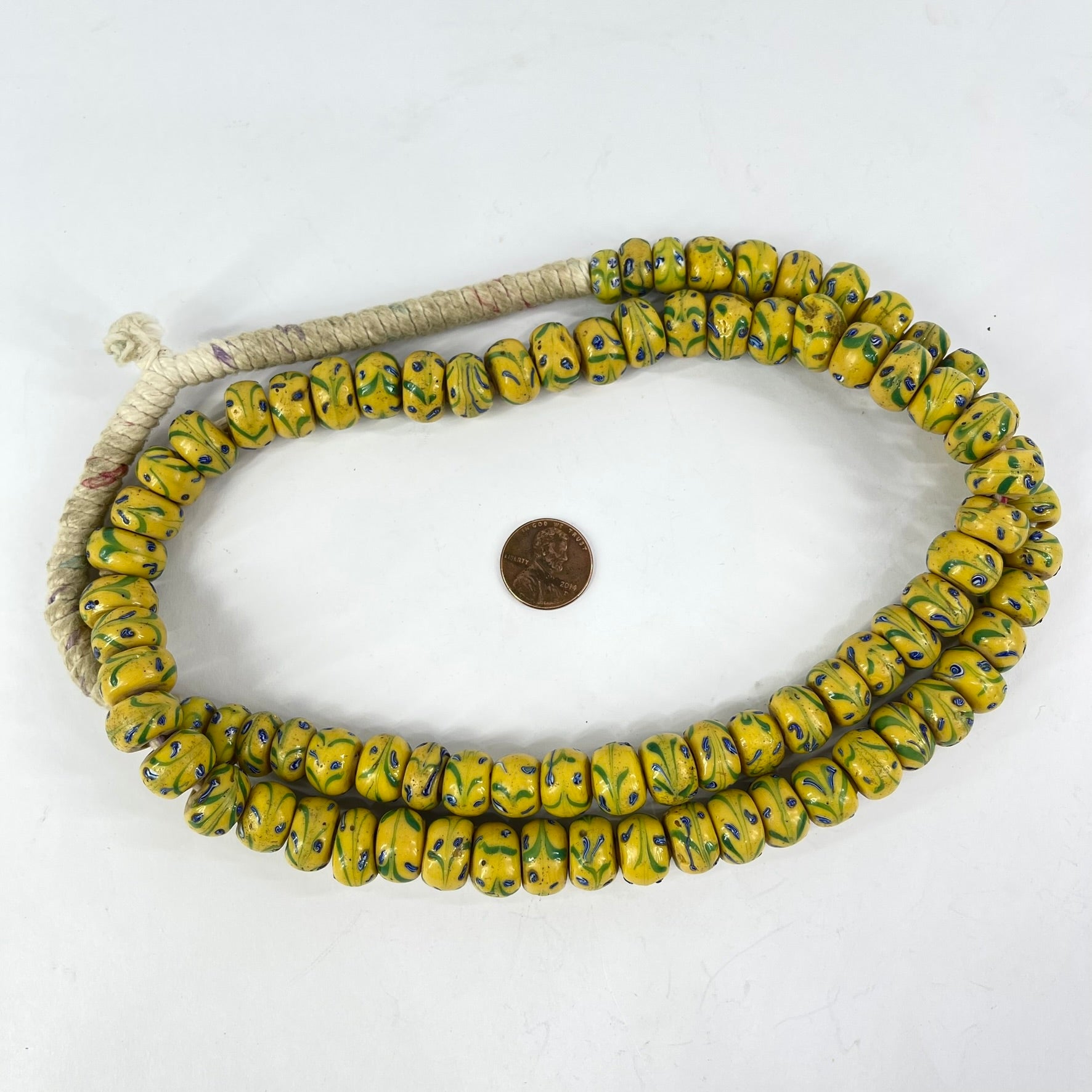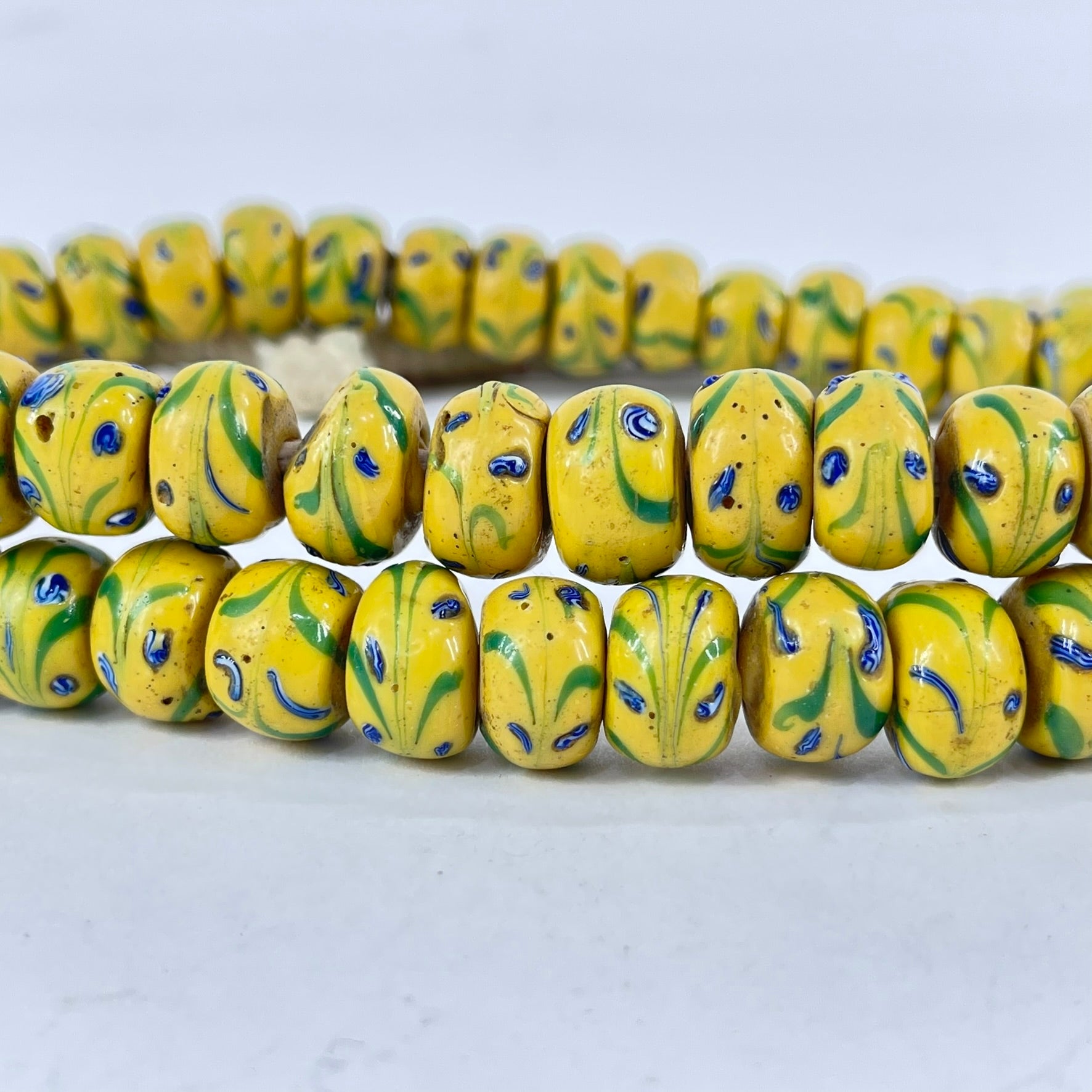 Venetian Floral Disks Yellow Trade Beads 34 Inch