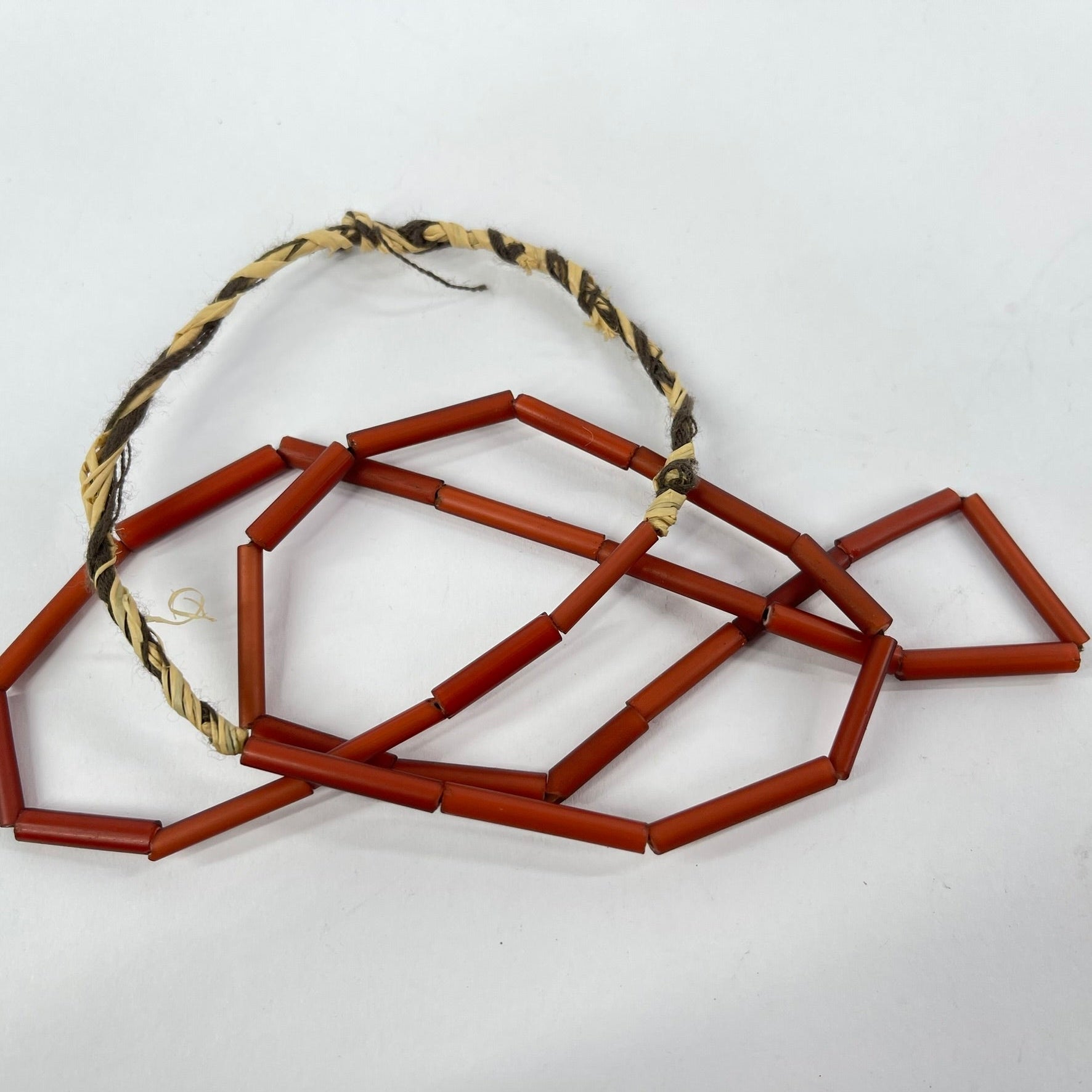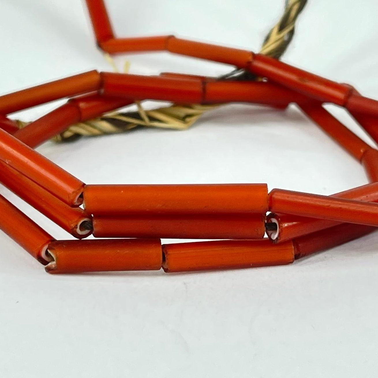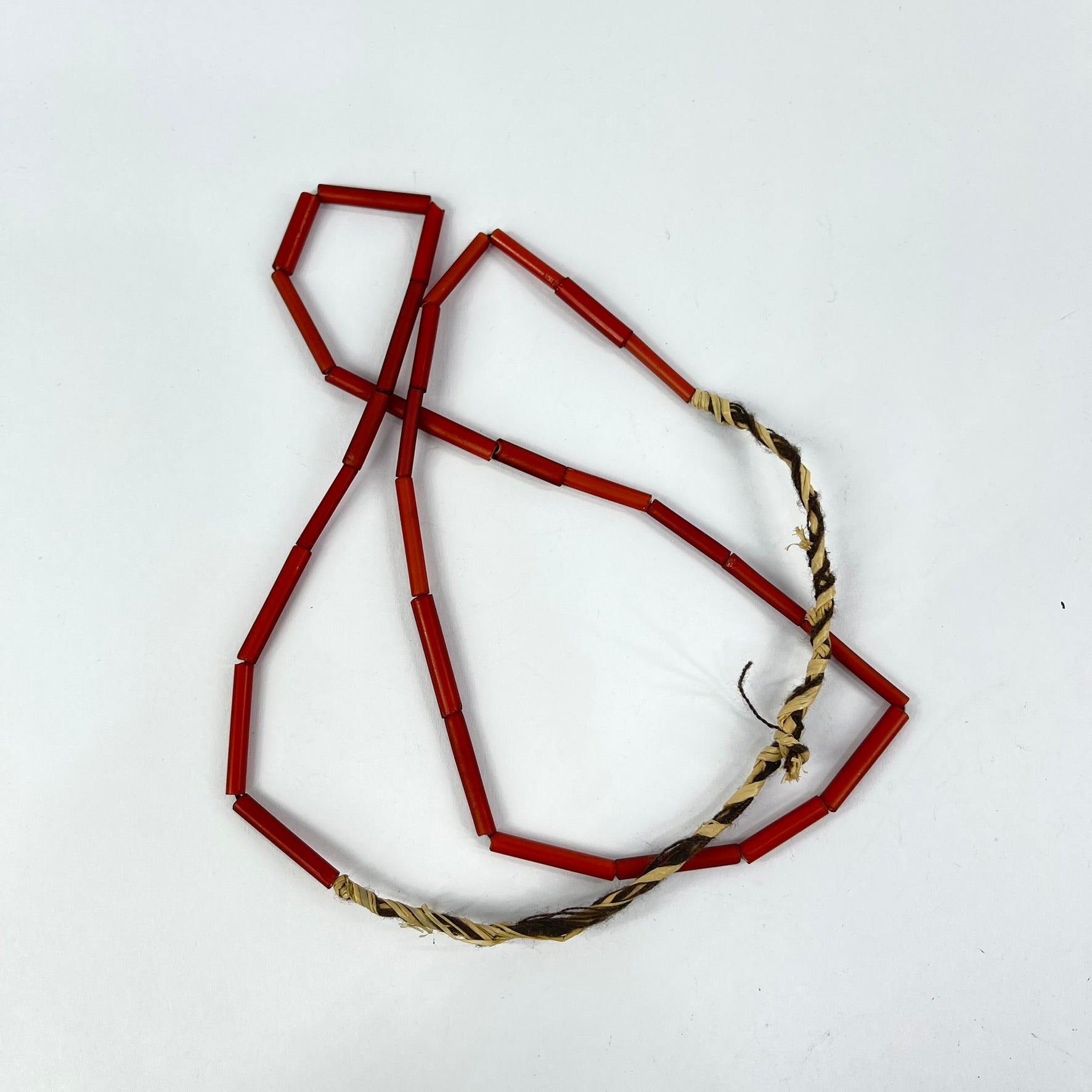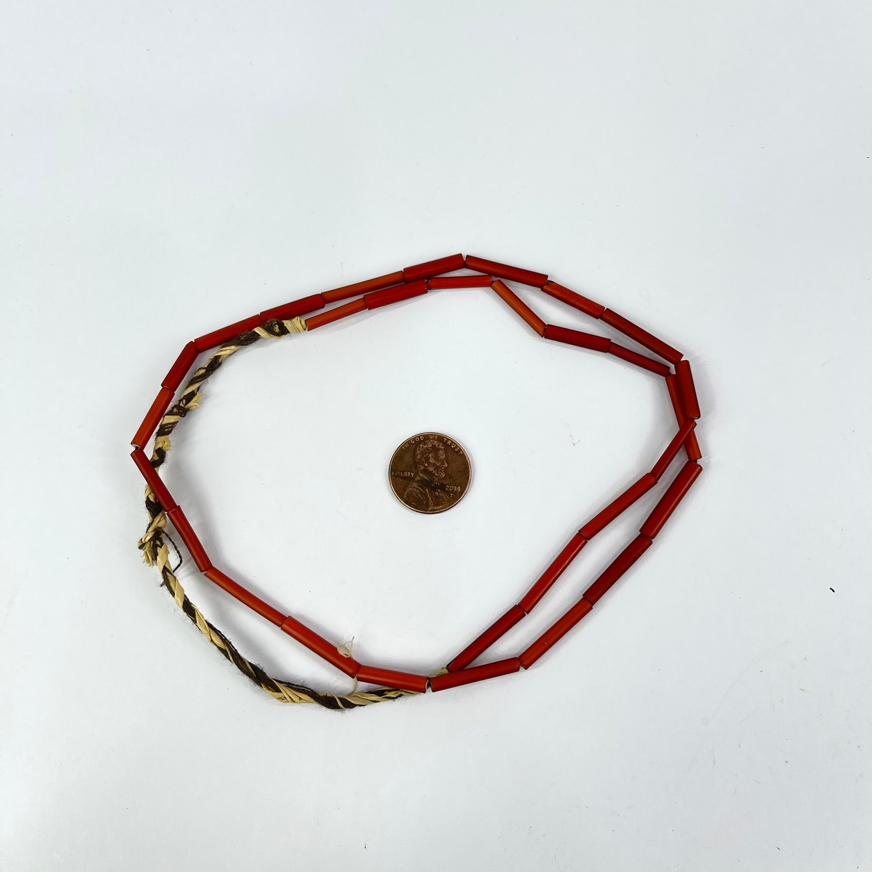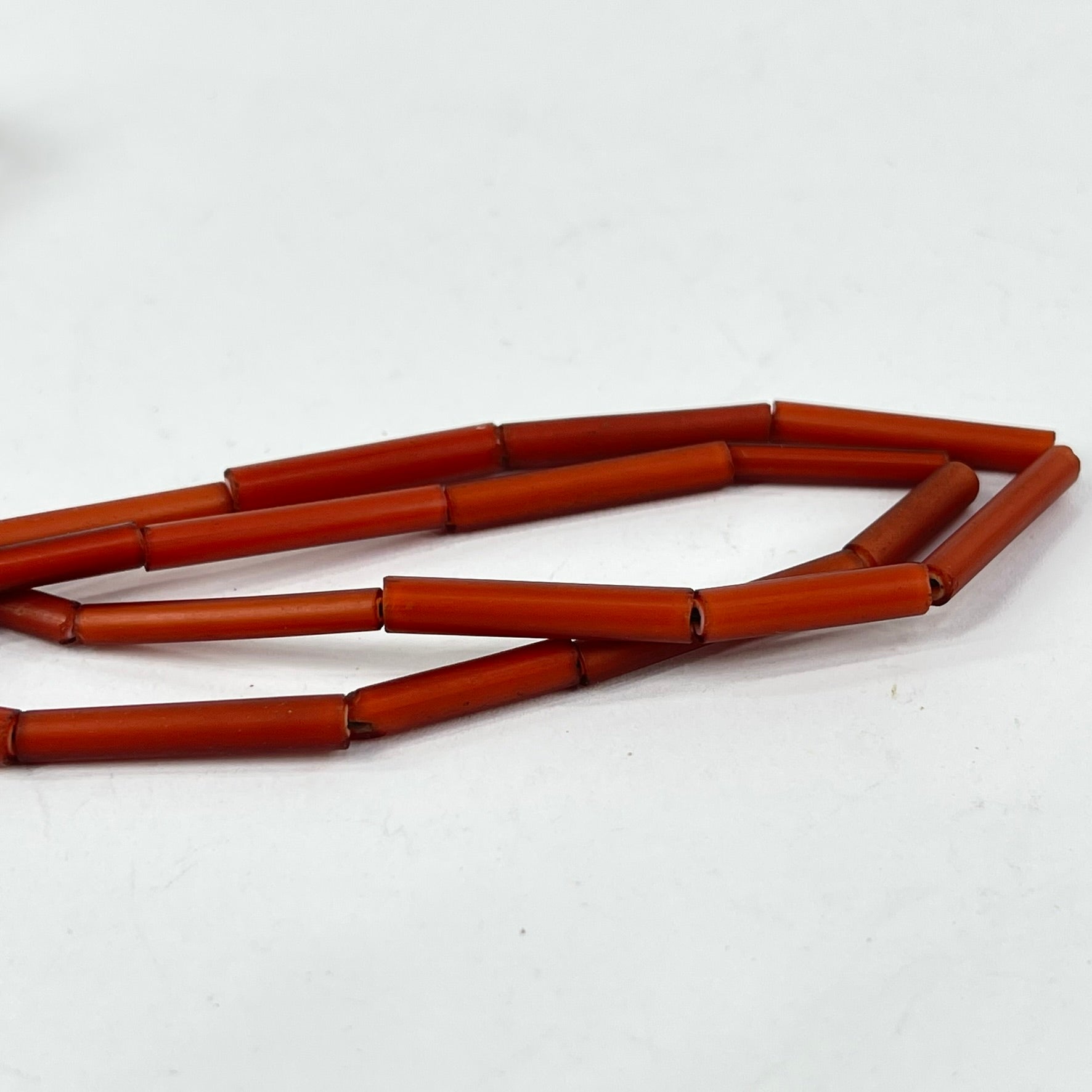 Venetian Red White Hearts Tubular Trade Beads