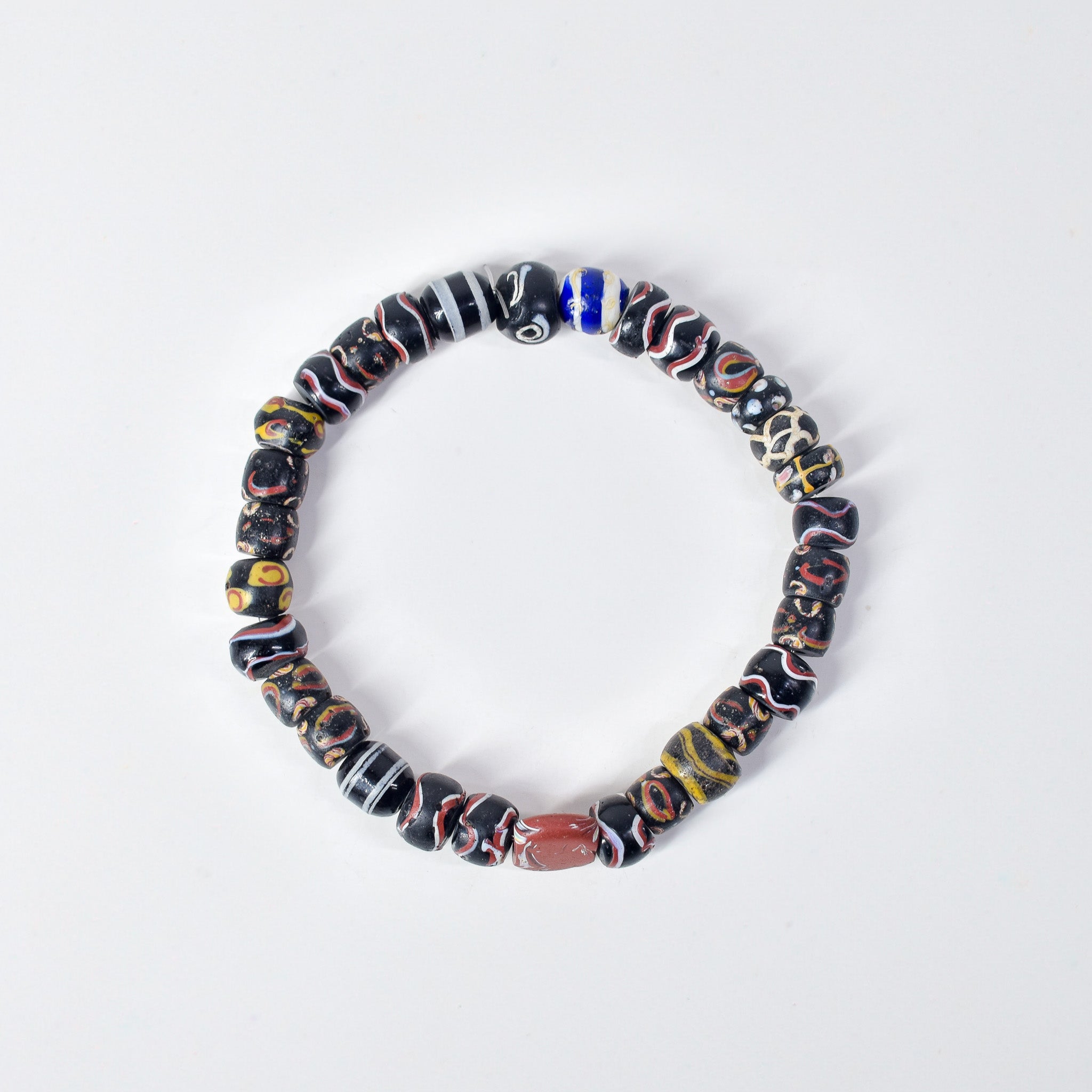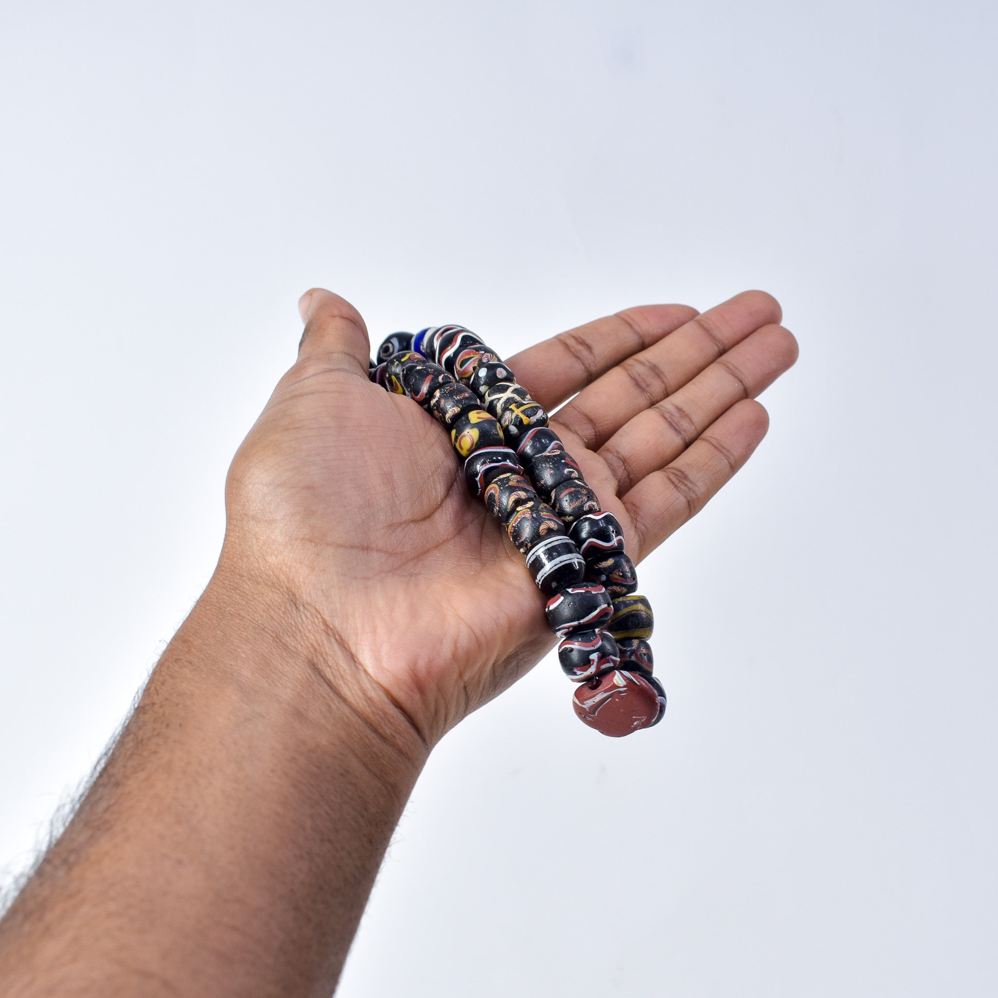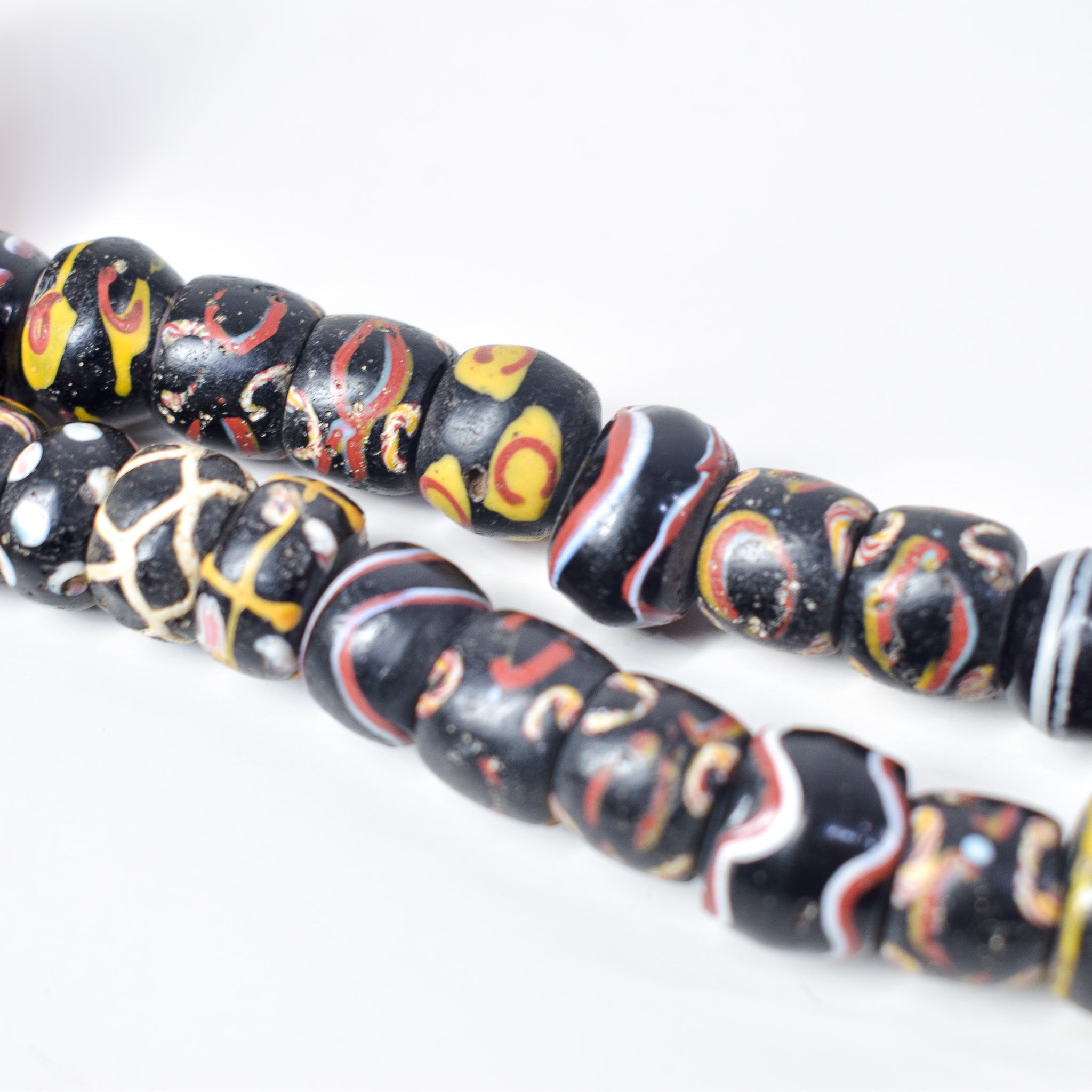 Fun mix of black, burgandy and white Venetian trade beads. Comes with all beads pictured. Strung to keep them together.