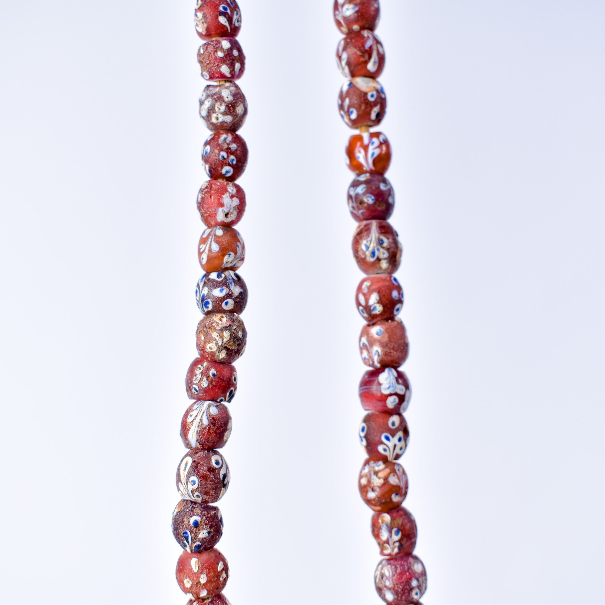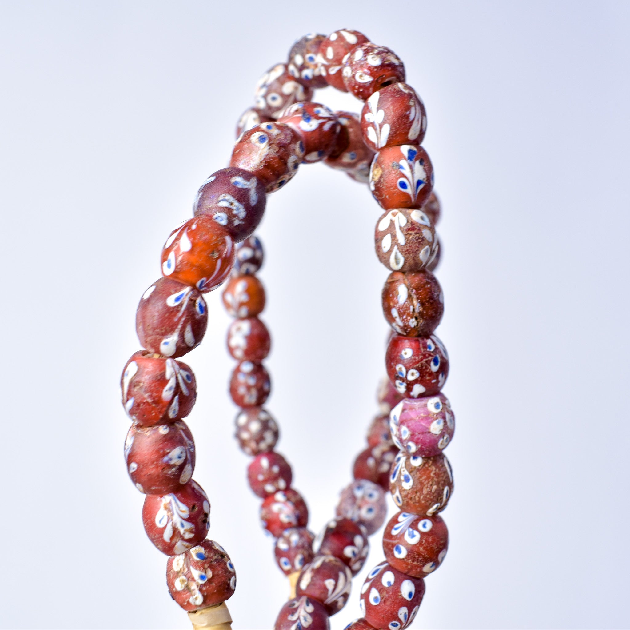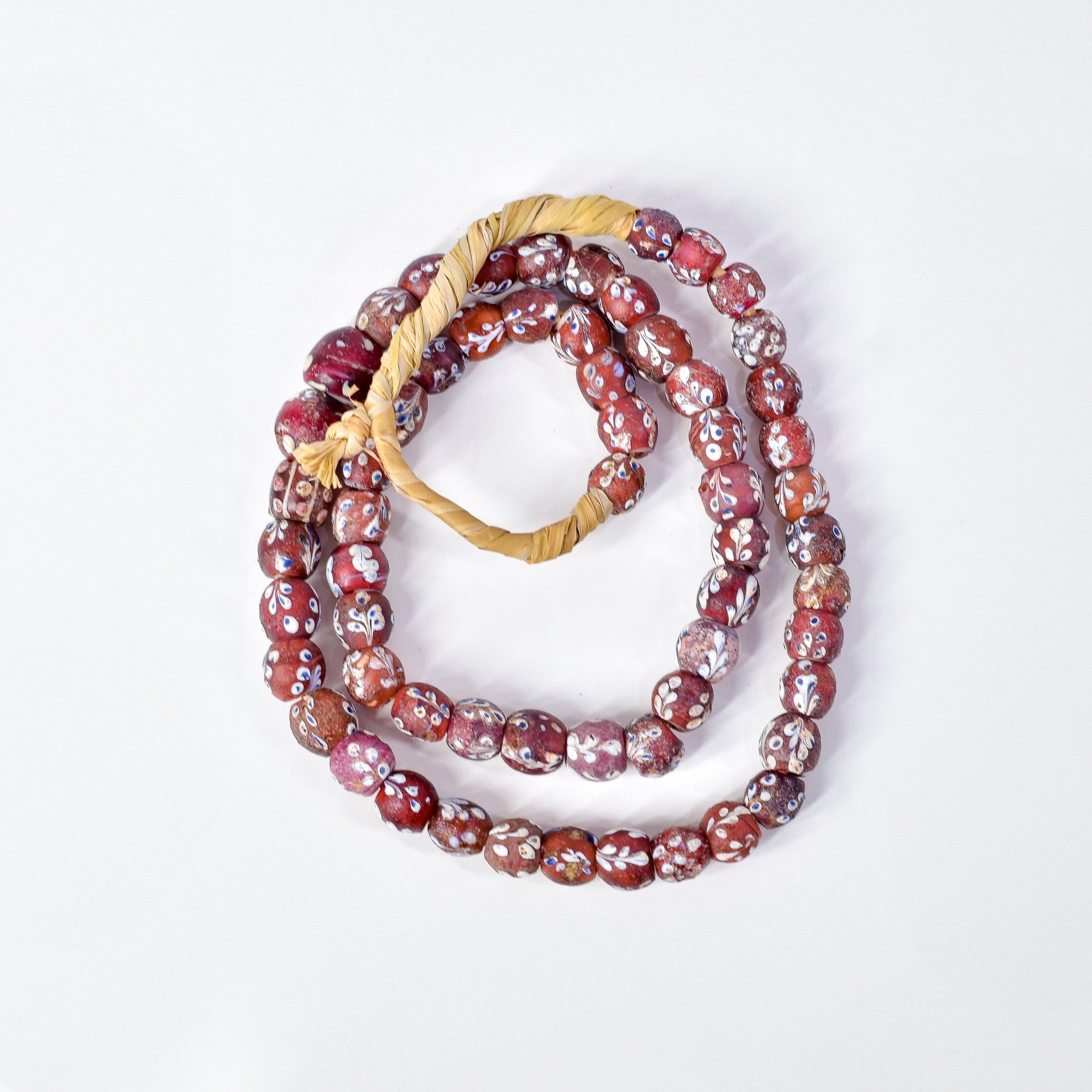 Venetian Whiteheart Floral Dot Red Trade Beads