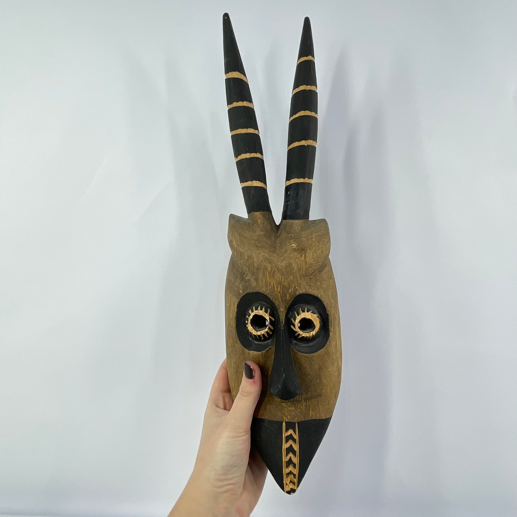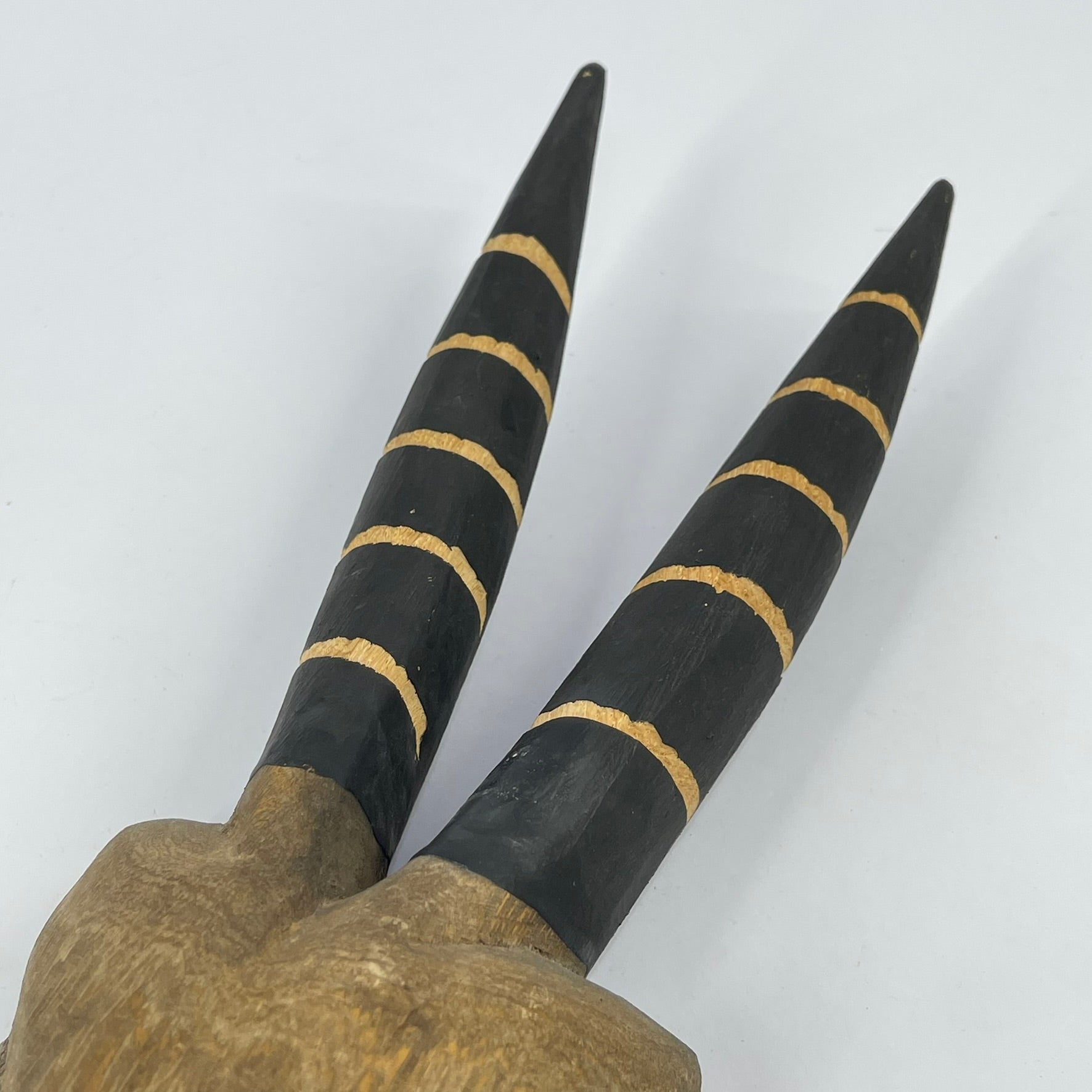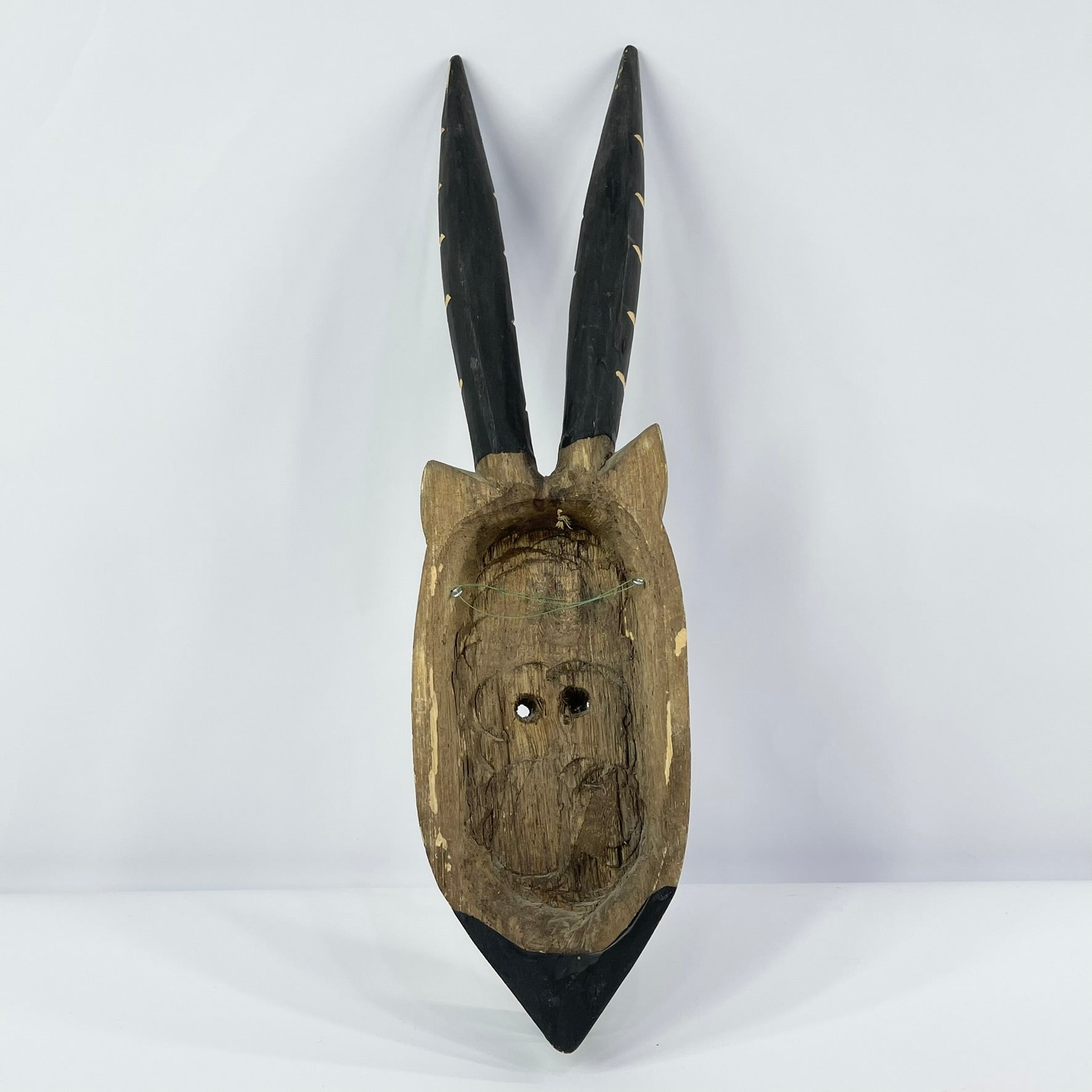 A carved wooden Wilu (Walu) antelope mask, inspired by ceremonial masks of the Dogon people of Mali.