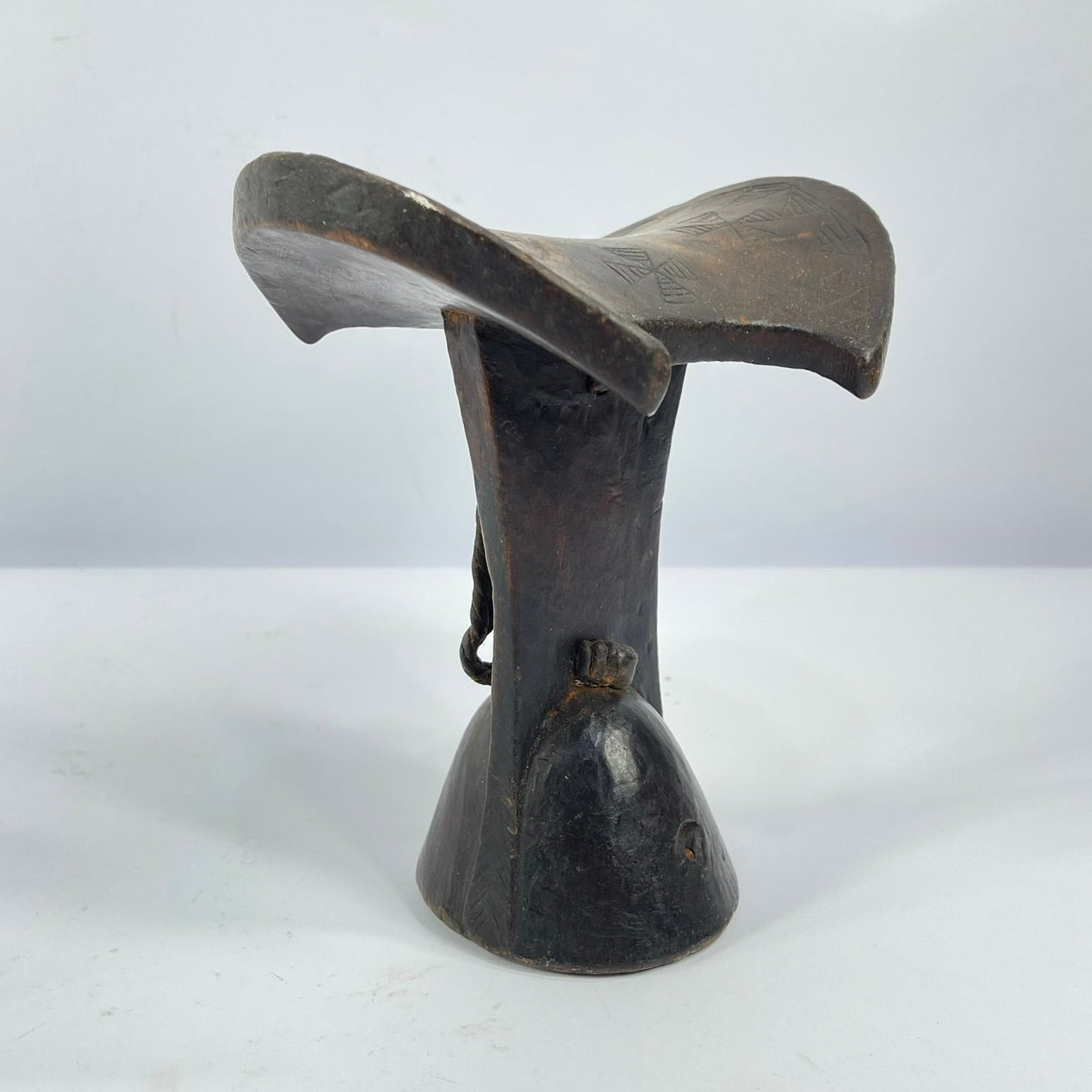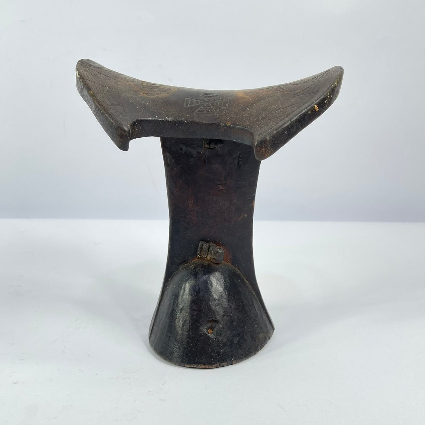 Ethiopian headrests come in various forms. They range from simple to elaborately carved artifacts. They have abstract shapes, nice lines, and are sometimes decorated with sophisticated geometric patterns. Their styles are similar to those found among the other nomadic people of Uganda and Kenya, particularly among the Dinka, Maasai, Karamajong, Rendille, Turkana, and Pokot. Ethiopian headrests mostly come from people such as the Somali, Gurage, Kambatta, Sidamo, Oromo, and Arussi. Among these people, headrests and stools play a vital role among men. These objects are carefully carved and carried by men everywhere they go. Headrests are used as pillows to help someone have good sleep. They are also used as a comfort to help protect the ceremonial coiffure. On some occasions, headrests are used as a stool. As a personal object, the headrest has become part of the individual. Usually, when a person dies, he is buried with his headrest. Sometimes the headrest is passed on to his heir, who would treat it with respect because this wooden piece embodies the deceased person's spirit.
