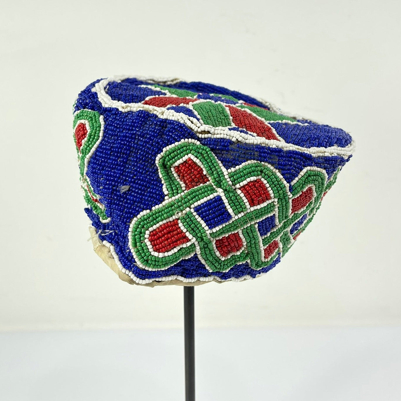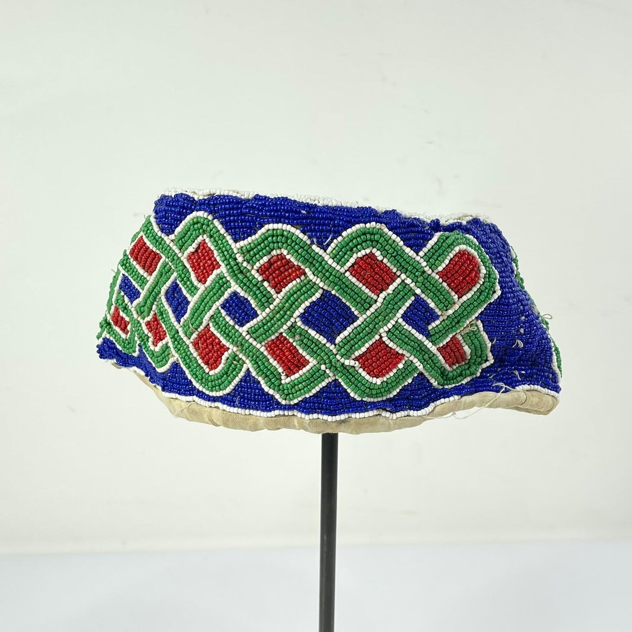 The Yoruba people of Nigeria, Benin, and Togo have a rich cultural heritage spanning centuries. Despite enduring exploitation during the Slave Trade, they maintained a robust set of beliefs and rituals, often expressed through art forms such as sculpture, mask-making, textiles, beadwork, and pottery. Yoruba art is esteemed for its beauty, craftsmanship, and cultural significance, often depicting figures from Yoruba mythology and religion. Beadwork holds particular importance in Yoruba religious practices, especially in divination ceremonies conducted by trained intermediaries known as diviners. Beadwork panels are intricately designed with symbolic meanings, serving as spiritual tools and symbols of the diviner's connection to the divine realm. While beadwork and divination are prominent aspects of Yoruba culture, variations exist among different lineages and communities.