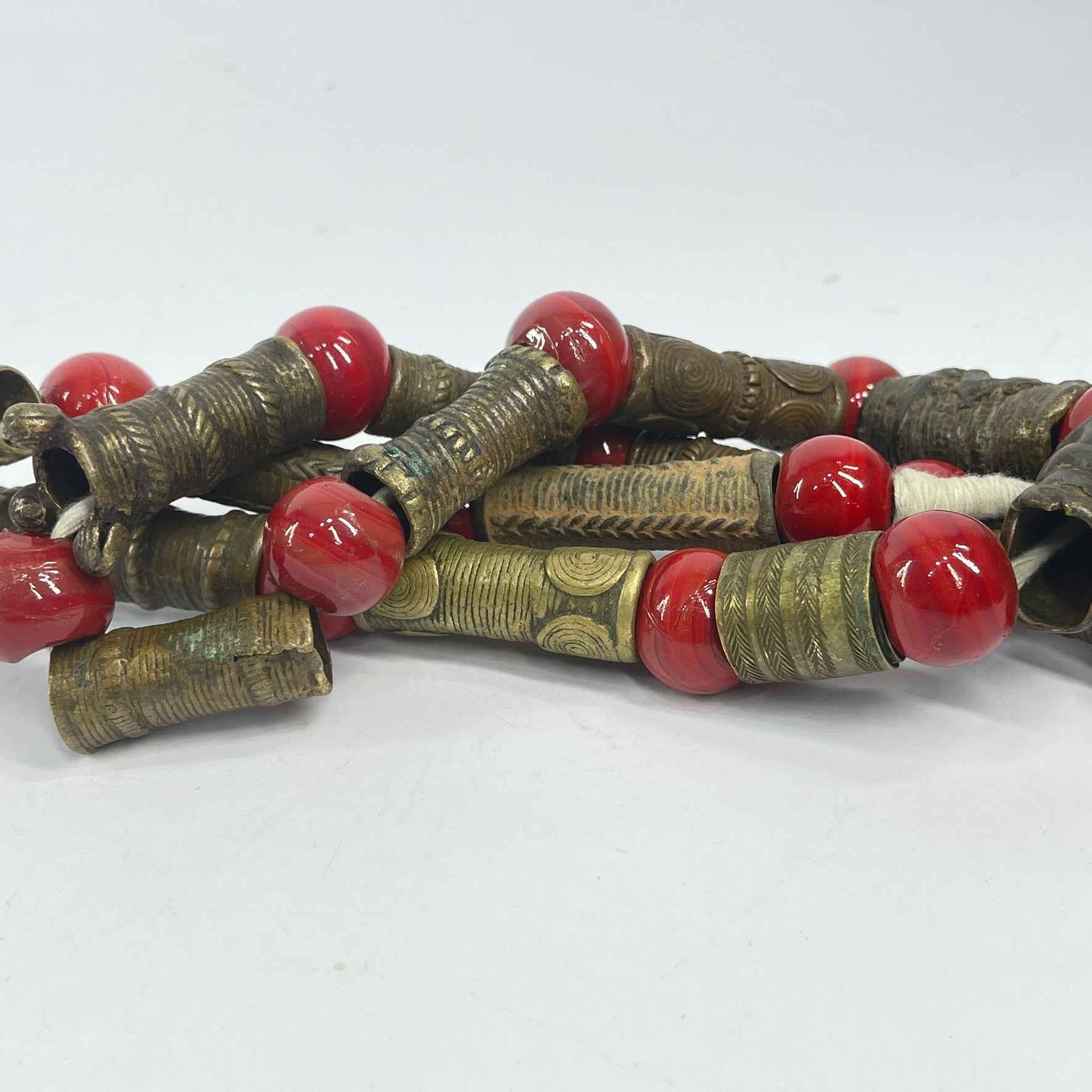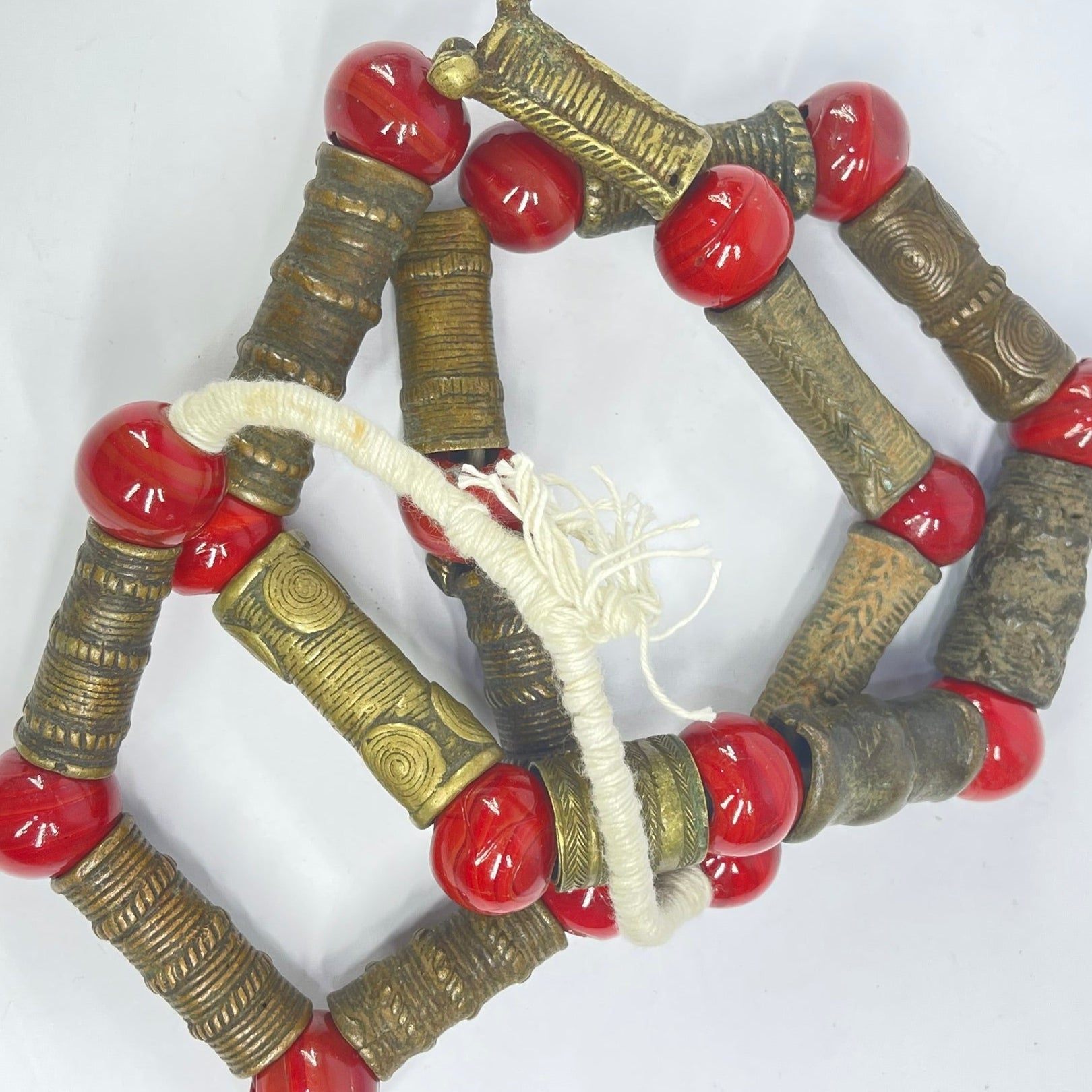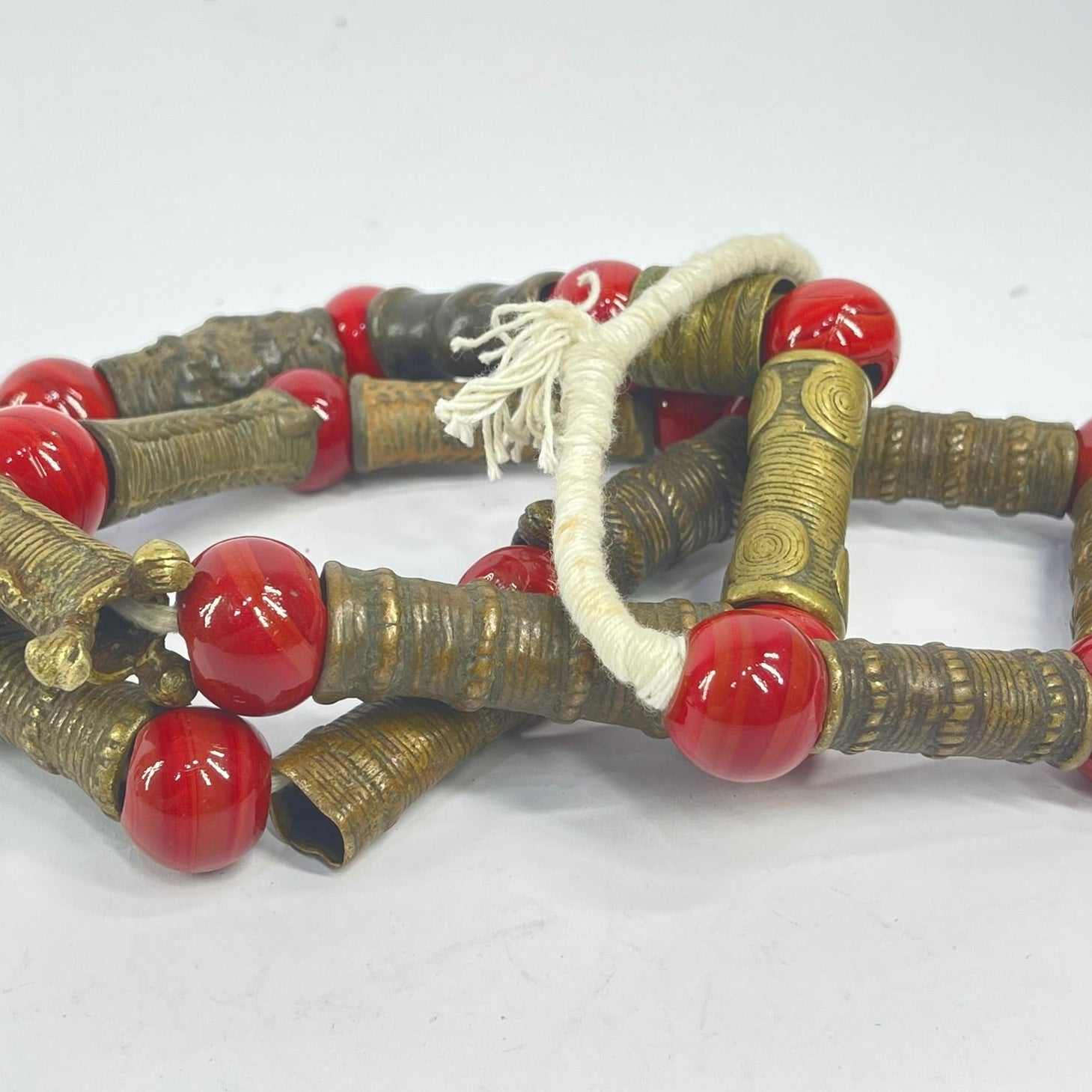 Yoruba brass beads represent a centuries-old tradition of African jewelry crafted by the Yoruba people, an ethnic group from Nigeria known for their rich artistic heritage. Made from brass or bronze, these beads showcase intricate designs reflecting Yoruba cultural motifs, including animals, plants, and geometric shapes. Worn by both men and women, Yoruba brass beads play a vital role in traditional attire, often adorning elaborate necklaces and bracelets. Beyond their aesthetic appeal, these beads hold cultural significance, utilized in rituals, and ceremonies, and as indicators of social status or spiritual protection. The tradition of metalworking in Africa spans thousands of years, encompassing various metals like gold, silver, and brass, each carrying distinct cultural meanings. Today, Yoruba brass beads continue to be produced and worn, not only as a representation of Yoruba culture but also as a global symbol of African-inspired fashion. The broader African tradition of metalworking persists, evident in the diverse and intricate beadwork crafted across the continent.