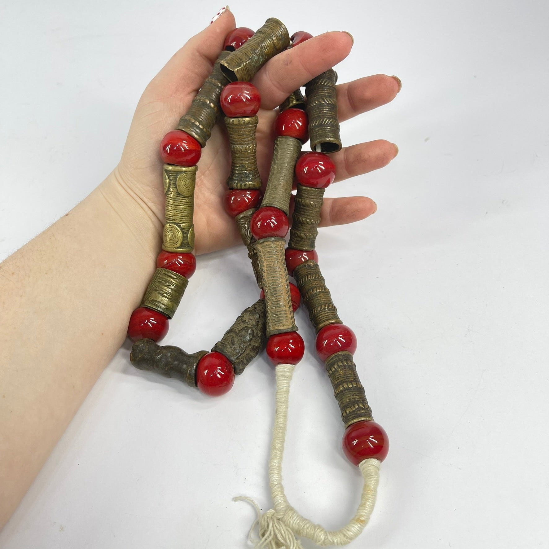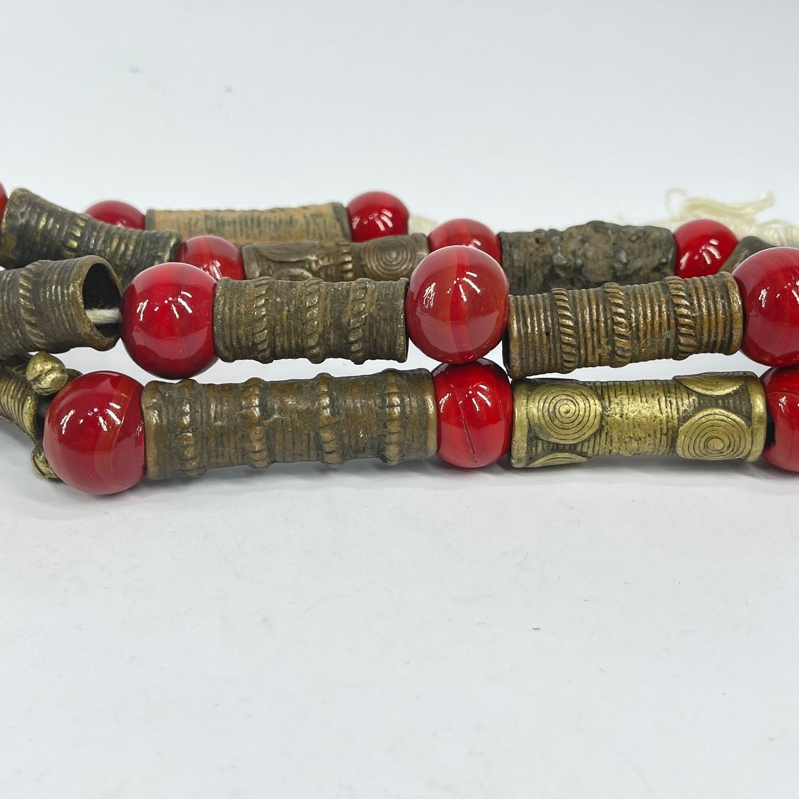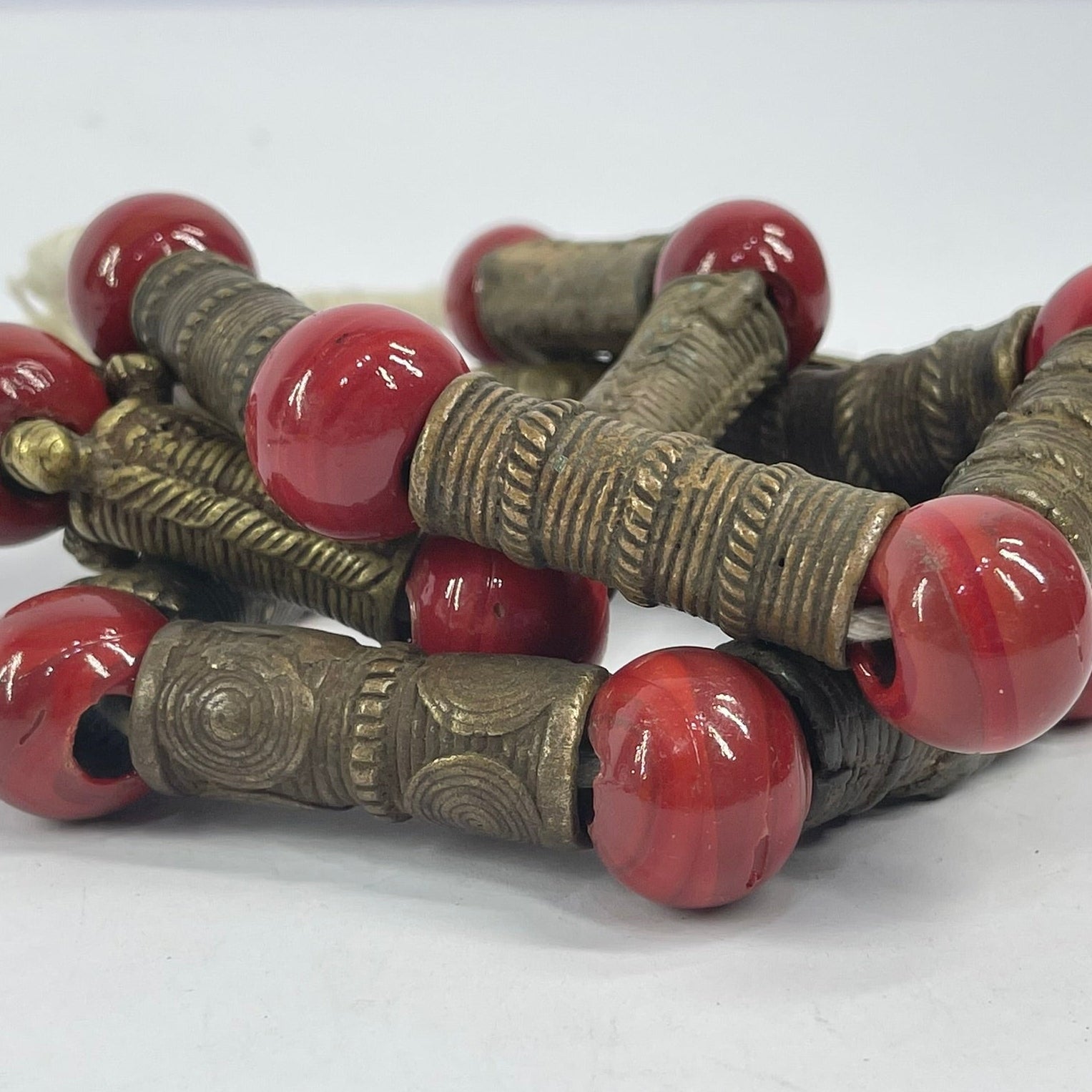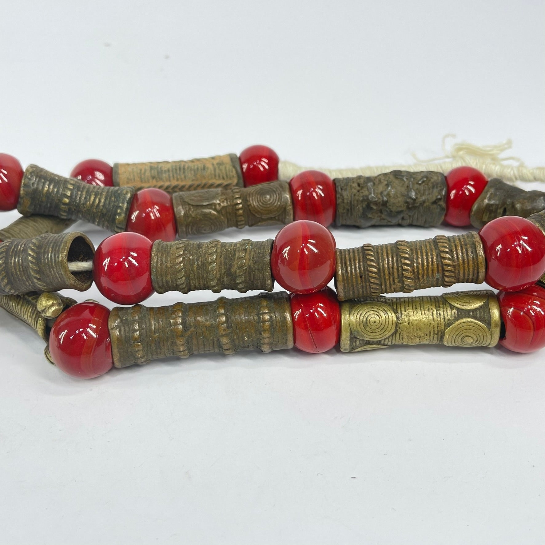 Yoruba brass beads represent a centuries-old tradition of African jewelry crafted by the Yoruba people, an ethnic group from Nigeria known for their rich artistic heritage. Made from brass or bronze, these beads showcase intricate designs reflecting Yoruba cultural motifs, including animals, plants, and geometric shapes. Worn by both men and women, Yoruba brass beads play a vital role in traditional attire, often adorning elaborate necklaces and bracelets. Beyond their aesthetic appeal, these beads hold cultural significance, utilized in rituals, and ceremonies, and as indicators of social status or spiritual protection. The tradition of metalworking in Africa spans thousands of years, encompassing various metals like gold, silver, and brass, each carrying distinct cultural meanings. Today, Yoruba brass beads continue to be produced and worn, not only as a representation of Yoruba culture but also as a global symbol of African-inspired fashion. The broader African tradition of metalworking persists, evident in the diverse and intricate beadwork crafted across the continent.