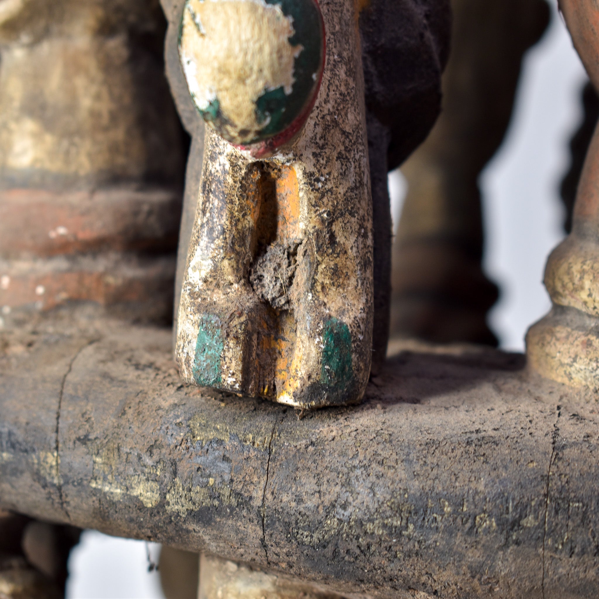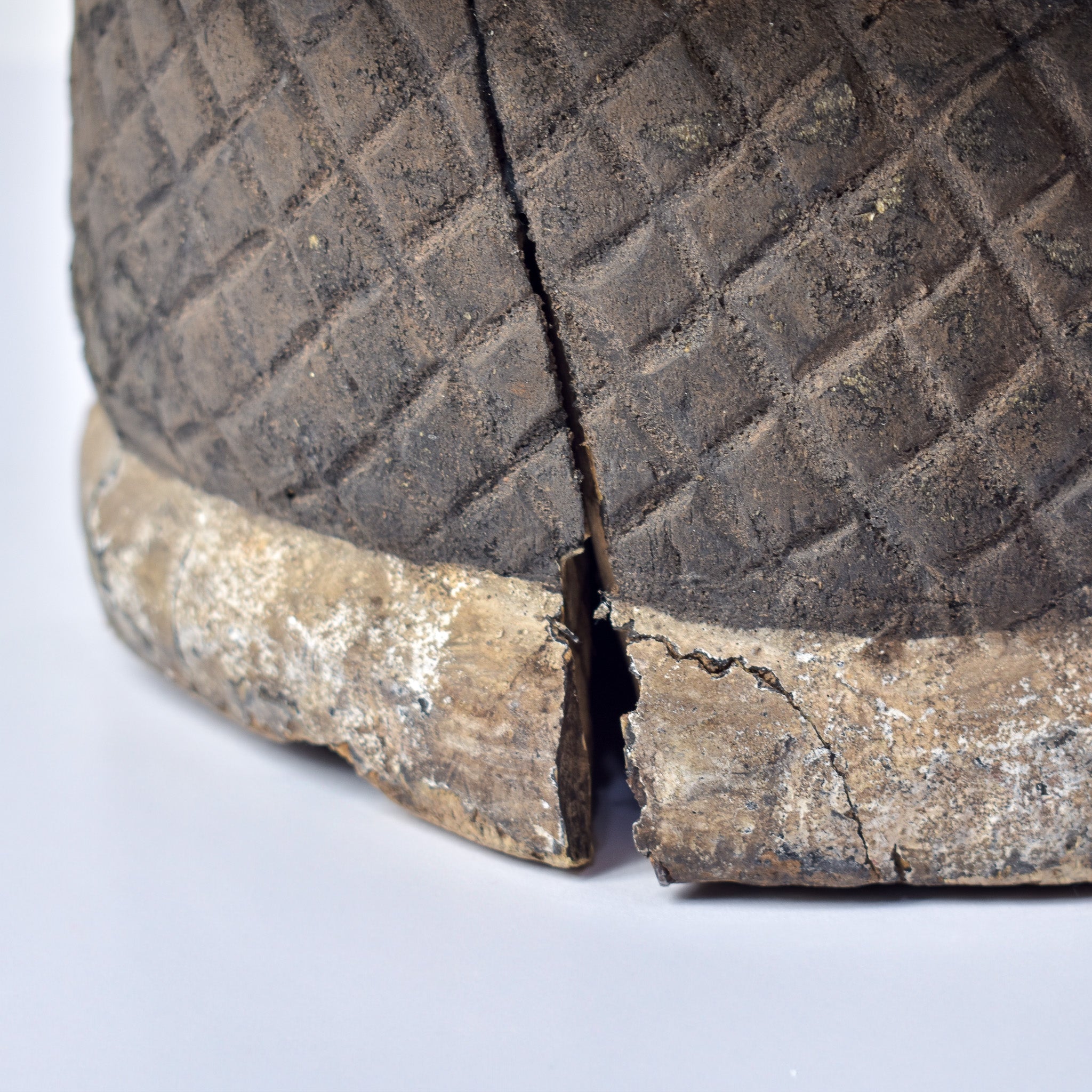 Damage/Repair: Embedded dirt. Surface scratches, cracks and pigment loss. Crack down the side of of the base. See pictures for more detail.