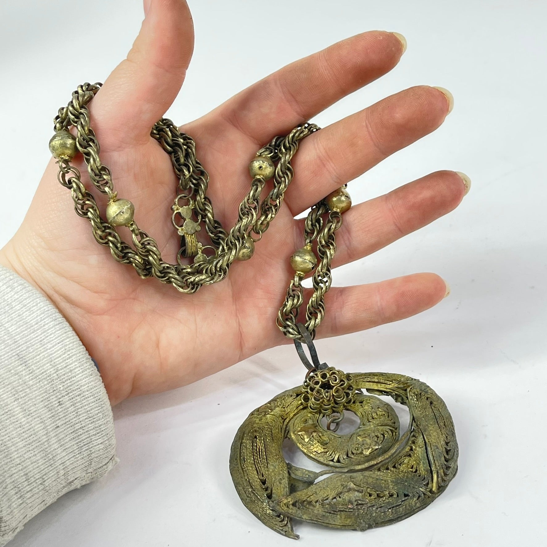 Yoruba Gilded Brass Necklace Nigeria 30 Inch