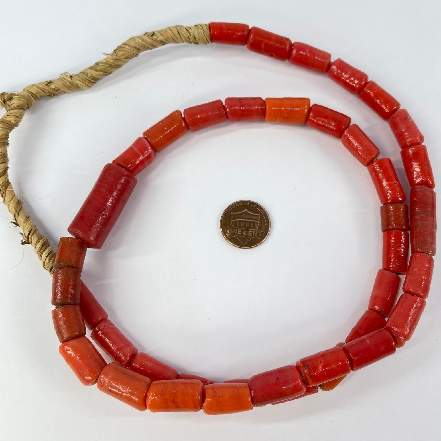 Yoruba Mock Coral Beads Nigeria 30 Inch