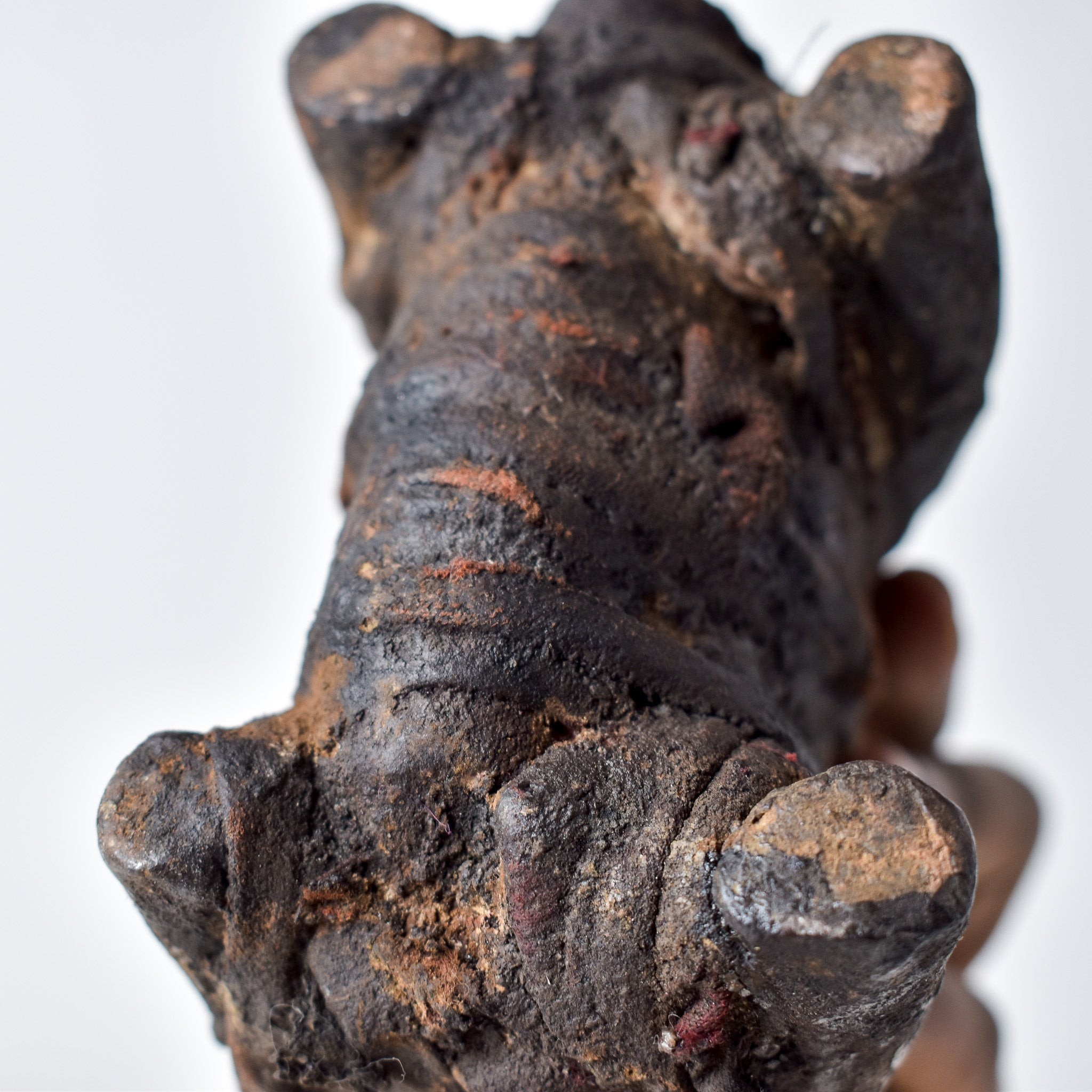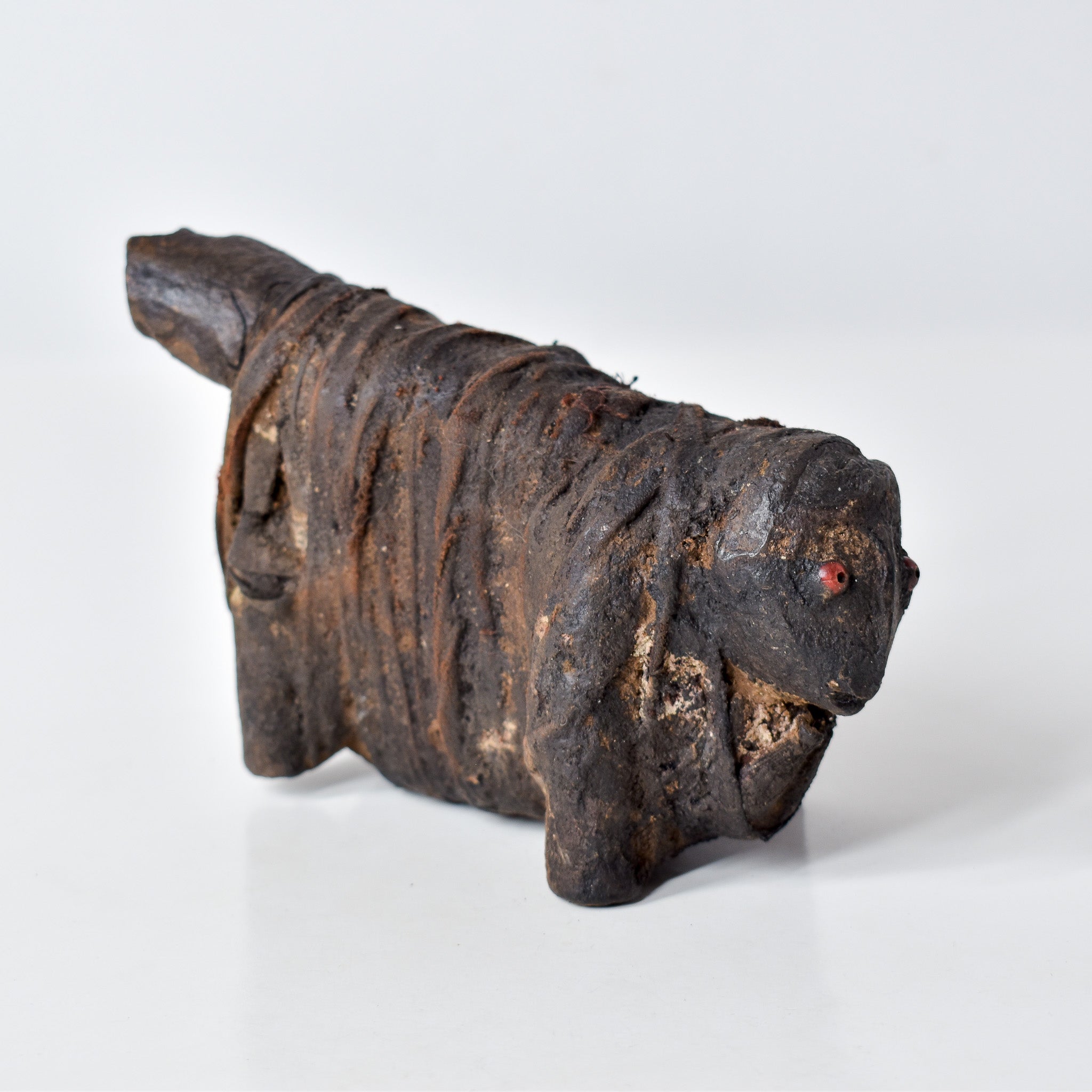 This hand-carved wooden figure represents a stylized boar. Among the Zigua people of northeastern Tanzania, such figures serve as vessels for spiritual forces and are often used in healing, protection, or divination rituals. They may embody ancestral spirits or other supernatural entities believed to influence daily life. Ritual specialists or family elders typically activate and maintain these figures through offerings and invocation.